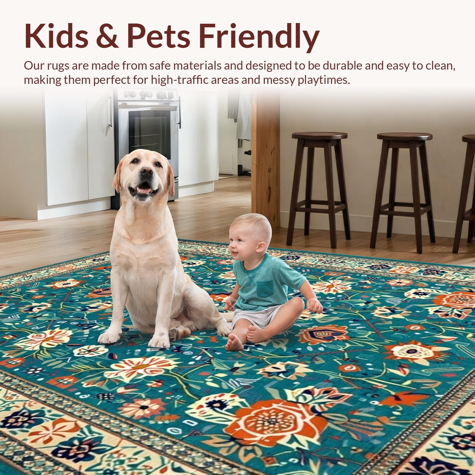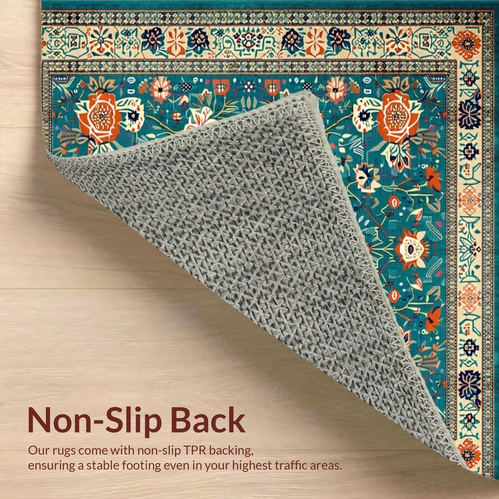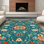Ultra Soft Area Rug, Non Slip, Stain Resistant, Washable Area Rugs for Living Room, Bedroom, Colorful Rustic Flower Arrangement(Green) Overview: