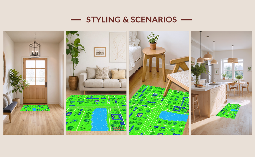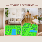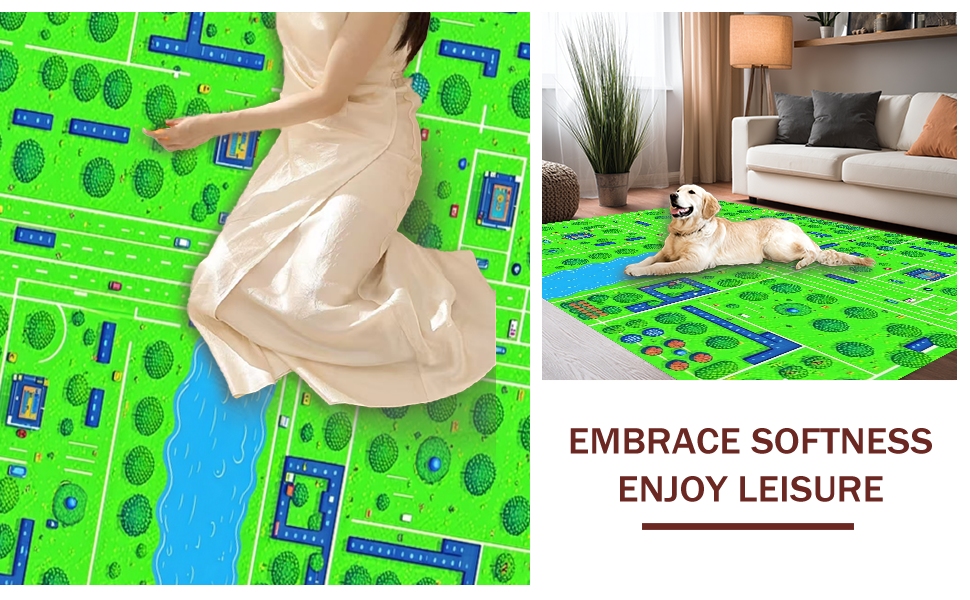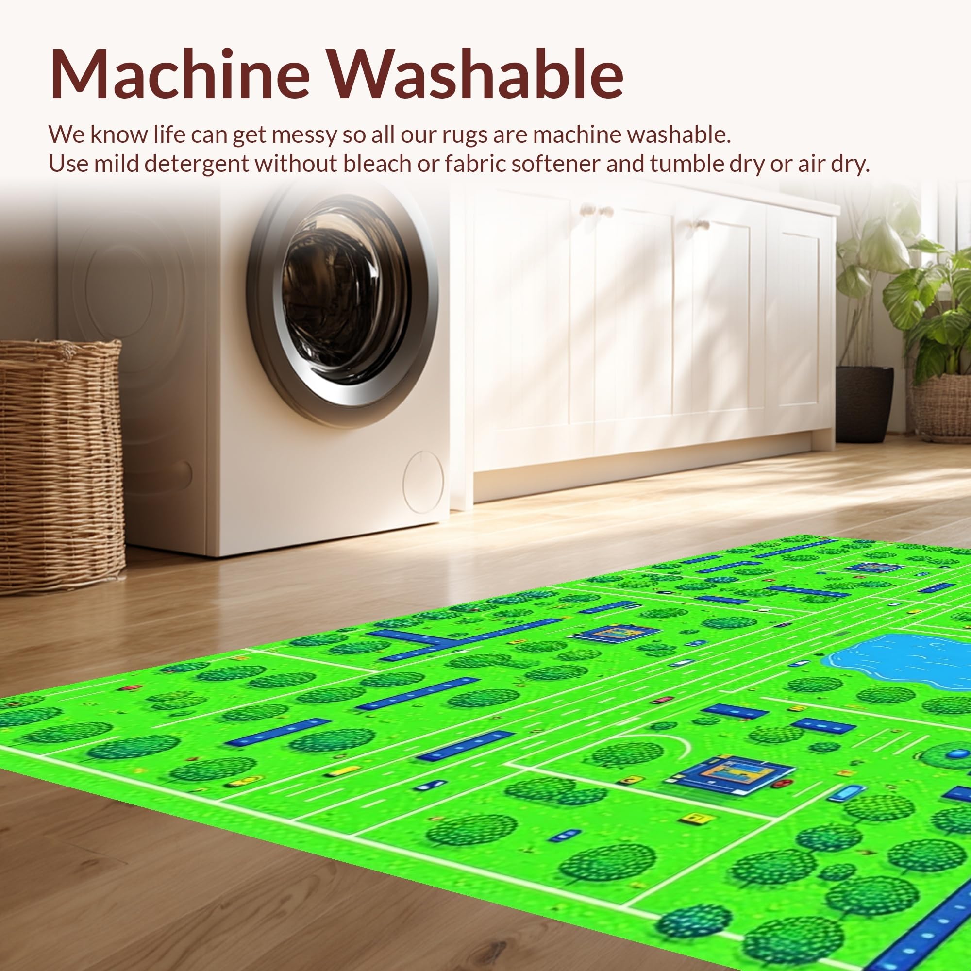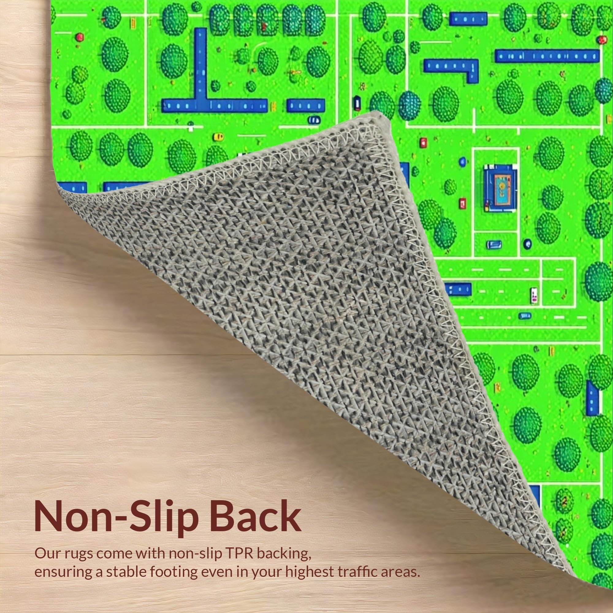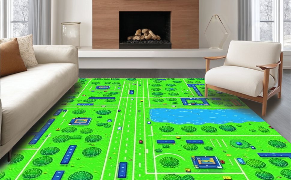 Ultra Soft Area Rug, Non Slip, Stain Resistant, Washable Area Rugs for Living Room, Bedroom, Colorful Town Layout Activity Carpet(Green) Overview: