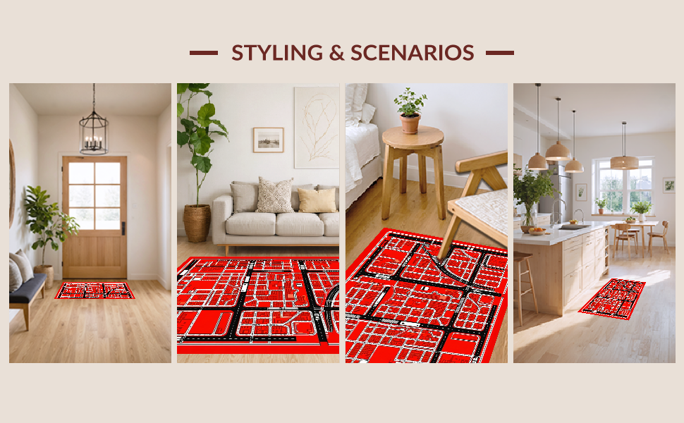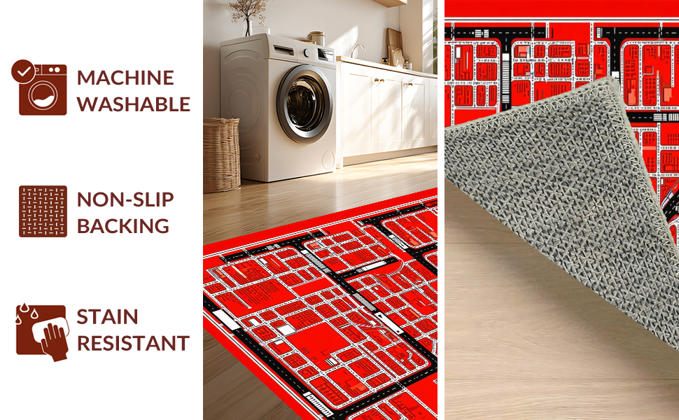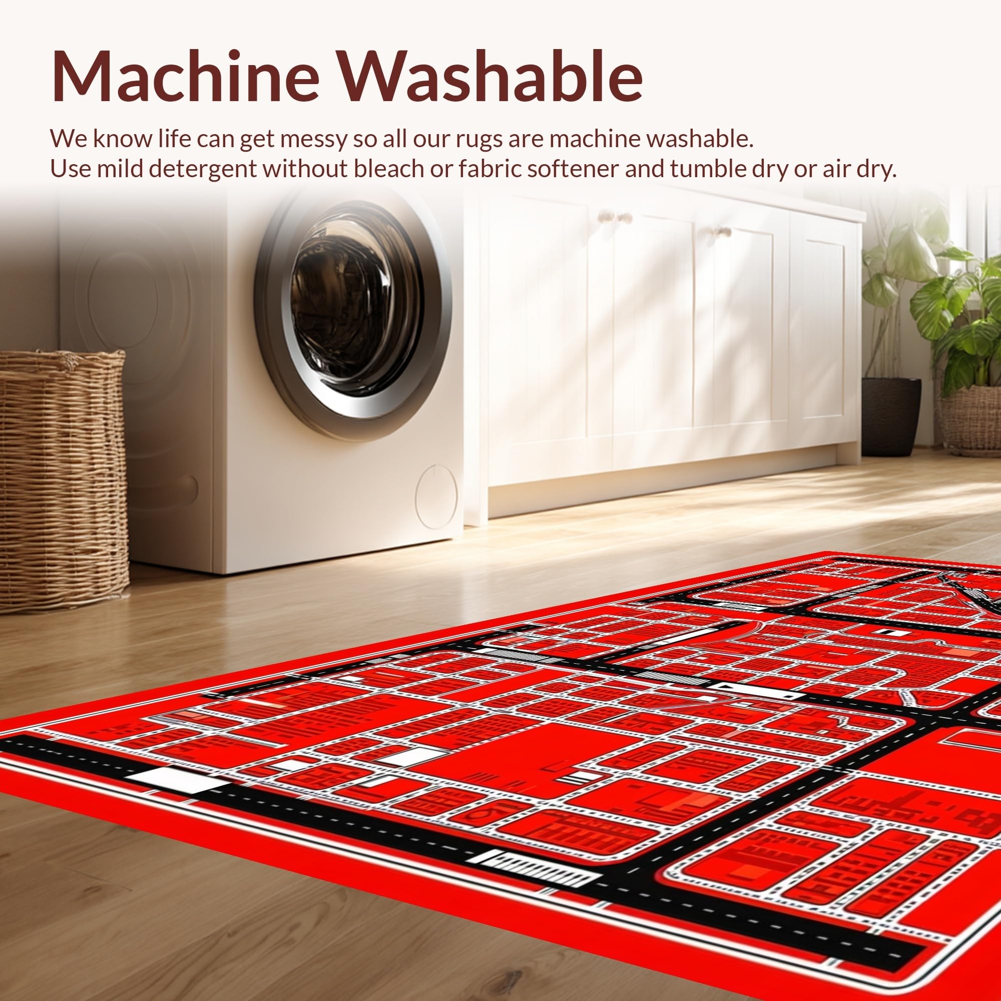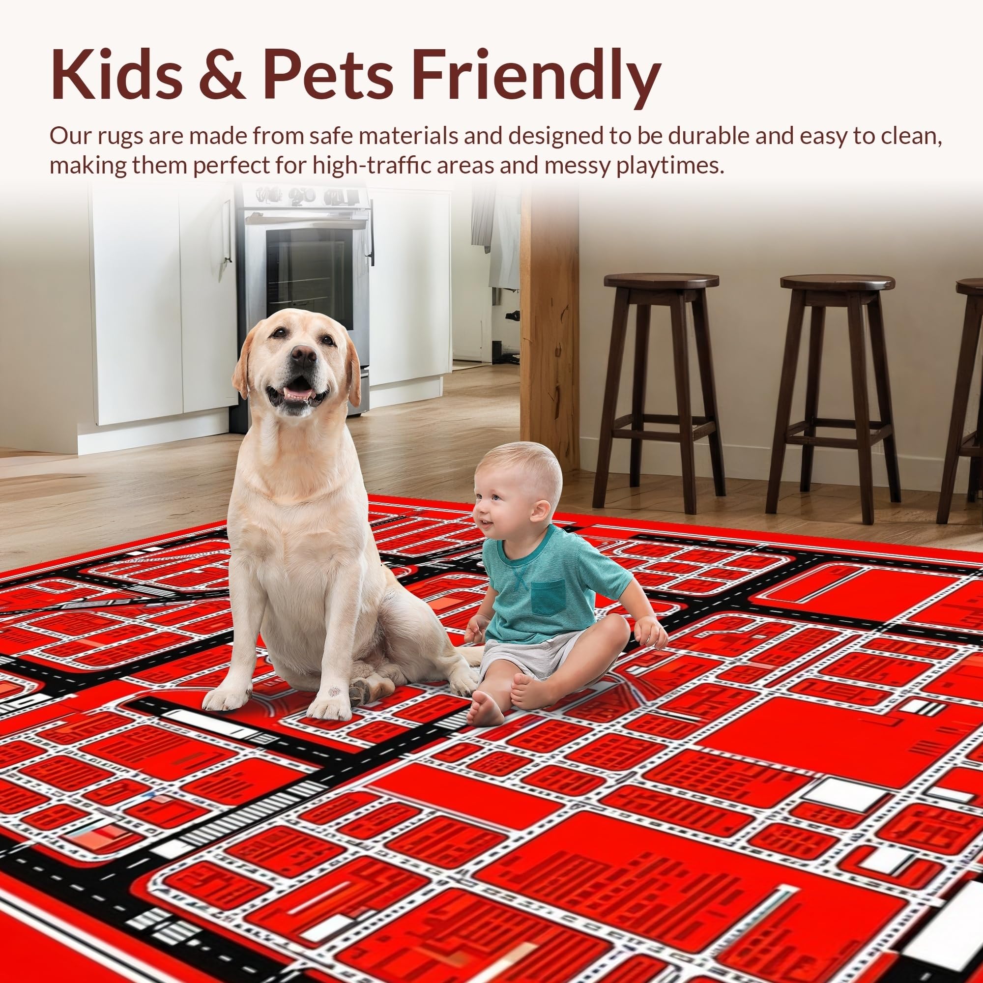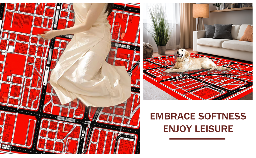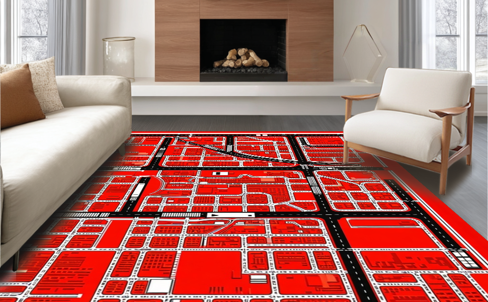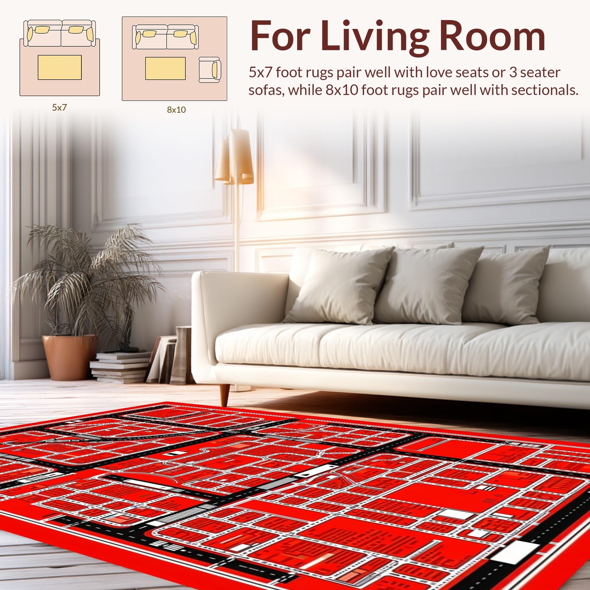 Ultra Soft Area Rug, Non Slip, Stain Resistant, Washable Area Rugs for Living Room, Bedroom, Colorful Urban Exploration Mat(Red) Overview: