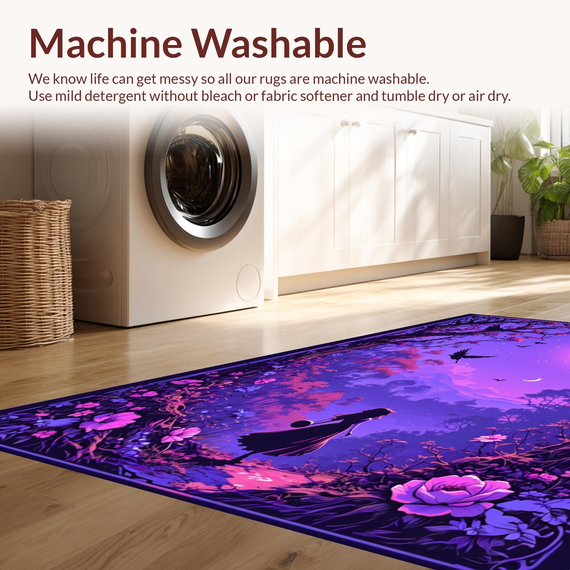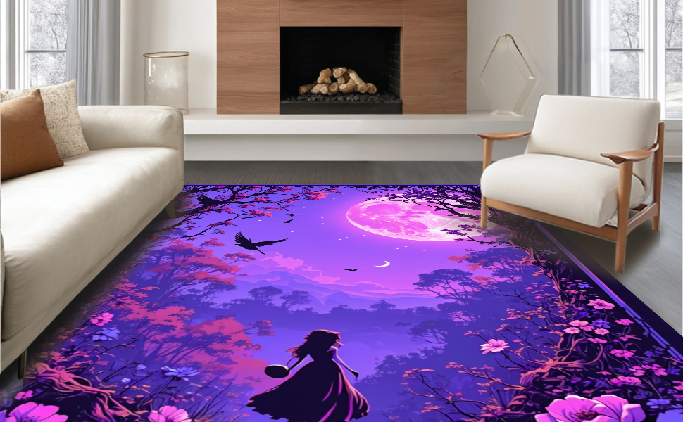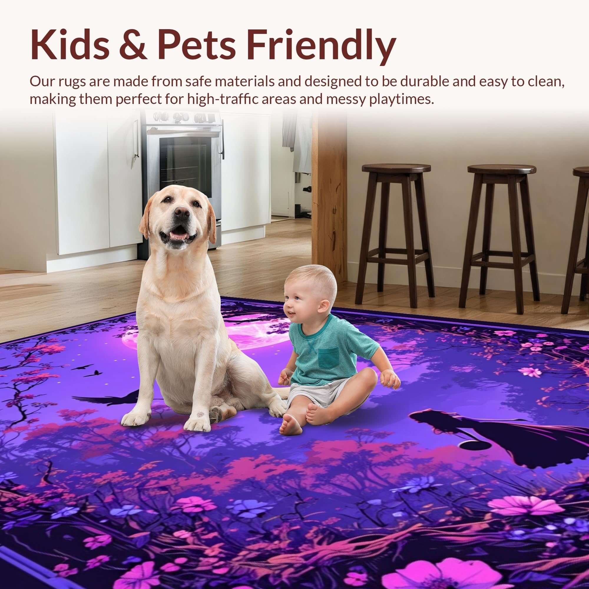 Ultra Soft Area Rug, Non Slip, Stain Resistant, Washable Area Rugs for Living Room, Bedroom, Colorful Whimsy in Fantasy Imagery(Purple) Overview: