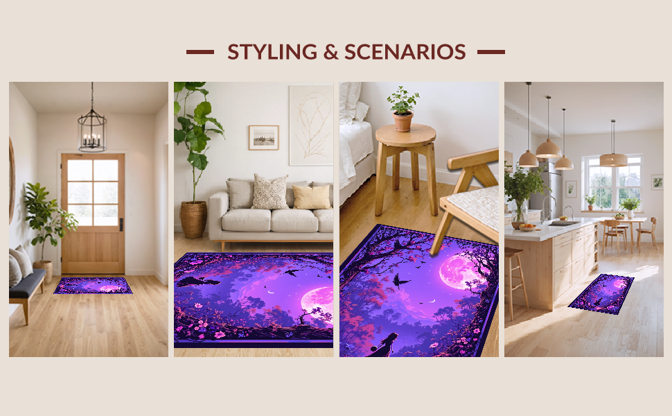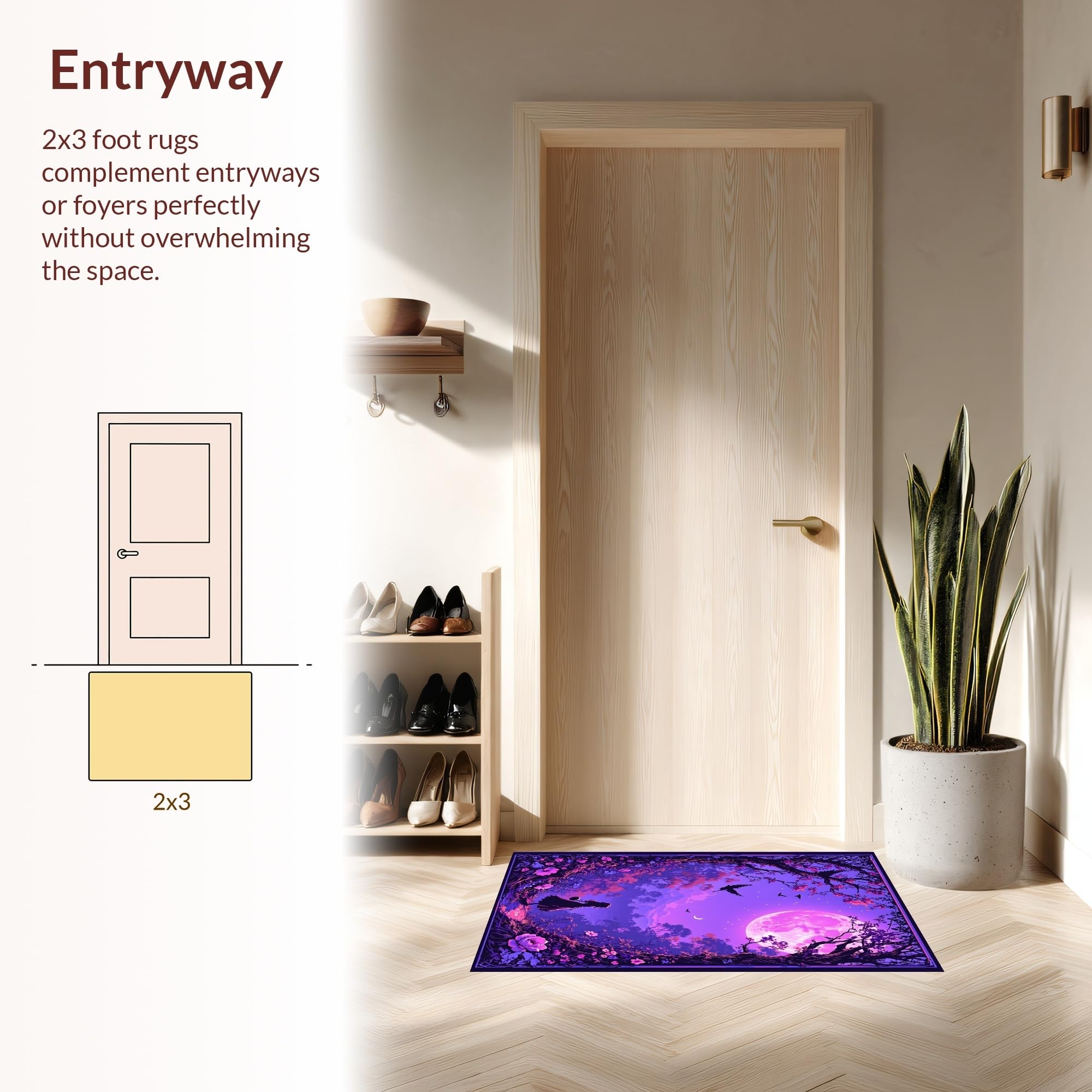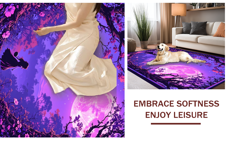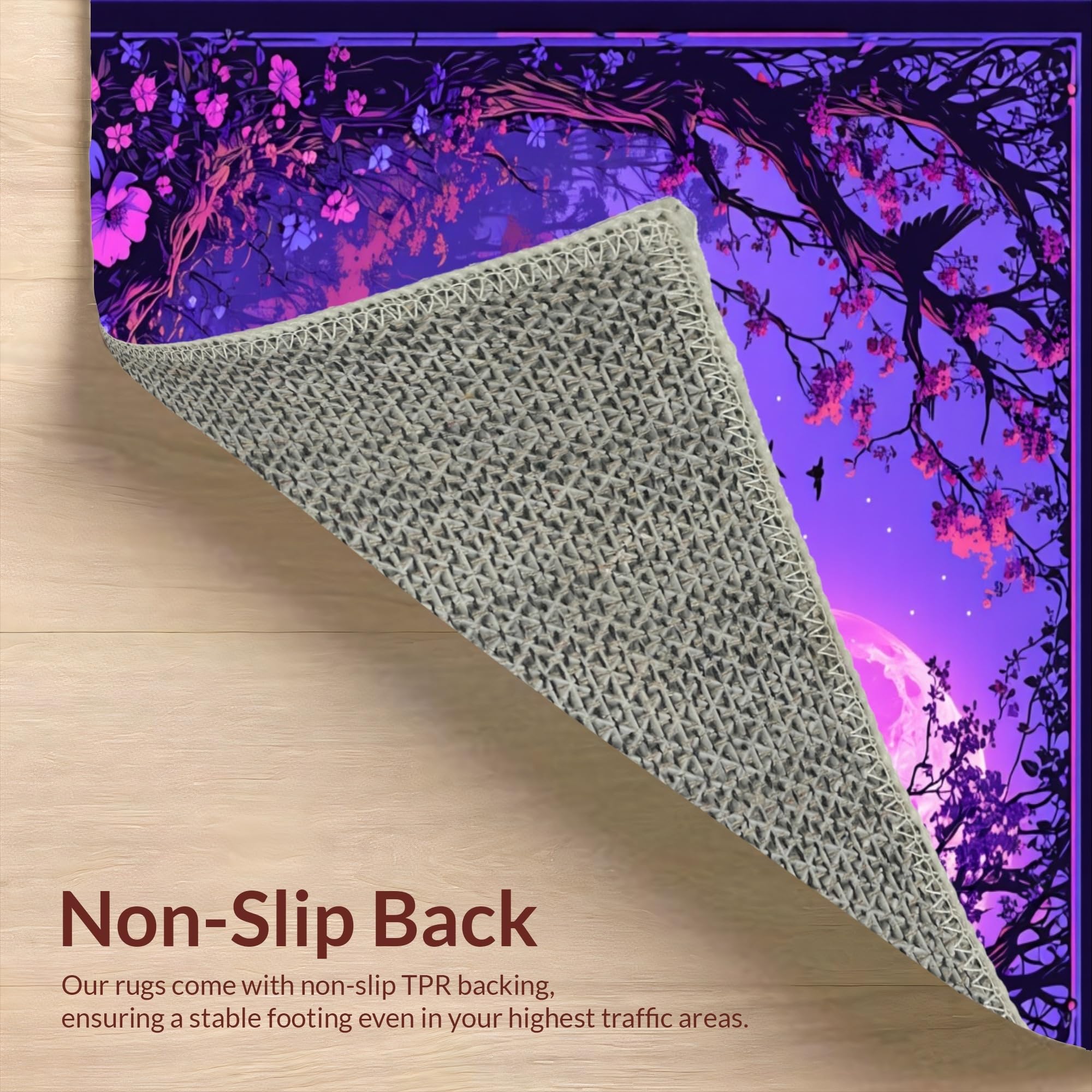 Ultra Soft Area Rug, Non Slip, Stain Resistant, Washable Area Rugs for Living Room, Bedroom, Colorful Whimsy in Fantasy Imagery(Purple) Overview:
