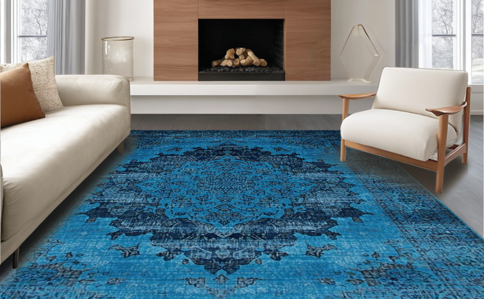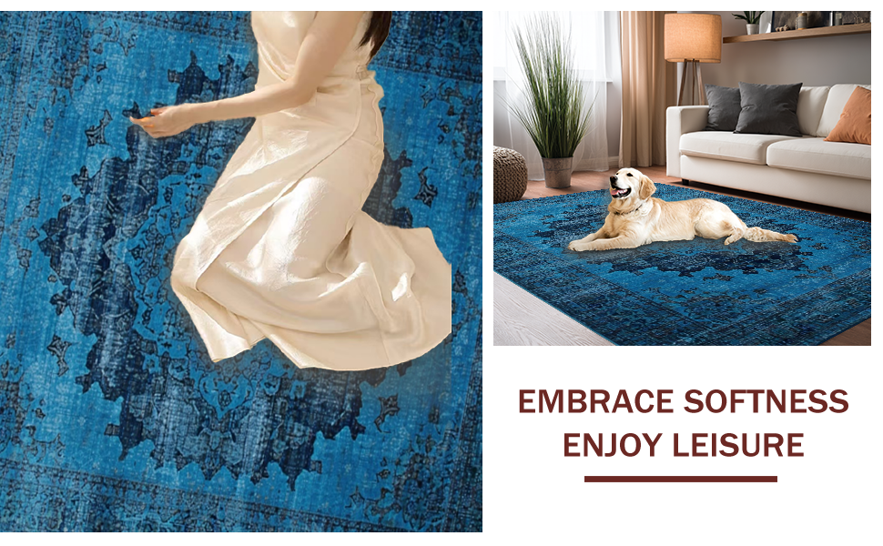 Ultra Soft Area Rug, Non Slip, Stain Resistant, Washable Area Rugs for Living Room, Bedroom, Contemporary Abstract Artistry Display(Blue) Overview: