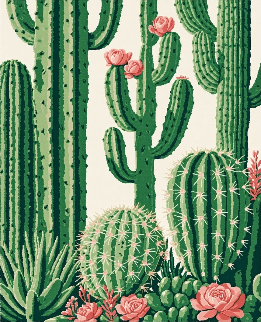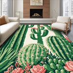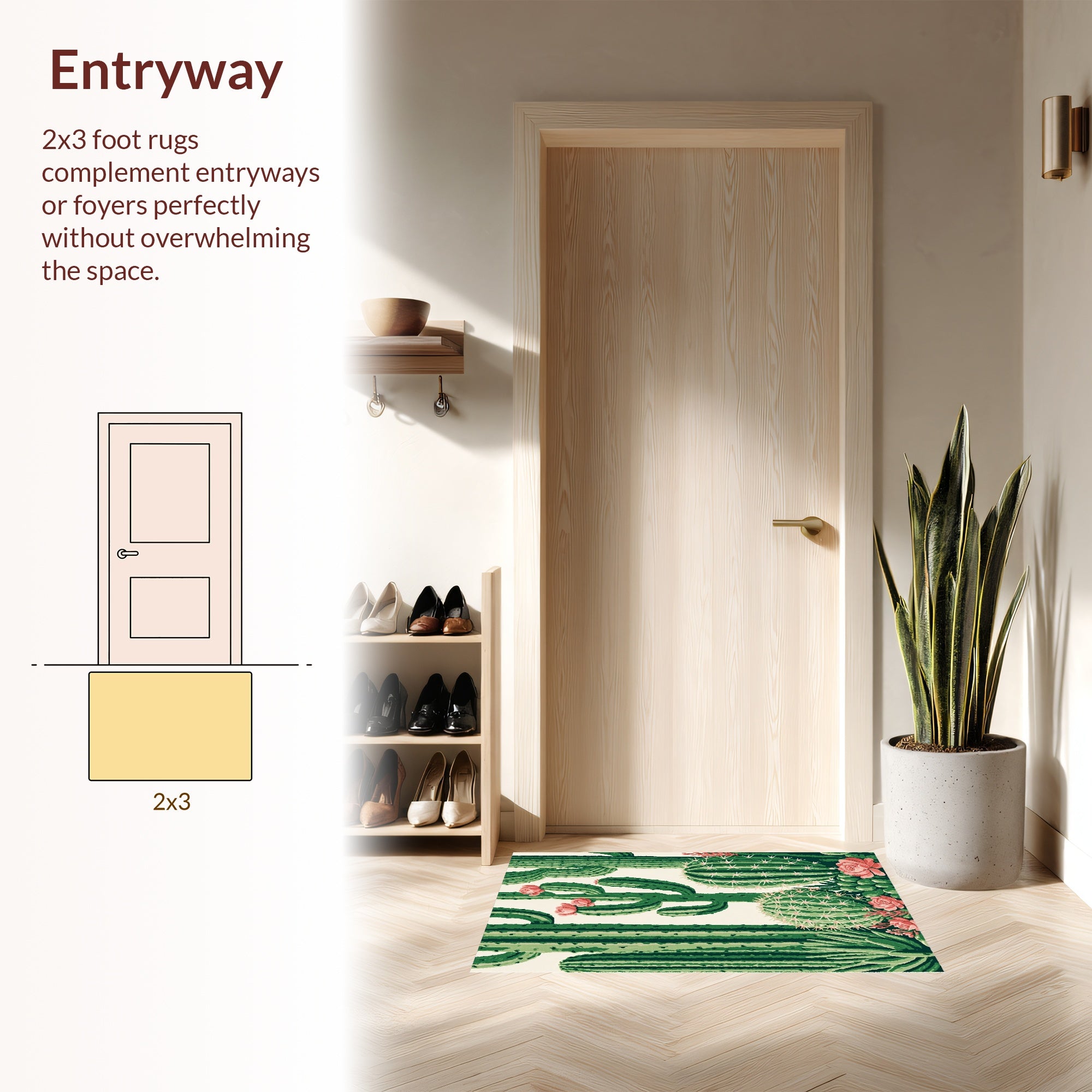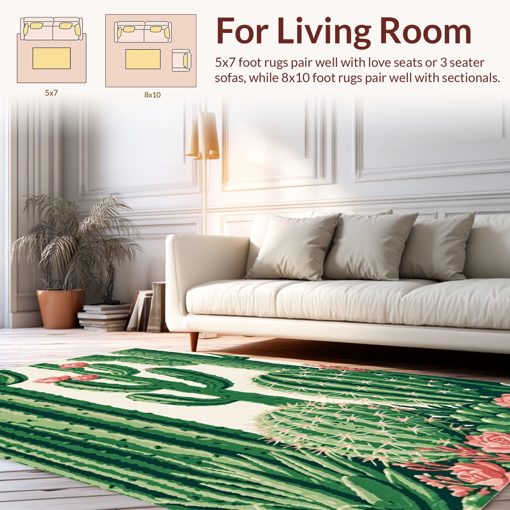 Flatwoven High Traffic Area Rug, Contemporary Abstract Cactus Imagery, Non Slip, Stain Resistant, Washable Area Rugs for Living Room, Bedroom (Green) Overview: