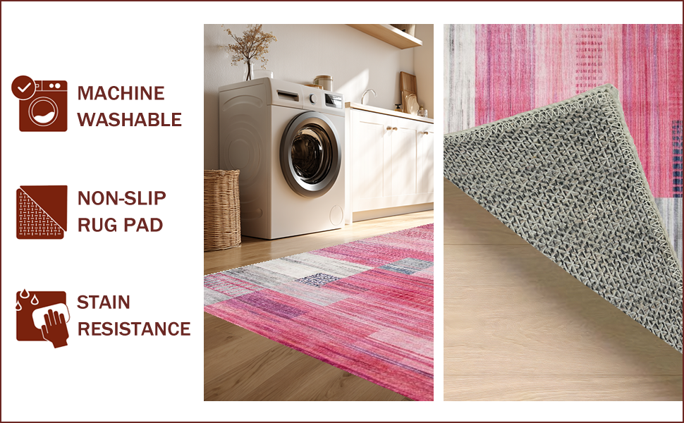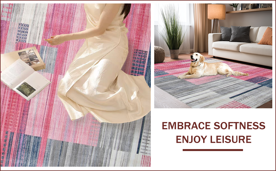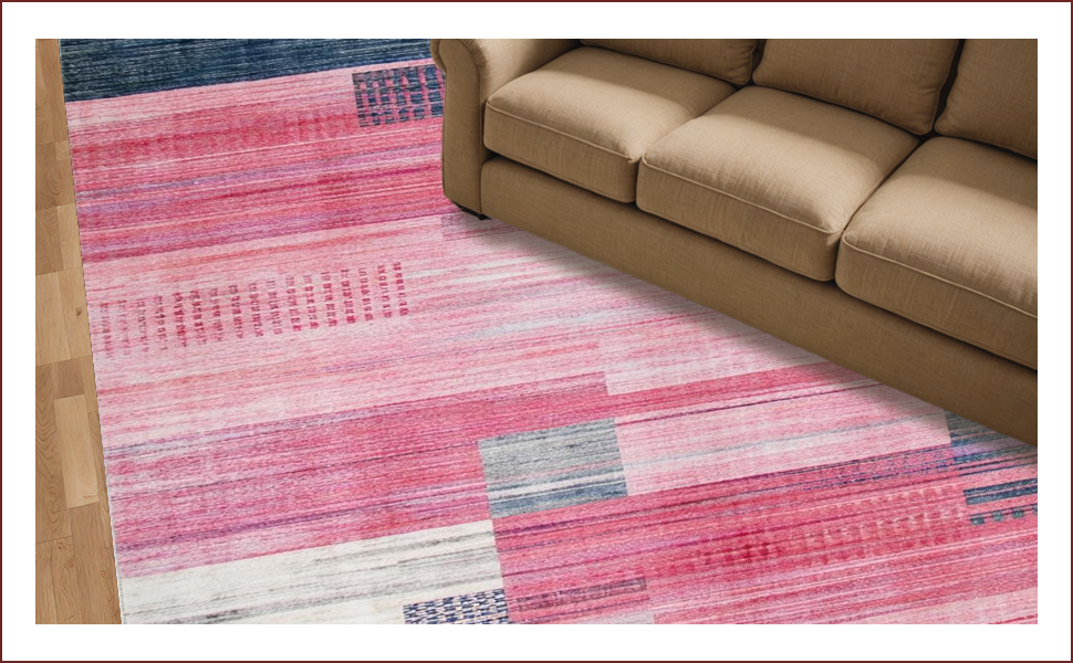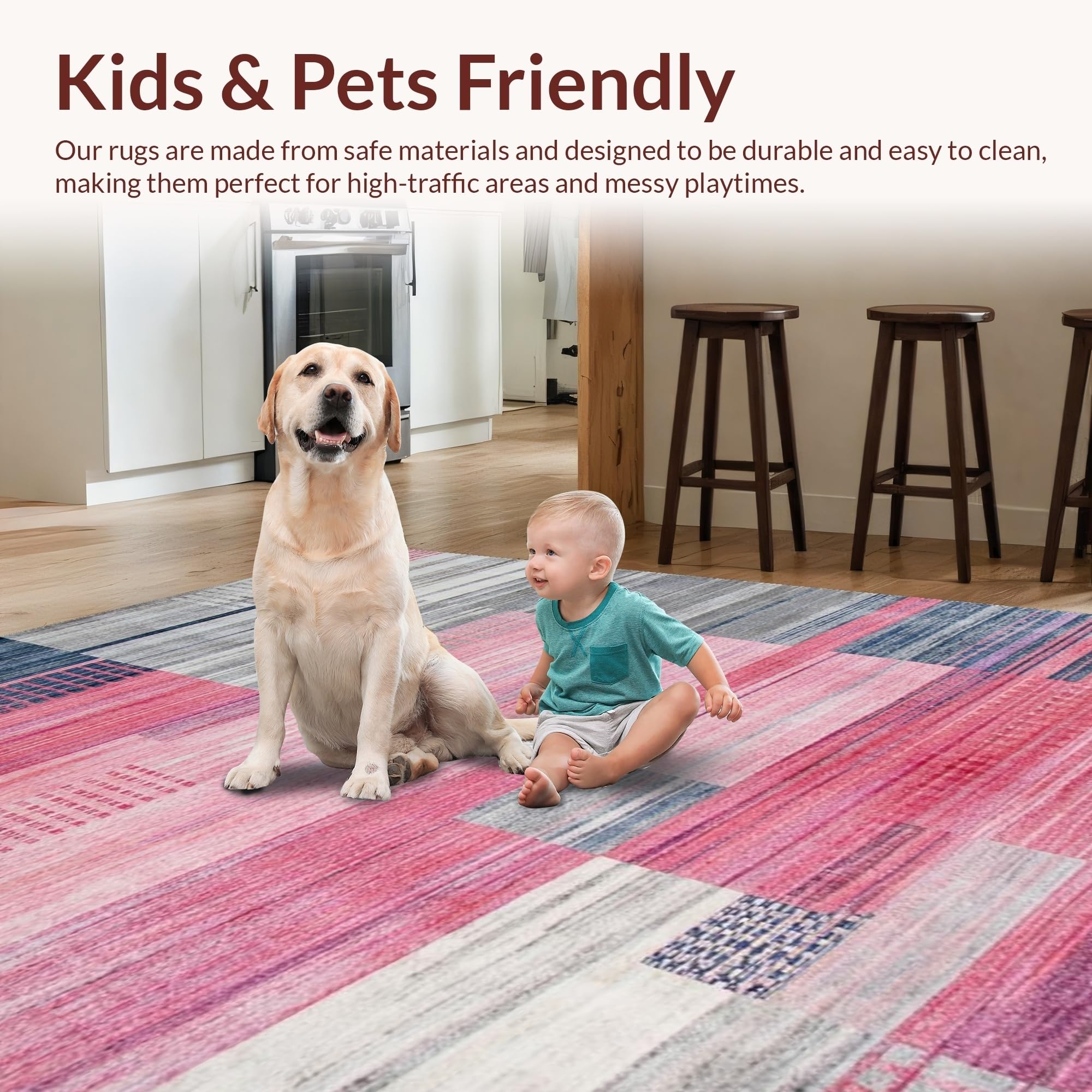Ultra Soft Area Rug, Non Slip, Stain Resistant, Washable Area Rugs for Living Room, Bedroom, Contemporary Abstract Colorful Aesthetic(Pink) Overview: