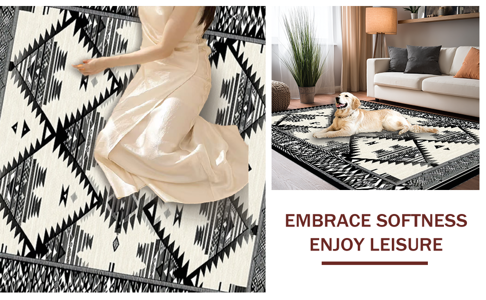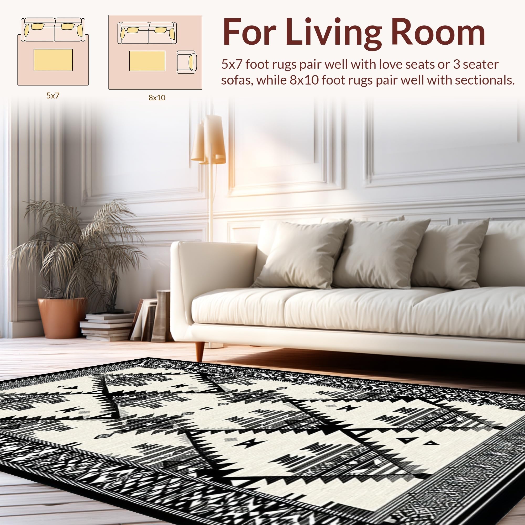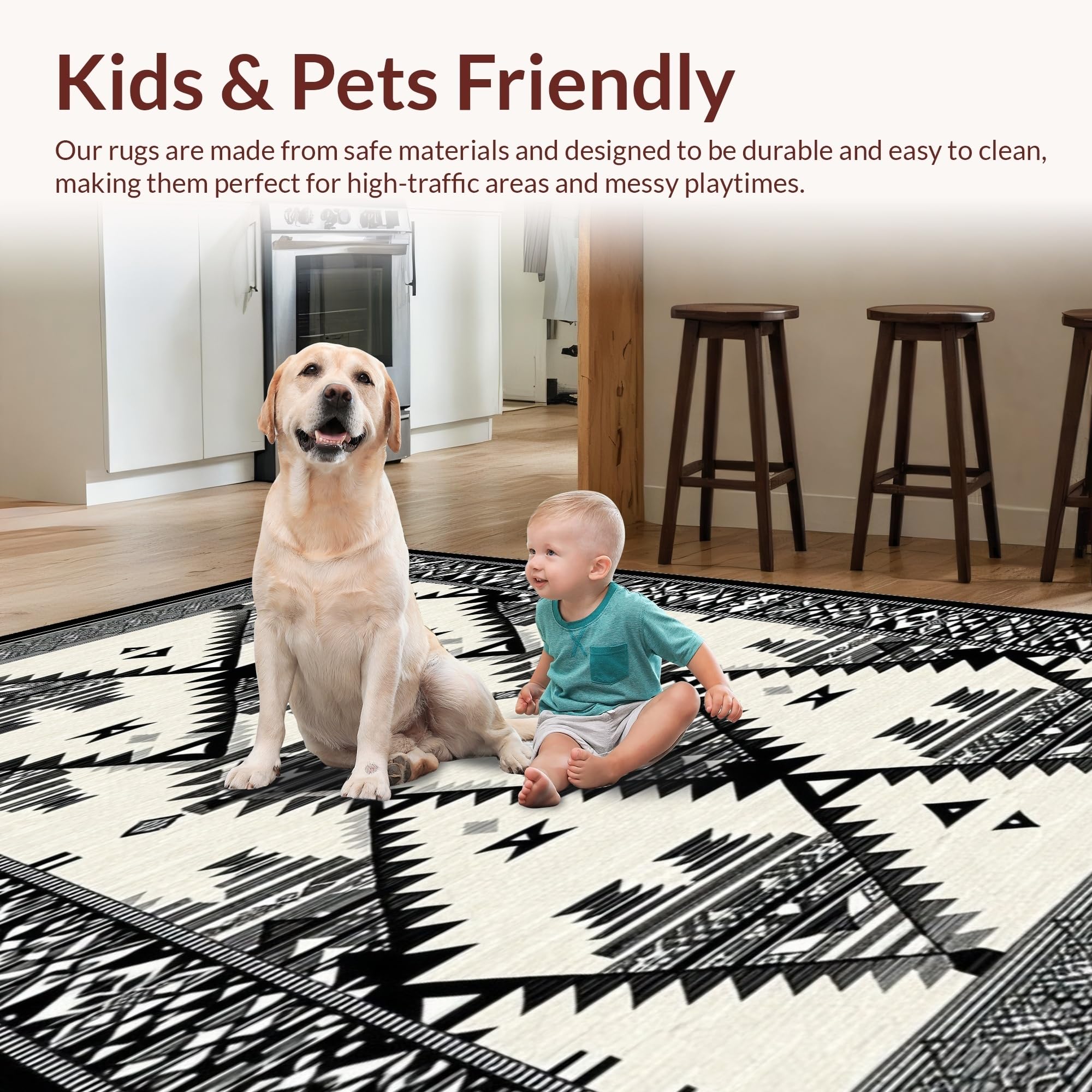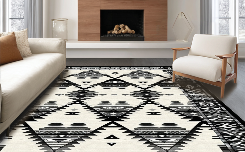 Ultra Soft Area Rug, Non Slip, Stain Resistant, Washable Area Rugs for Living Room, Bedroom, Contemporary Abstract Geometric Appeal(Black) Overview: