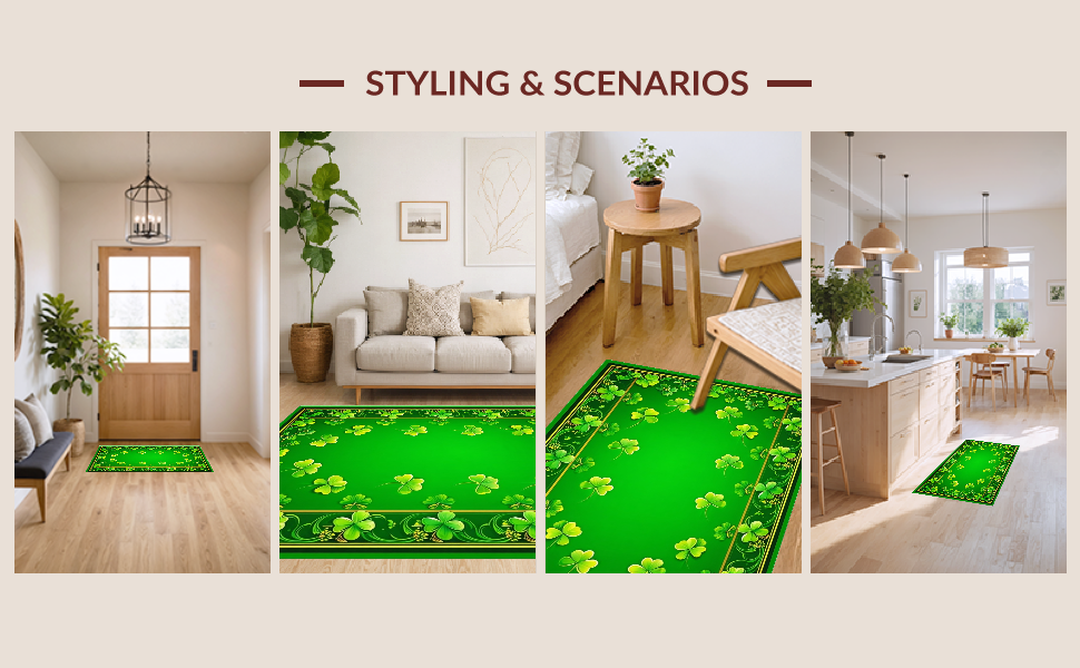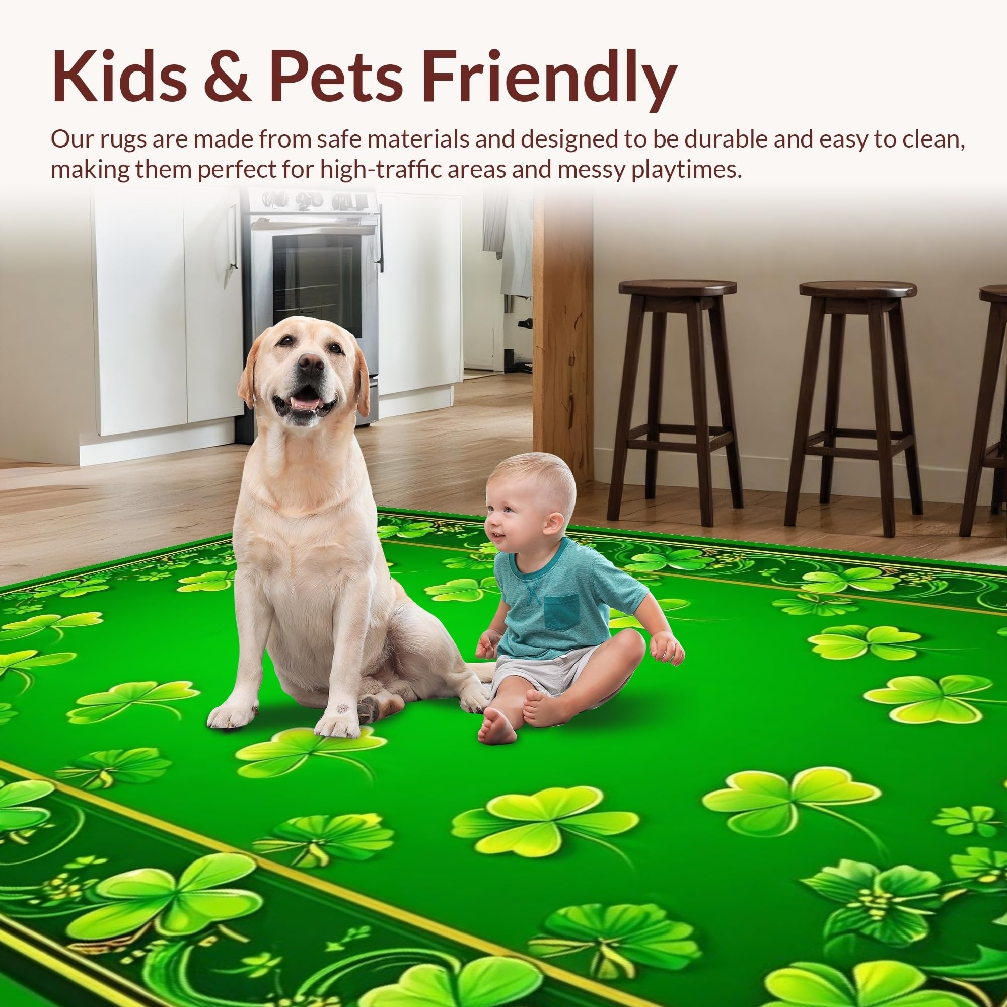 Ultra Soft Area Rug, Non Slip, Stain Resistant, Washable Area Rugs for Living Room, Bedroom, Contemporary Abstract Green Shapes(Green) Overview: