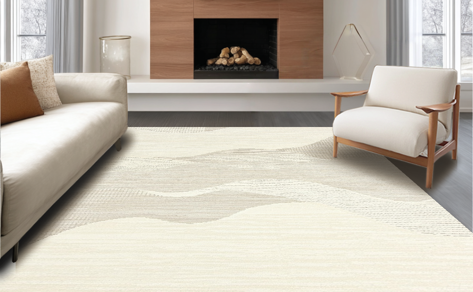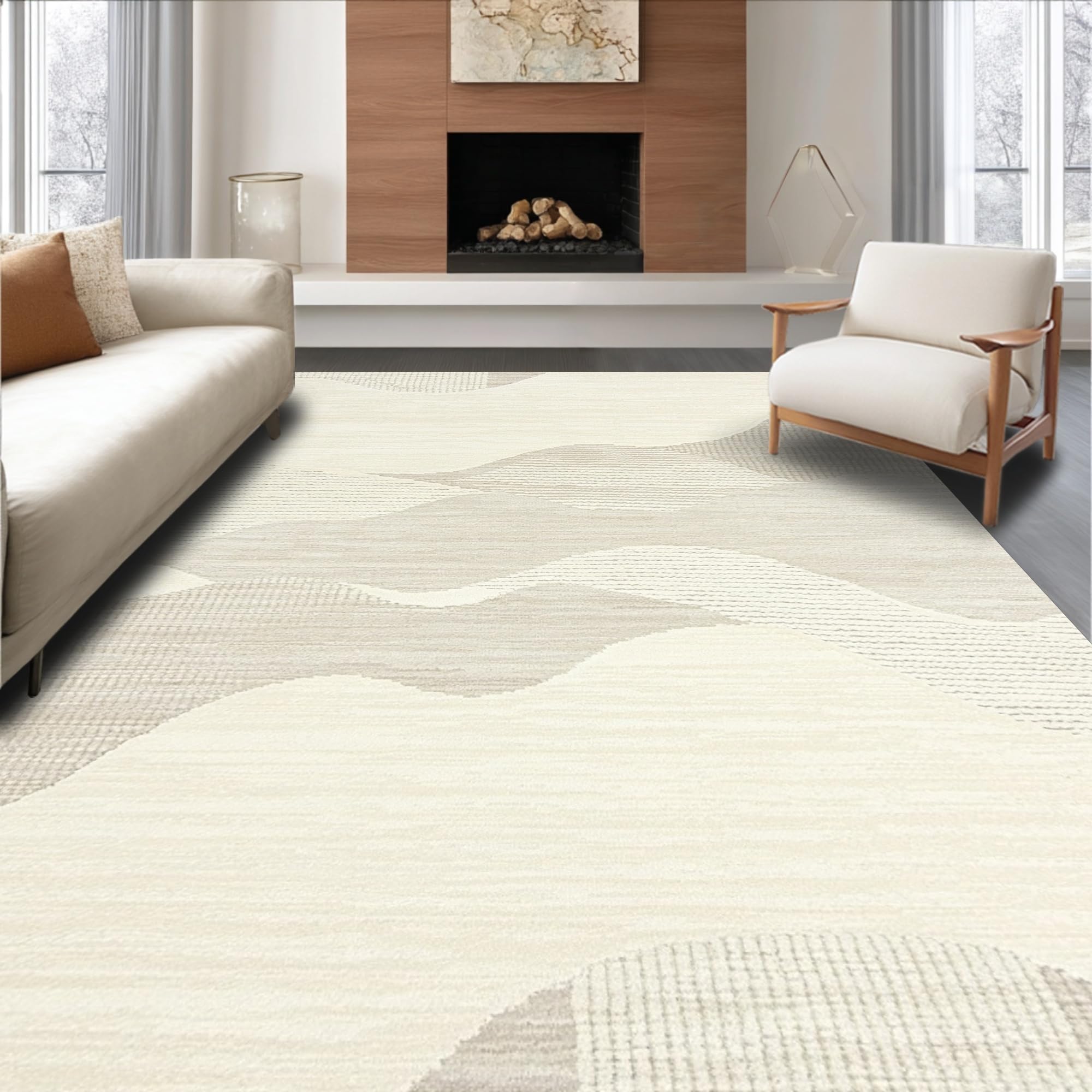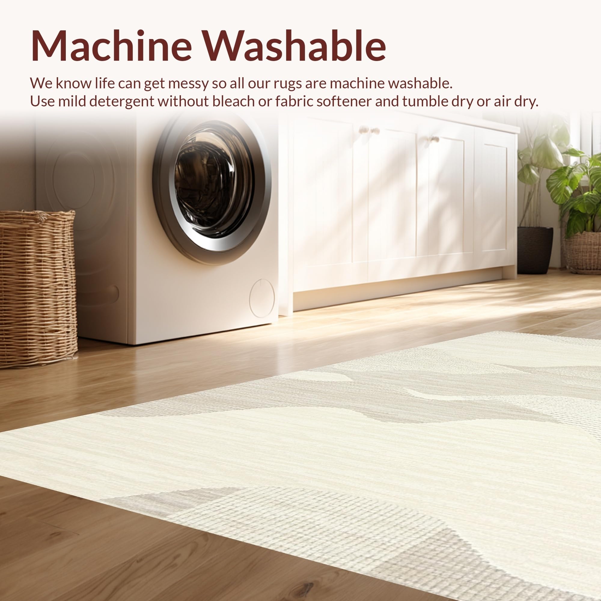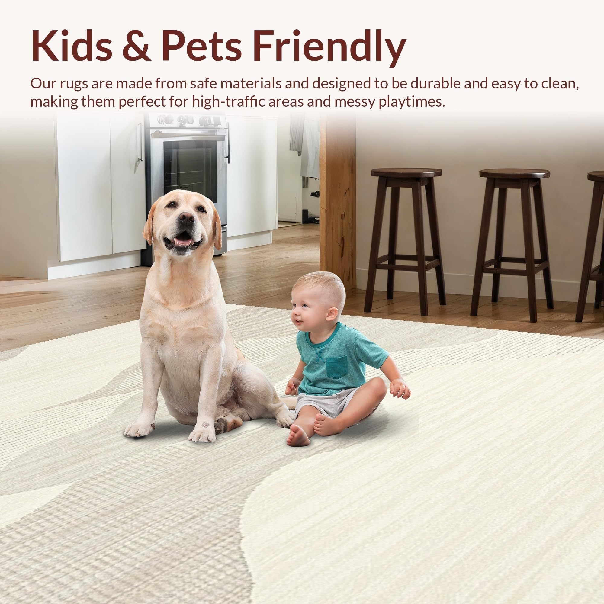 Ultra Soft Area Rug, Non Slip, Stain Resistant, Washable Area Rugs for Living Room, Bedroom, Contemporary Abstract Neutral Tones(Beige) Overview: