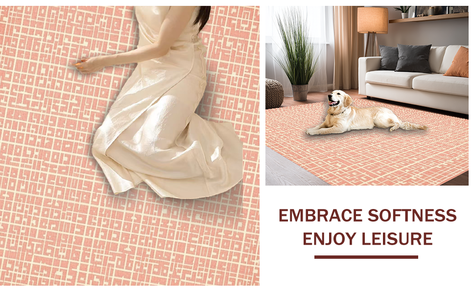 Ultra Soft Area Rug, Non Slip, Stain Resistant, Washable Area Rugs for Living Room, Bedroom, Contemporary Abstract Peach Aesthetic(Red) Overview: