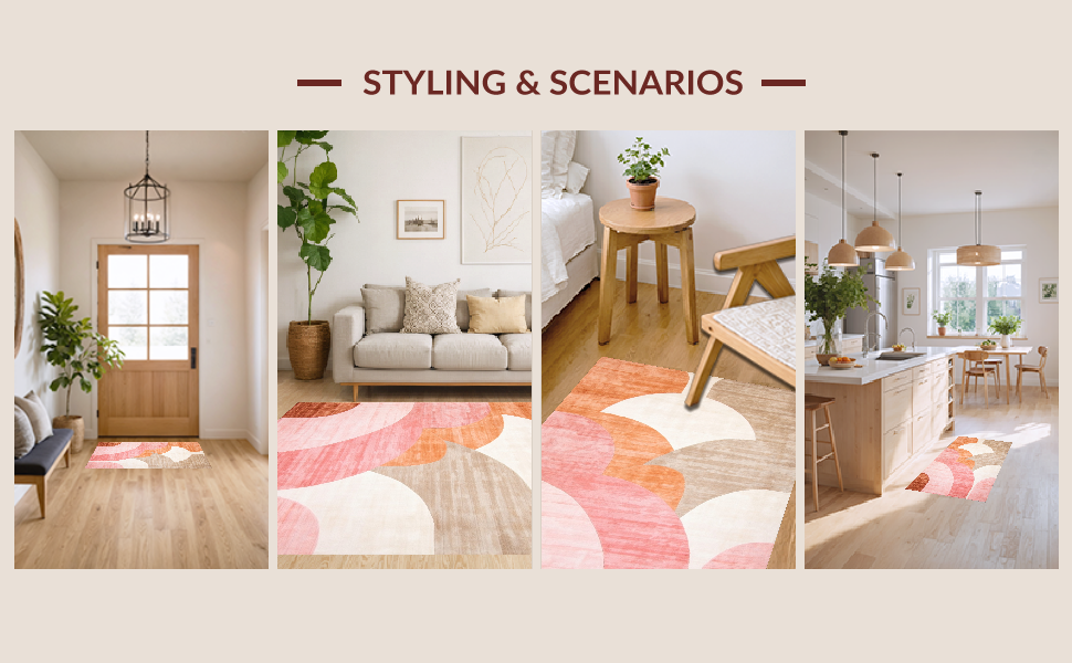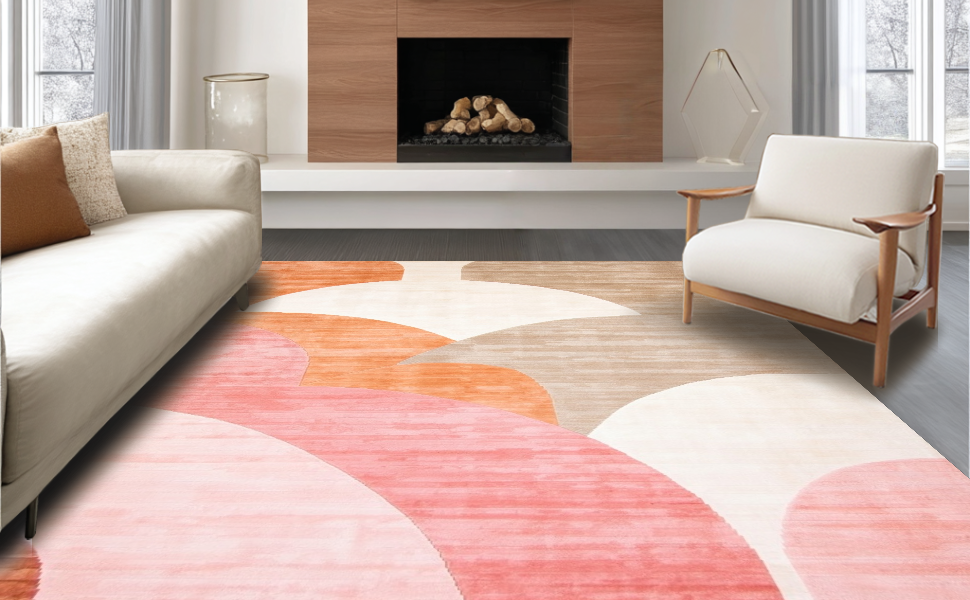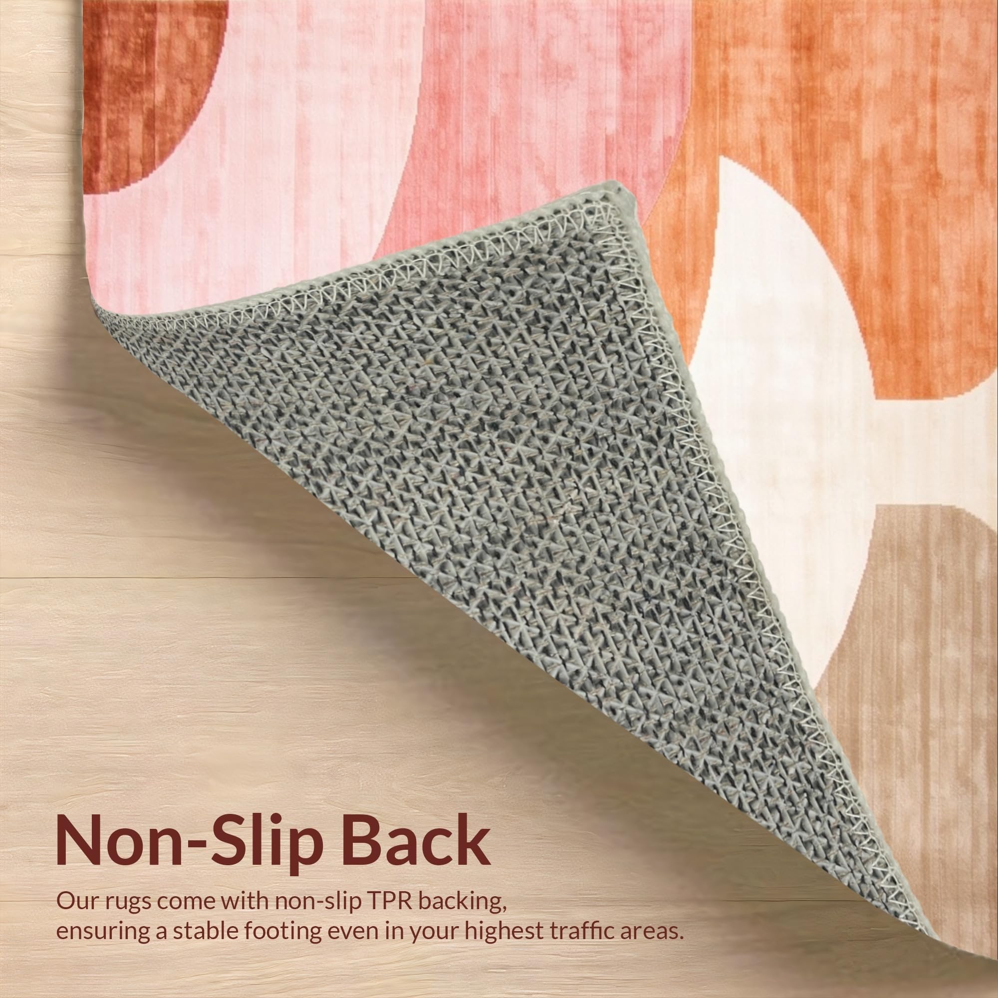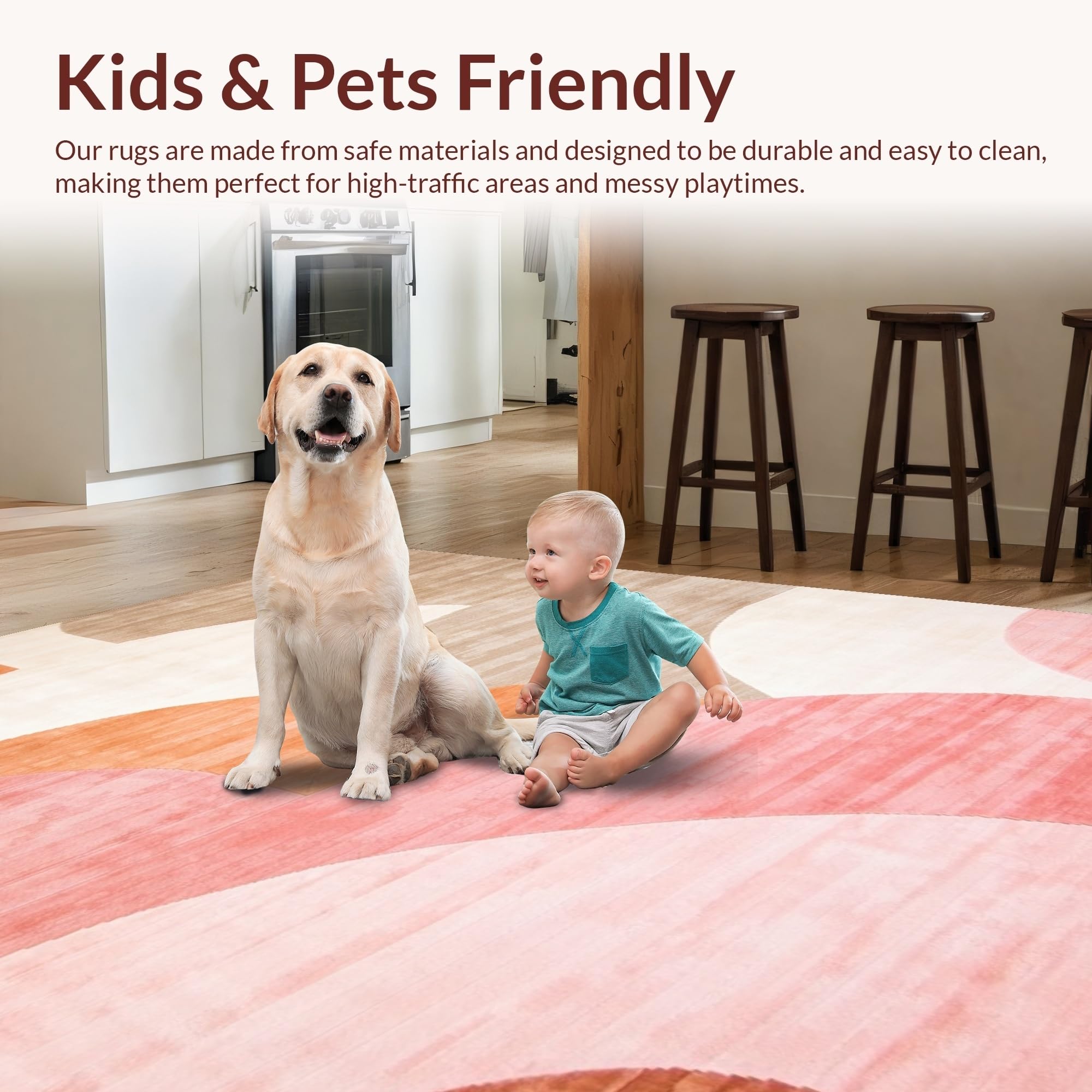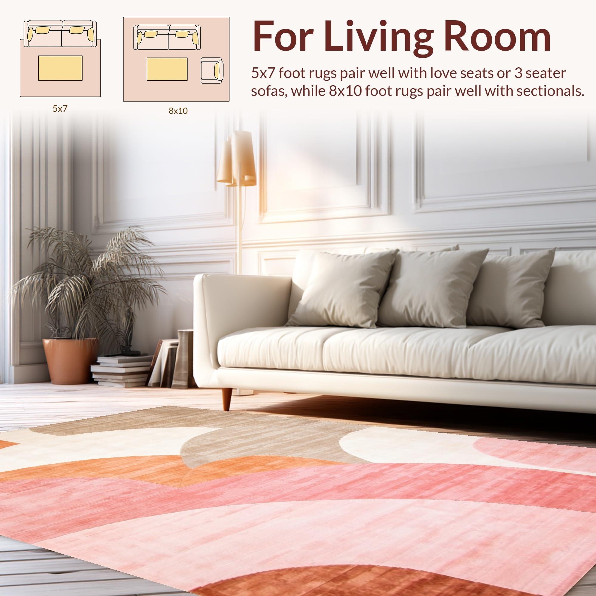 Ultra Soft Area Rug, Non Slip, Stain Resistant, Washable Area Rugs for Living Room, Bedroom, Contemporary Abstract Semi-Circle Motif(Beige) Overview: