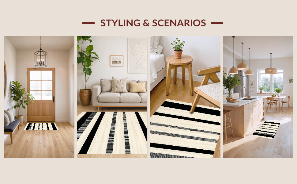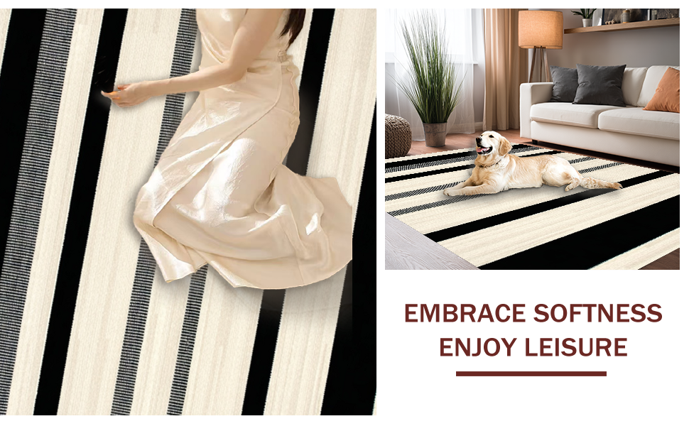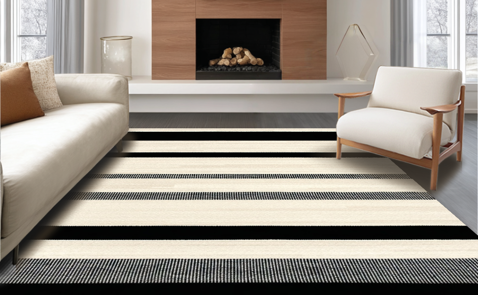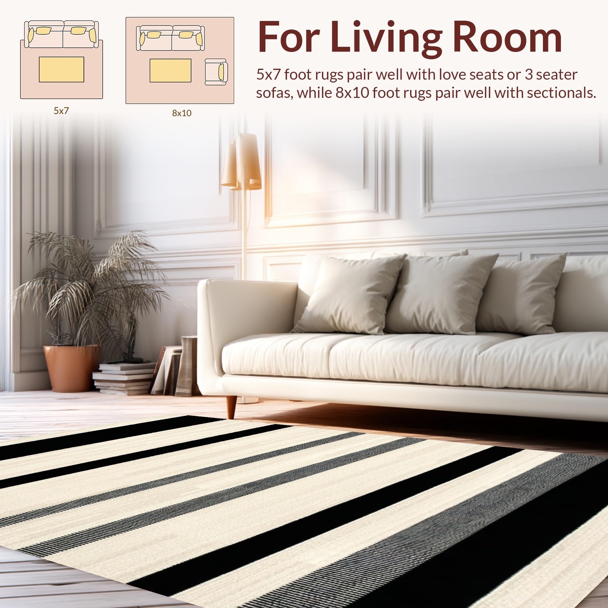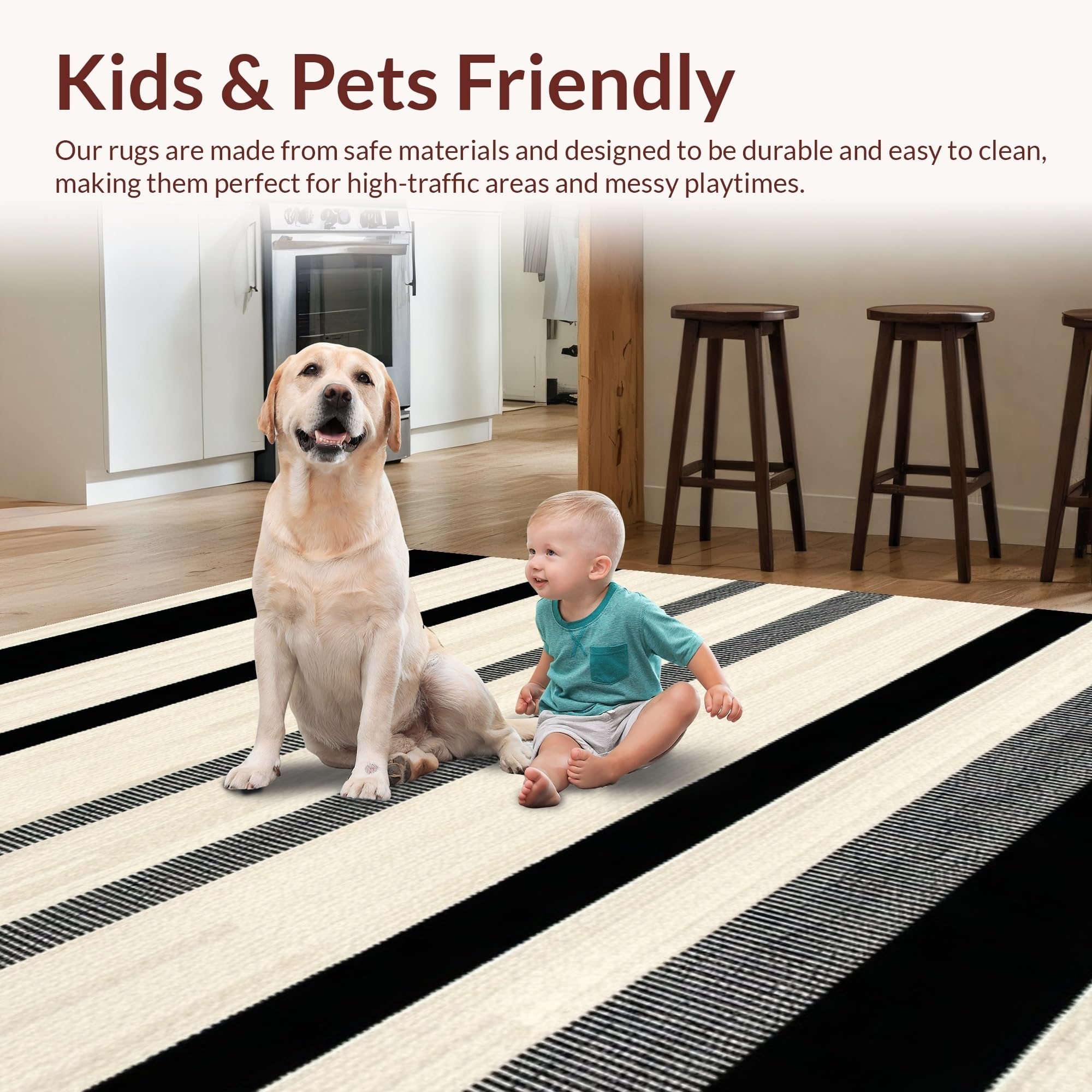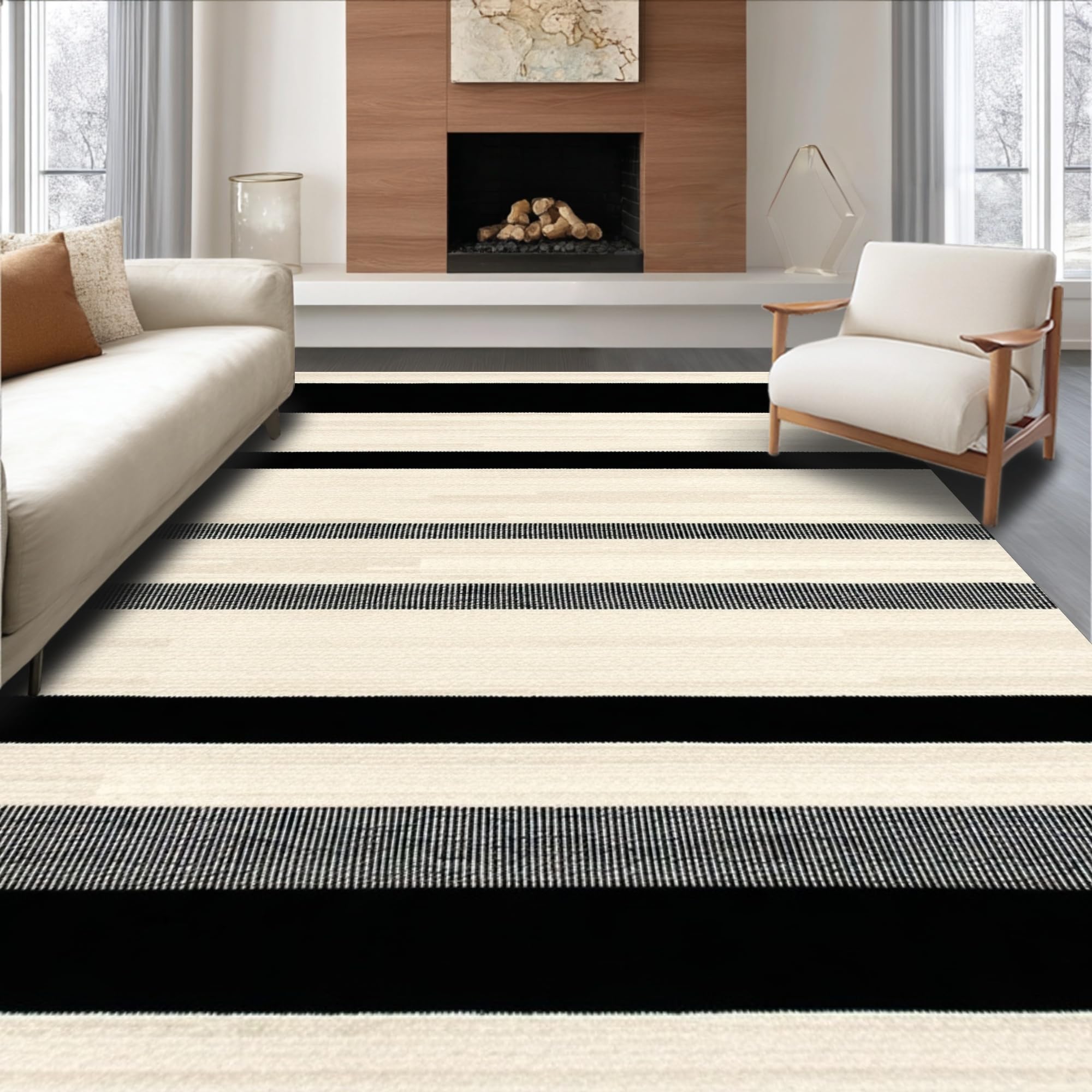 Ultra Soft Area Rug, Non Slip, Stain Resistant, Washable Area Rugs for Living Room, Bedroom, Contemporary Abstract Striped Aesthetic(Beige) Overview: