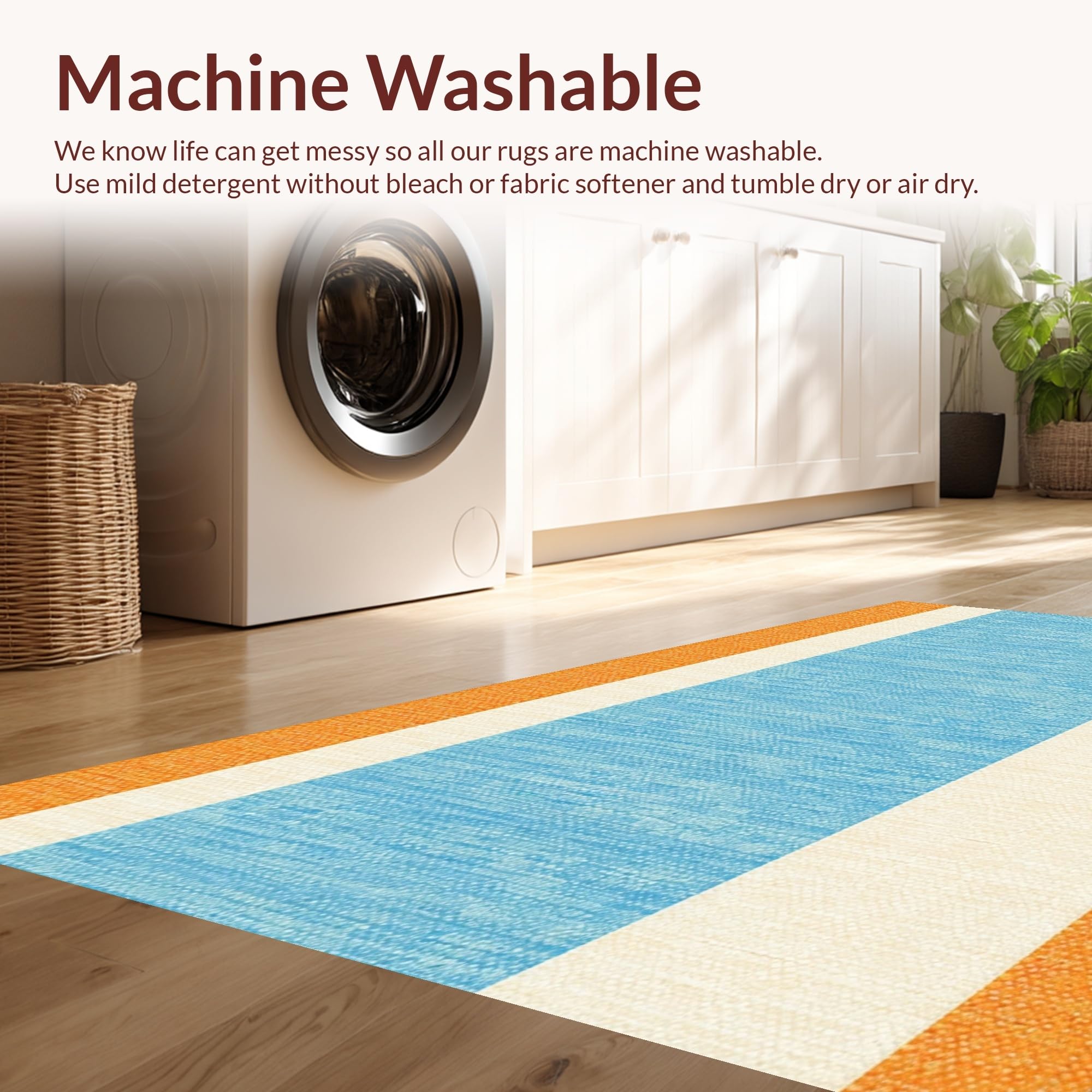 - Machine Washable: Our rugs can be easily thrown in the wash machine.