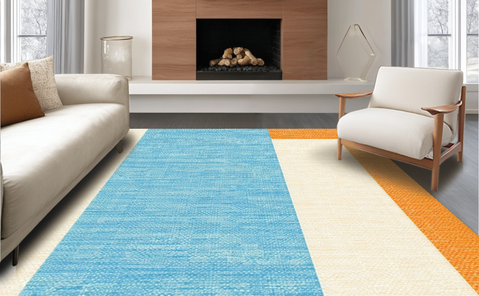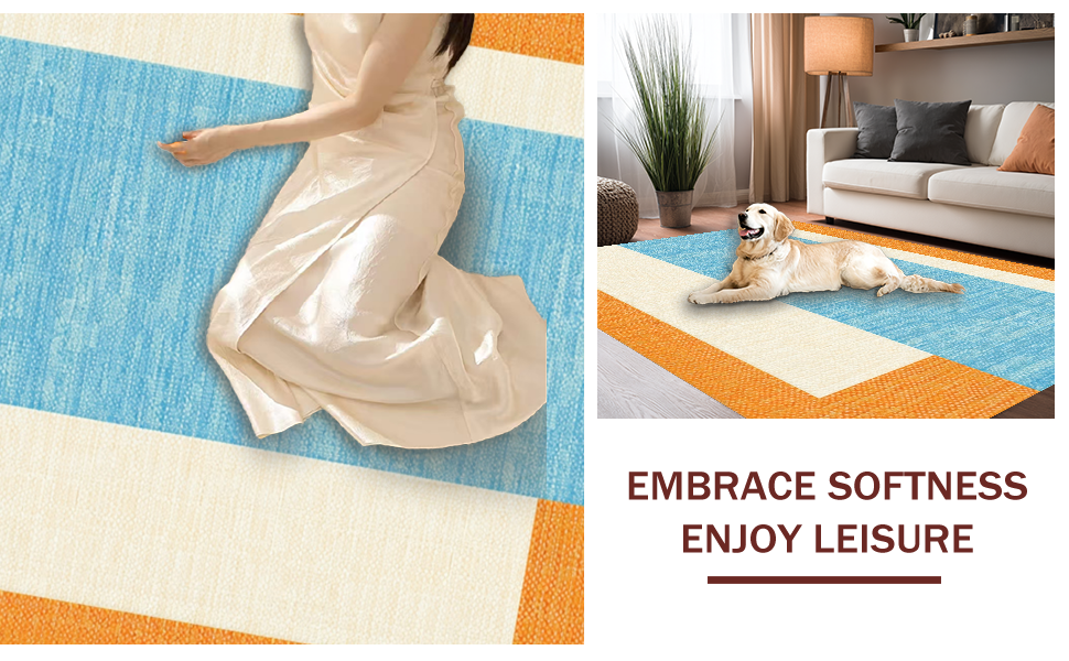 Ultra Soft Area Rug, Non Slip, Stain Resistant, Washable Area Rugs for Living Room, Bedroom, Contemporary Abstract Surf Aesthetic(Blue) Overview: