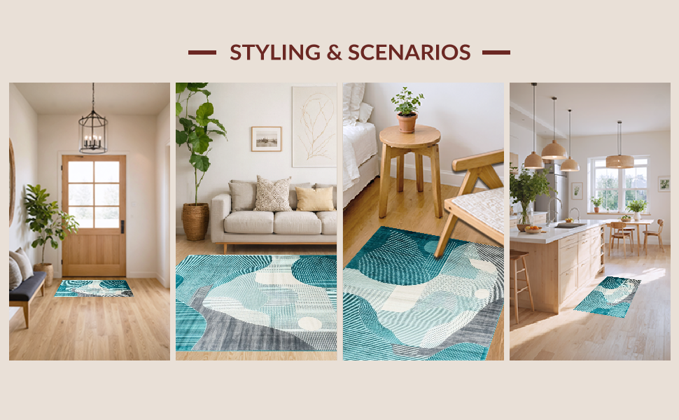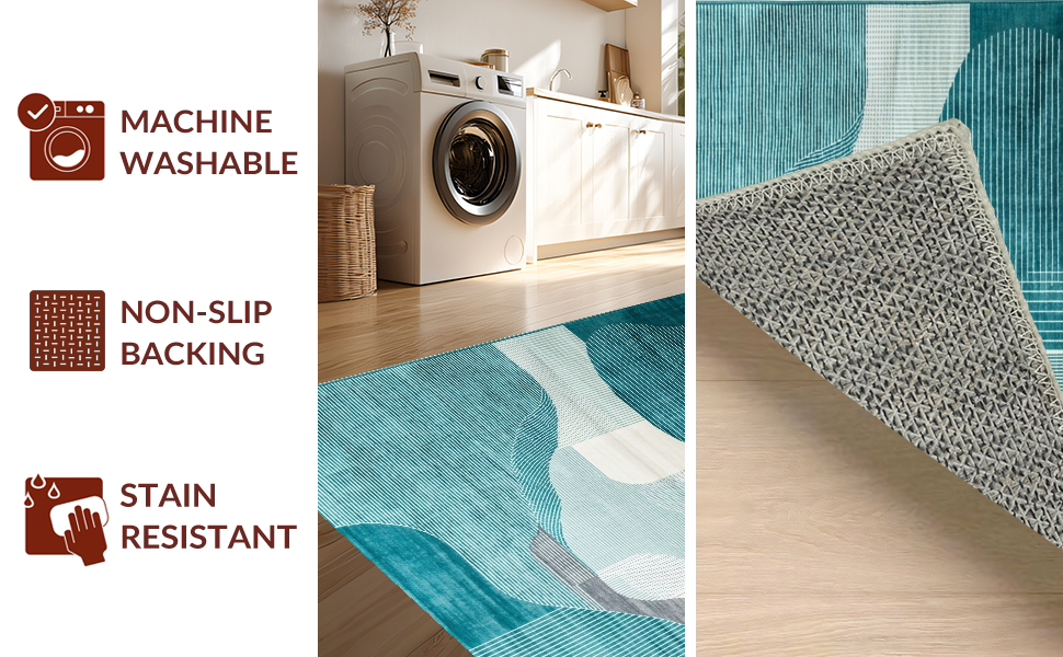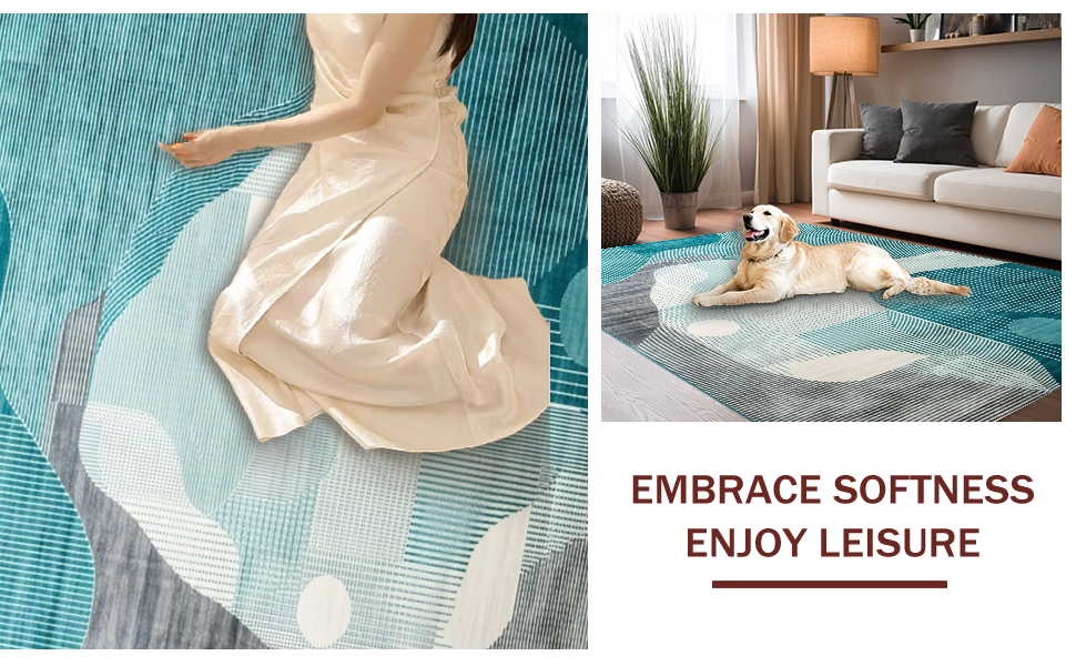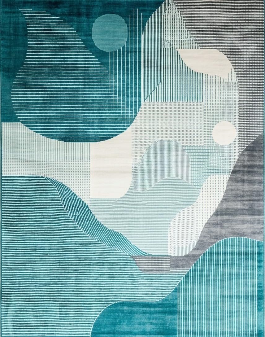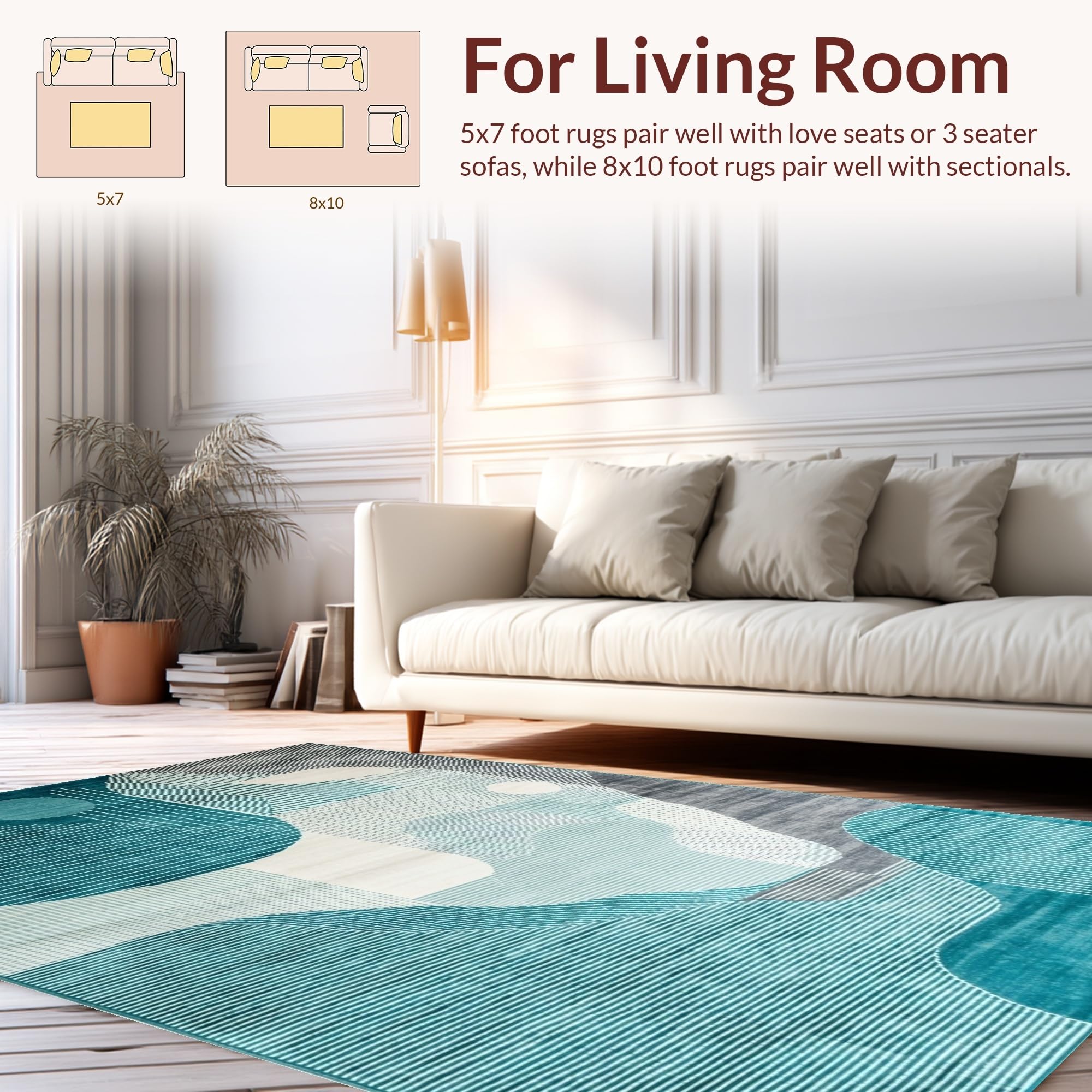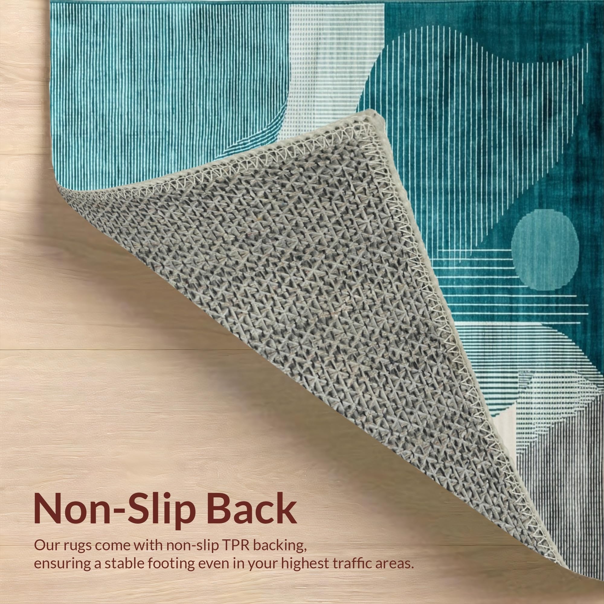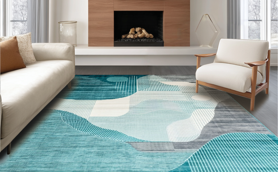 Ultra Soft Area Rug, Non Slip, Stain Resistant, Washable Area Rugs for Living Room, Bedroom, Contemporary Abstract Teal Composition(Blue) Overview: