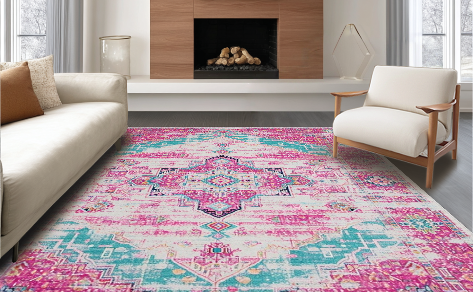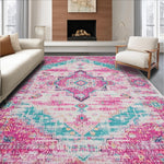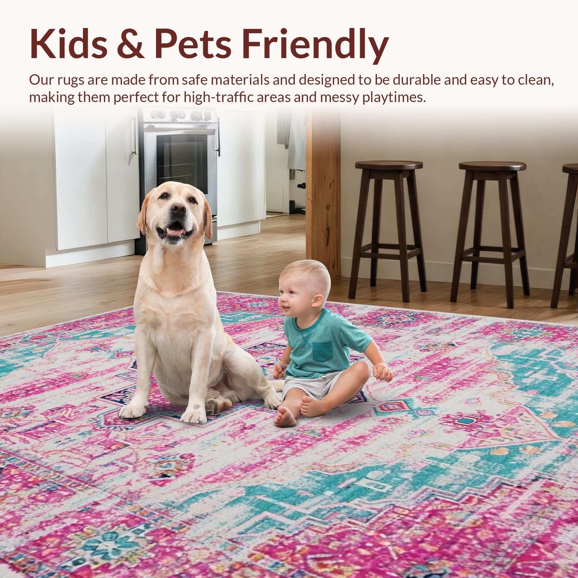 Ultra Soft Area Rug, Non Slip, Stain Resistant, Washable Area Rugs for Living Room, Bedroom, Contemporary Abstract Tiled Design(Pink) Overview: