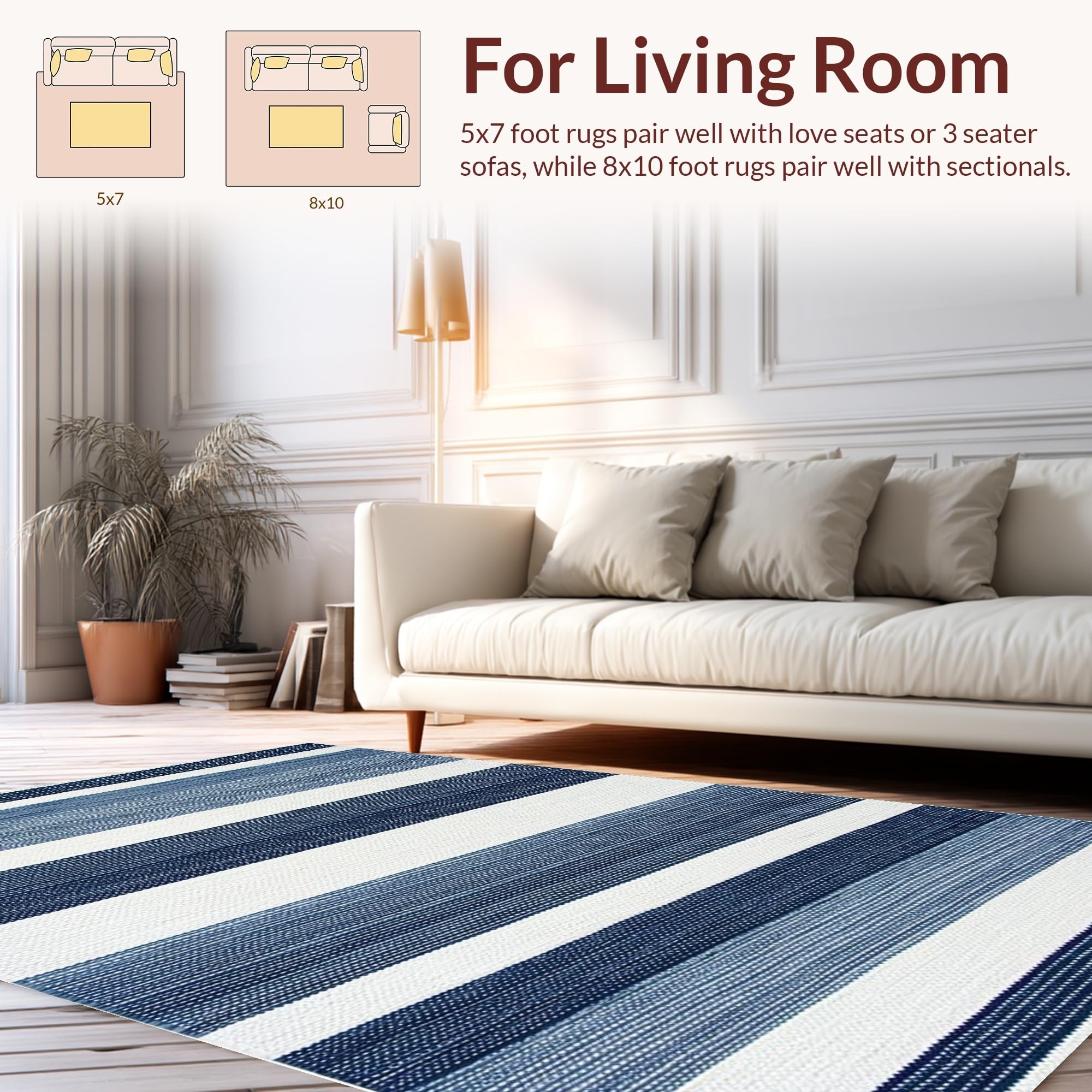 Ultra Soft Area Rug, Non Slip, Stain Resistant, Washable Area Rugs for Living Room, Bedroom, Contemporary Abstract White Elements(Blue) Overview: