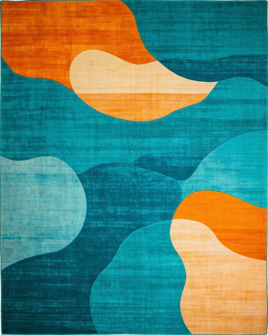 Flatwoven High Traffic Area Rug, Contemporary Orange & Teal Artistic, Non Slip, Stain Resistant, Washable Area Rugs for Living Room, Bedroom (Blue) Overview: