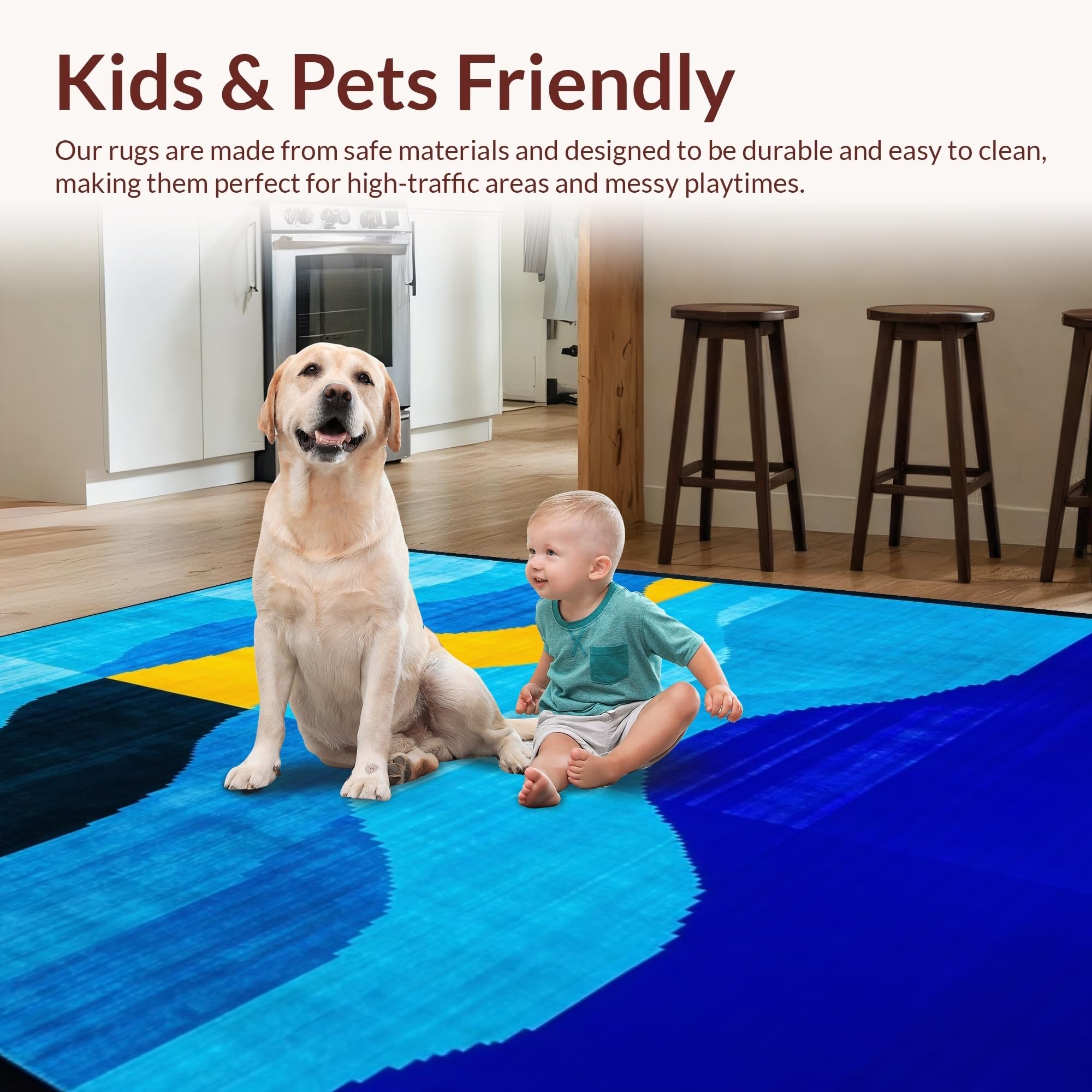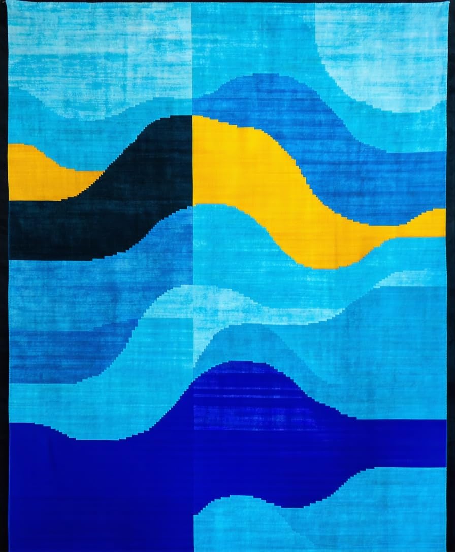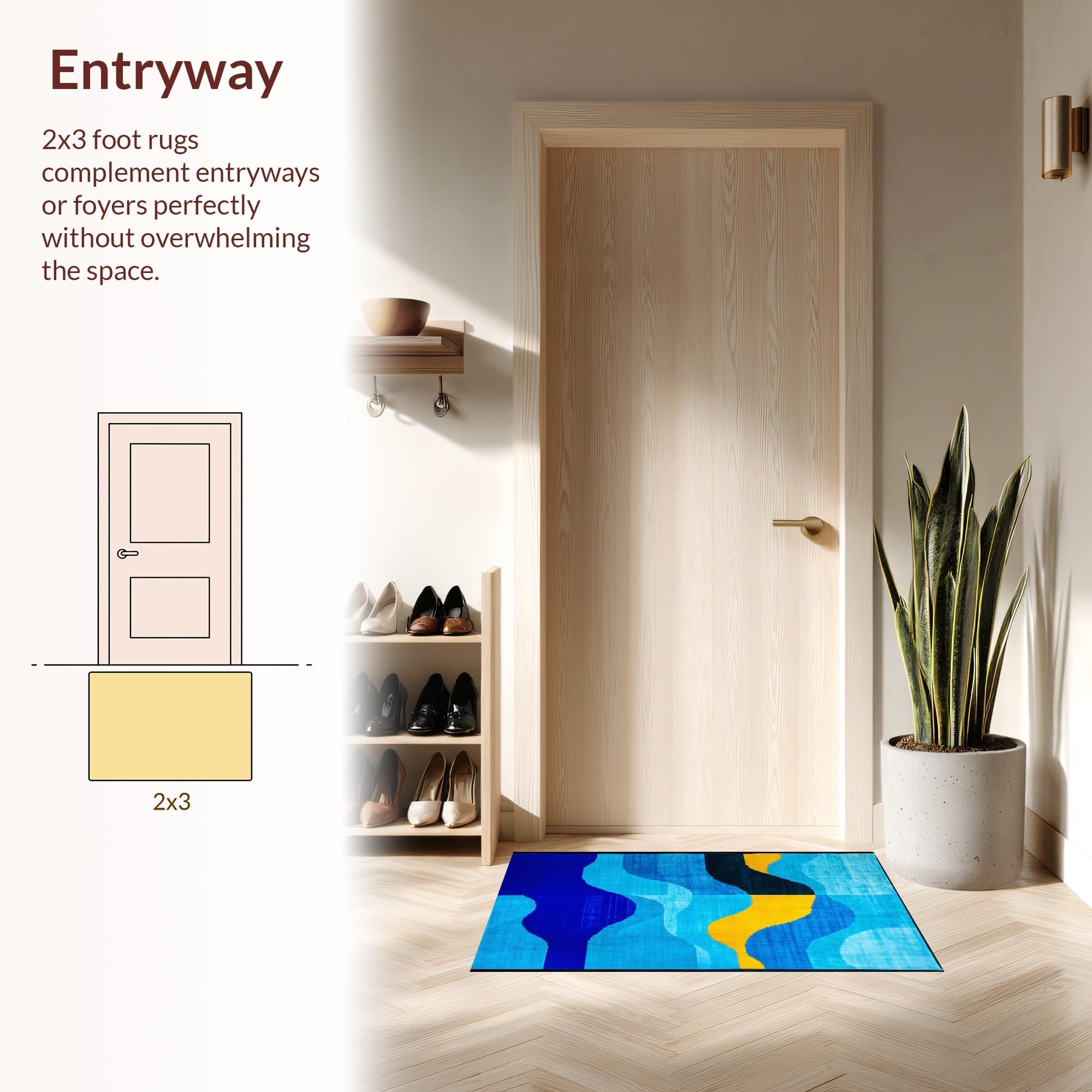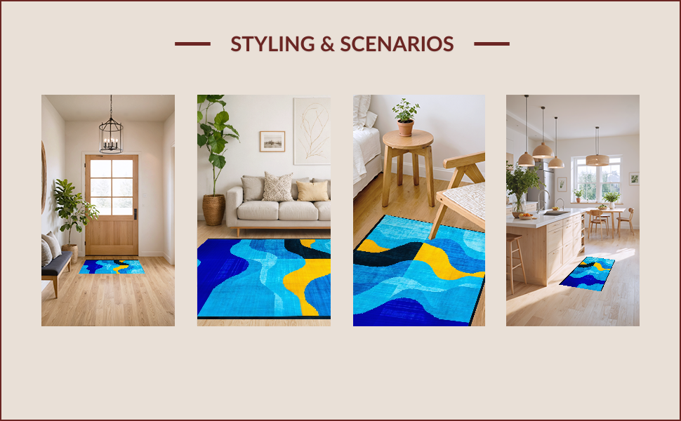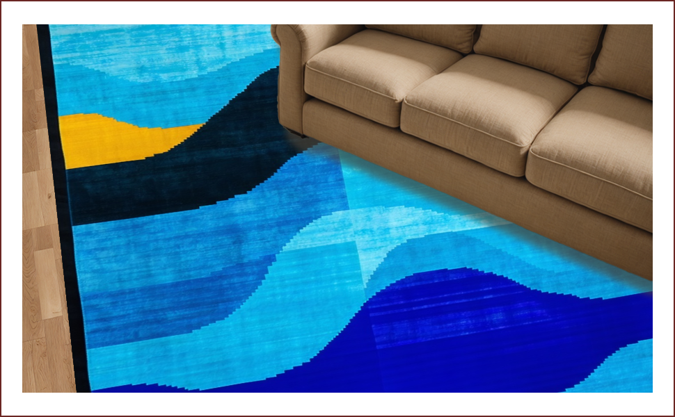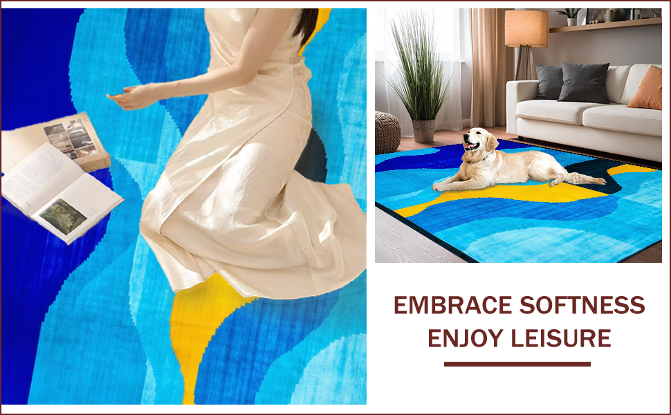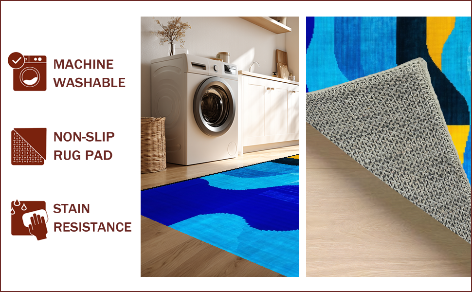 Ultra Soft Area Rug, Non Slip, Stain Resistant, Washable Area Rugs for Living Room, Bedroom, Contemporary Artistic Geometric Motif(Blue) Overview: