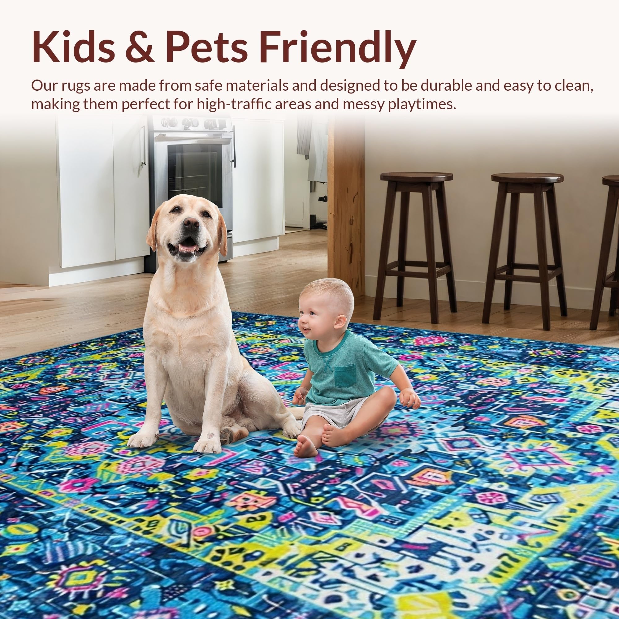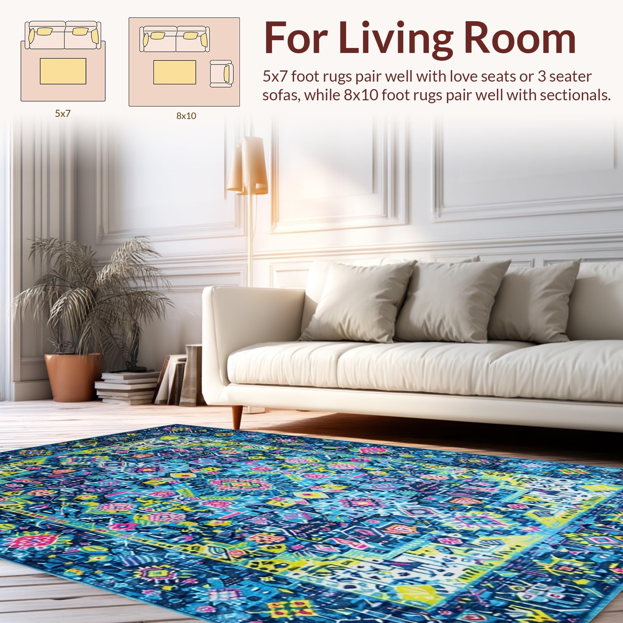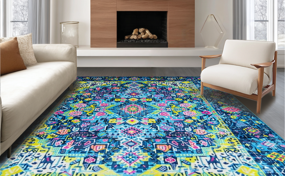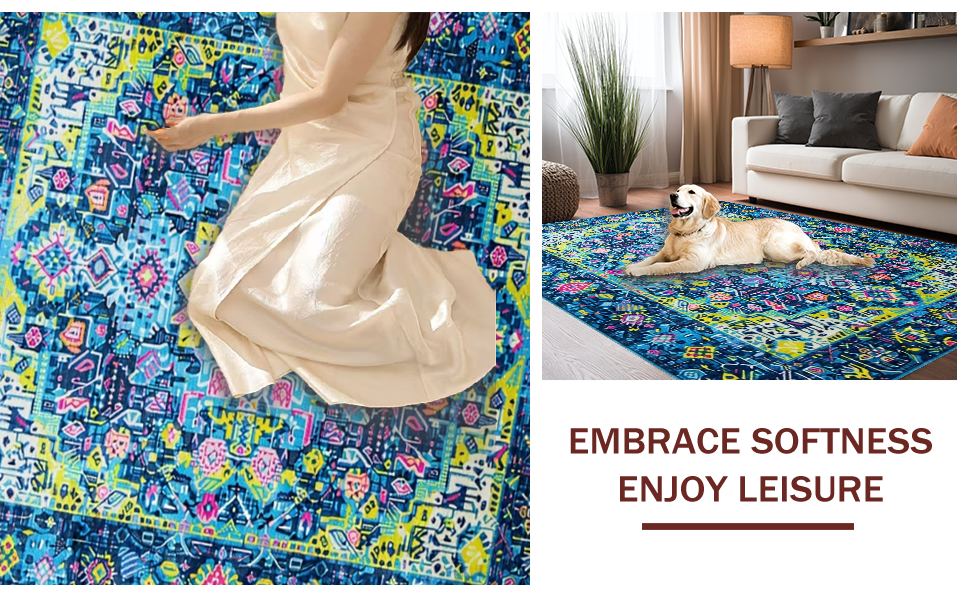 Ultra Soft Area Rug, Non Slip, Stain Resistant, Washable Area Rugs for Living Room, Bedroom, Contemporary Artistic Wave Pattern(Blue) Overview: