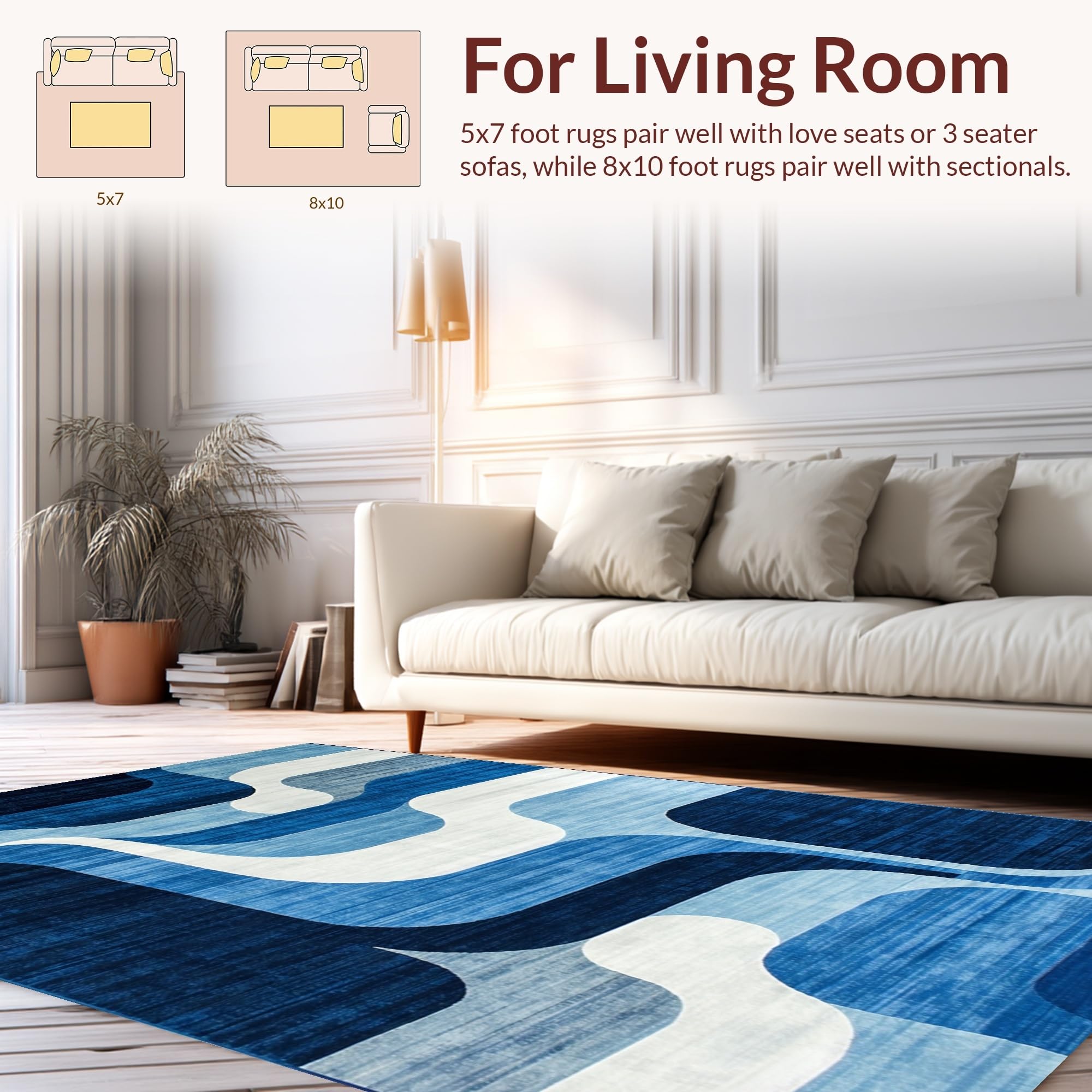 Ultra Soft Area Rug, Non Slip, Stain Resistant, Washable Area Rugs for Living Room, Bedroom, Contemporary Astronomical Pattern(Blue) Overview: