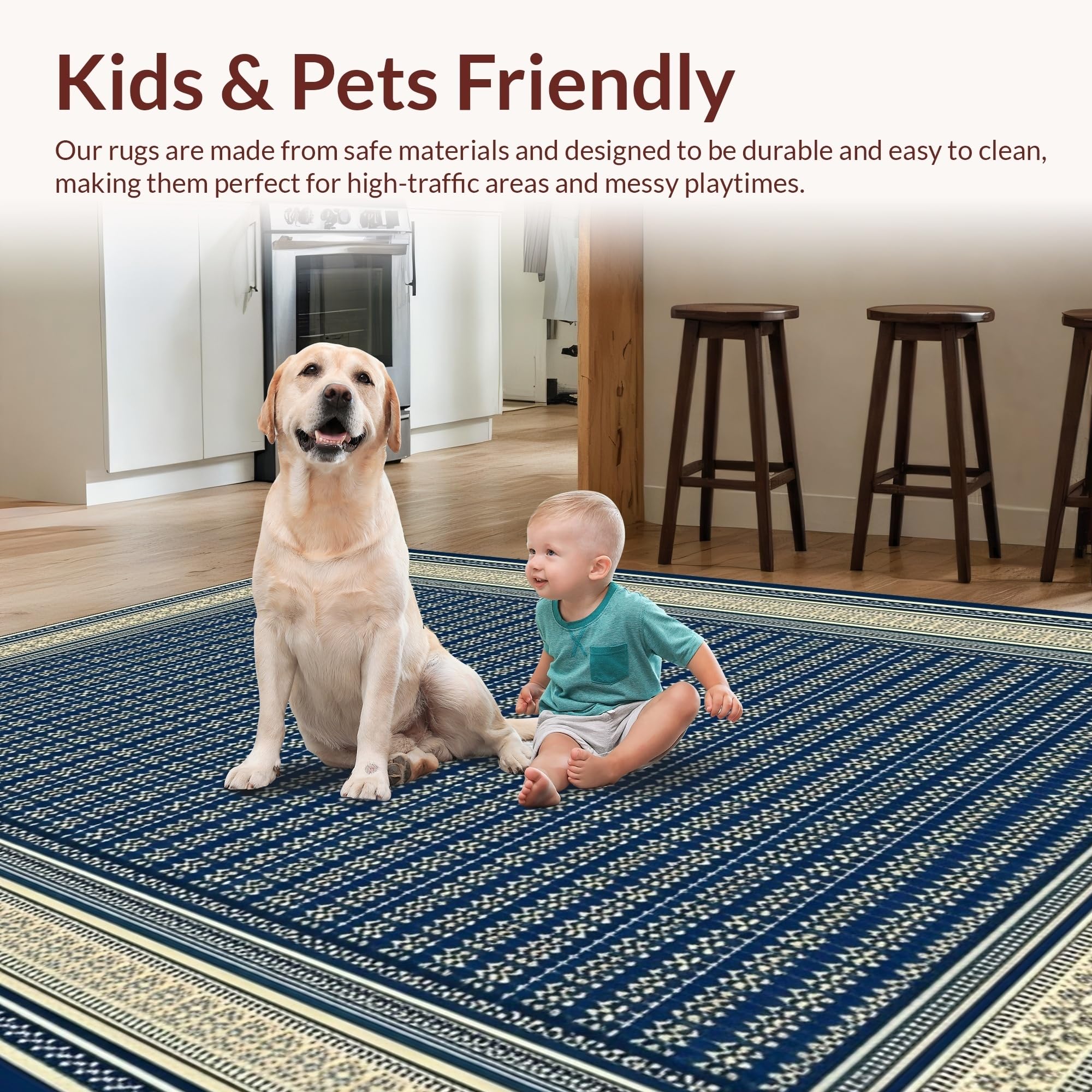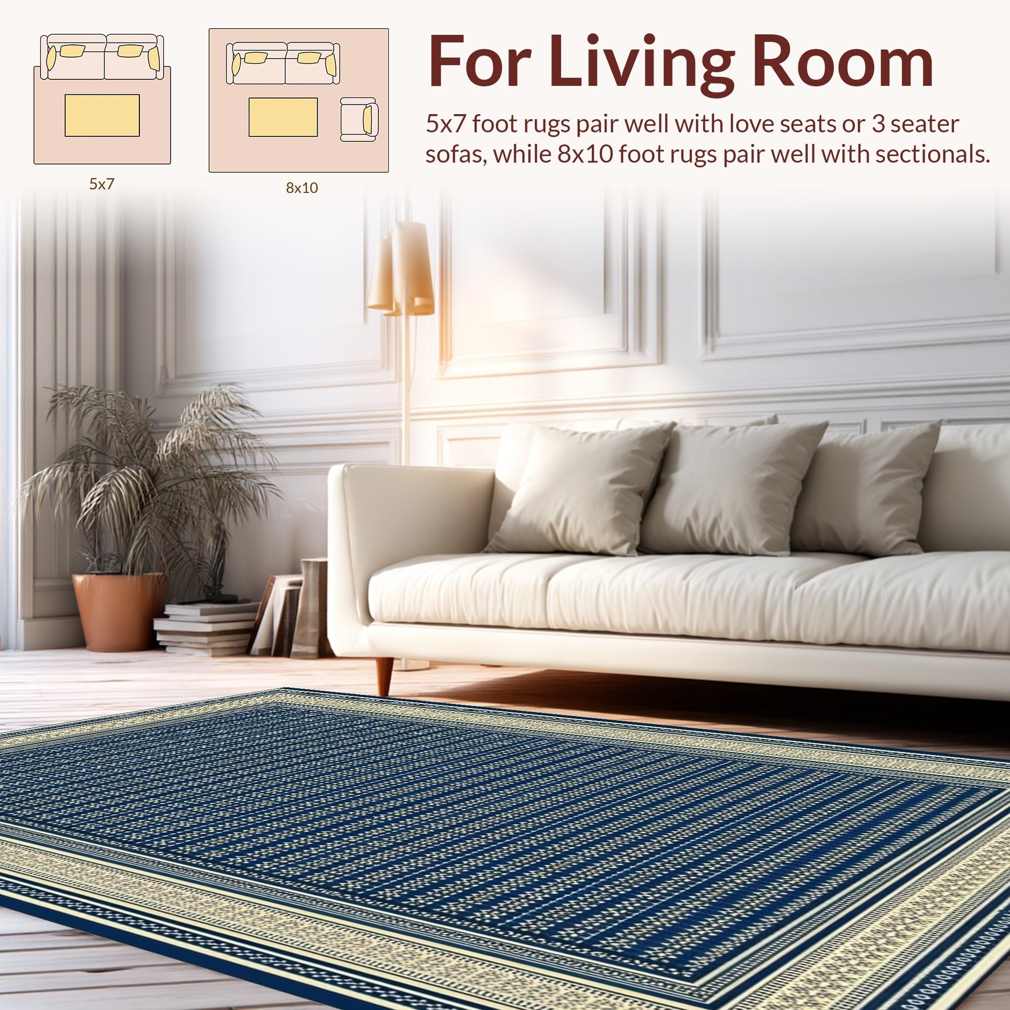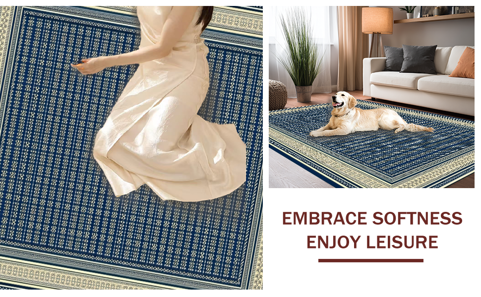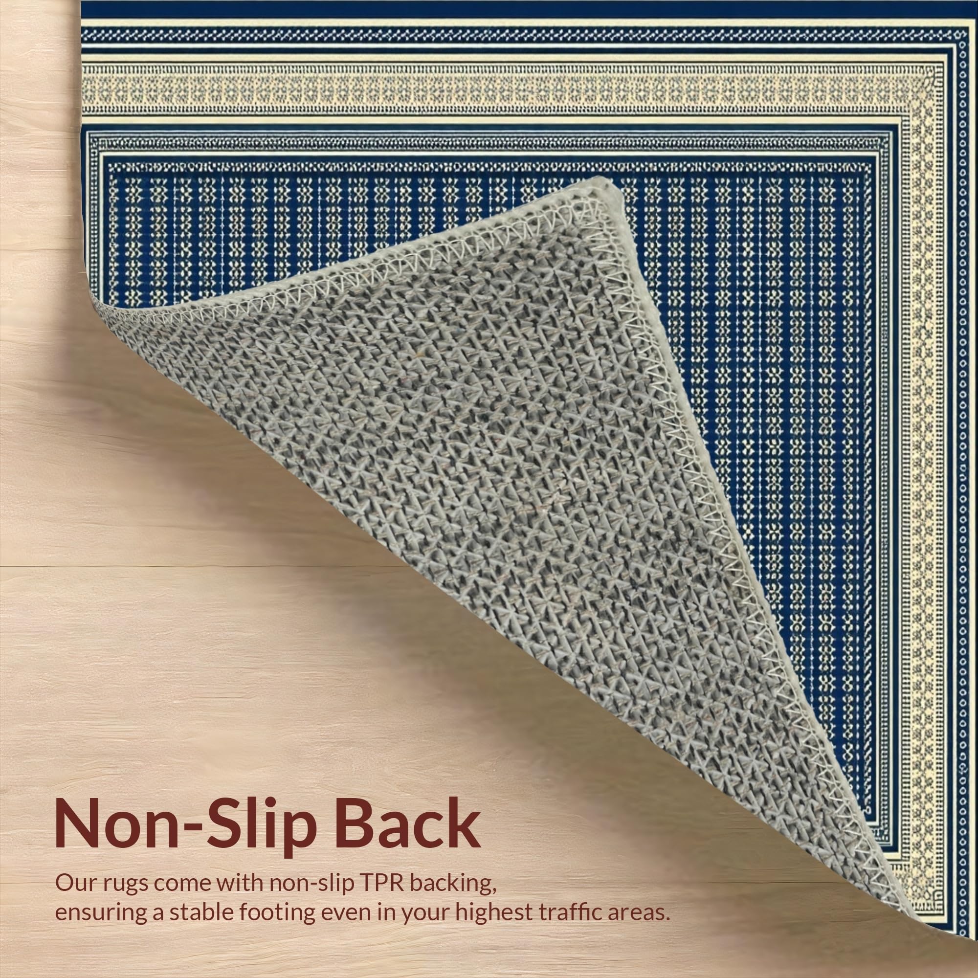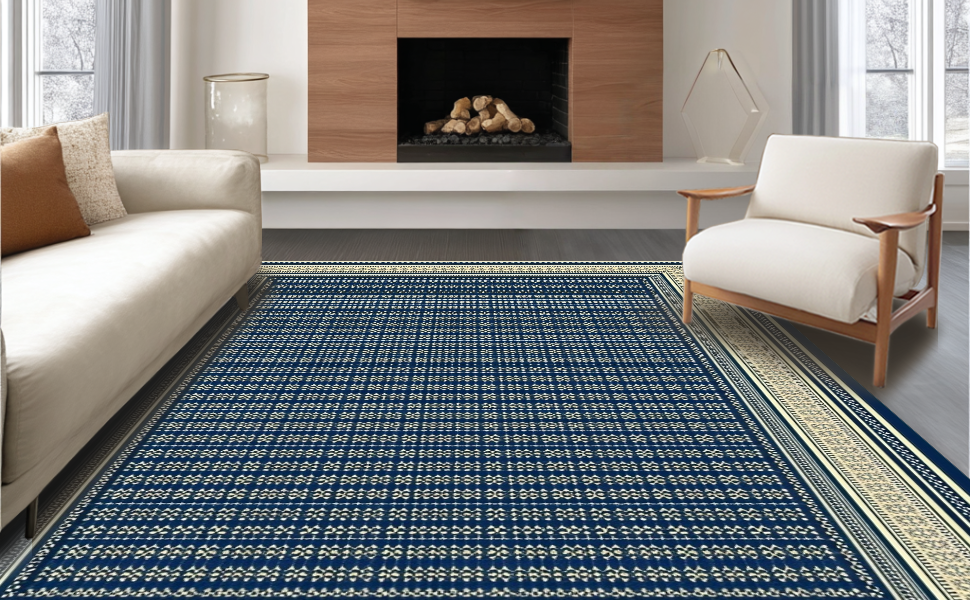 Ultra Soft Area Rug, Non Slip, Stain Resistant, Washable Area Rugs for Living Room, Bedroom, Contemporary Beige Ogee Composition(Blue) Overview: