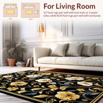 Flatwoven High Traffic Area Rug, Contemporary Black and Floral, Non Slip, Stain Resistant, Washable Area Rugs for Living Room, Bedroom (Black) Overview: