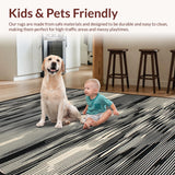 Ultra Soft Area Rug, Non Slip, Stain Resistant, Washable Area Rugs for Living Room, Bedroom, Contemporary Black and White Stripes(Black) Overview: