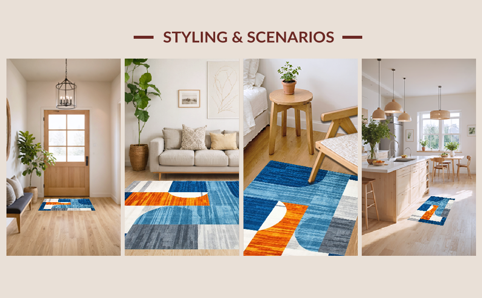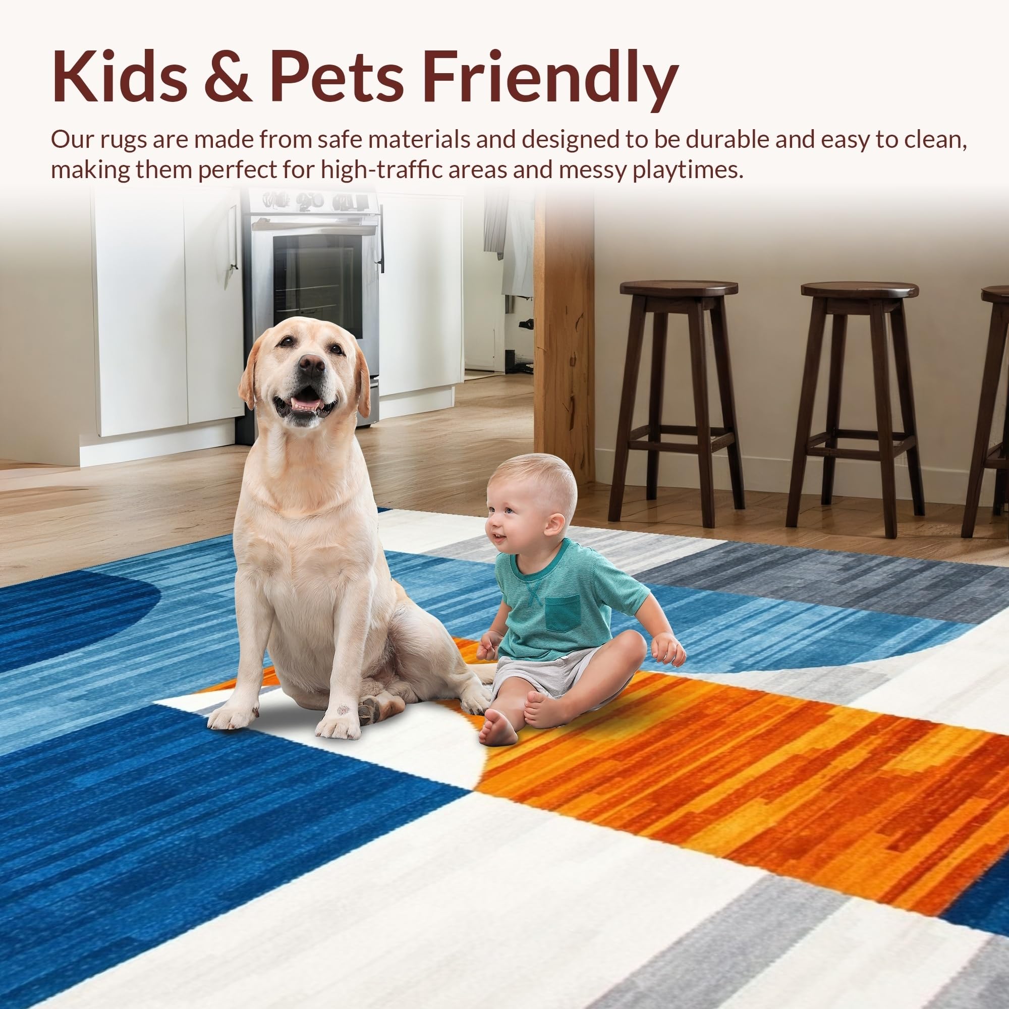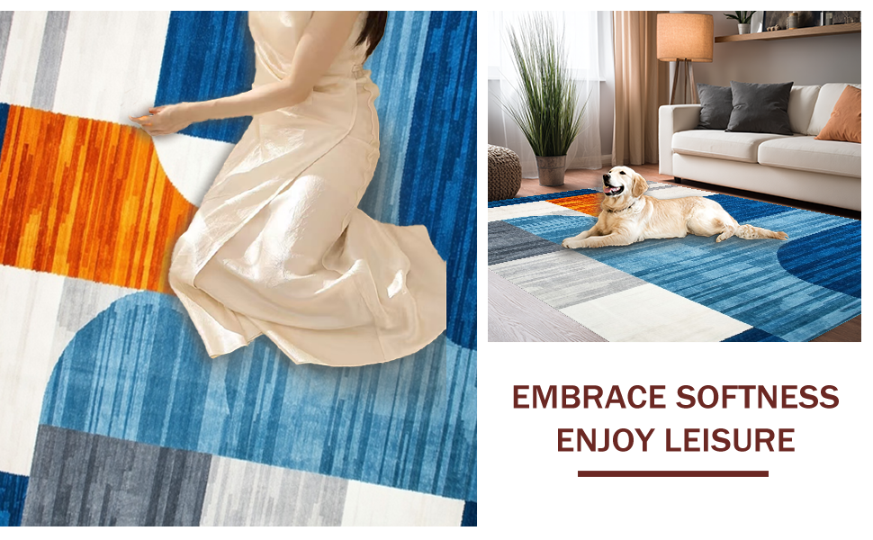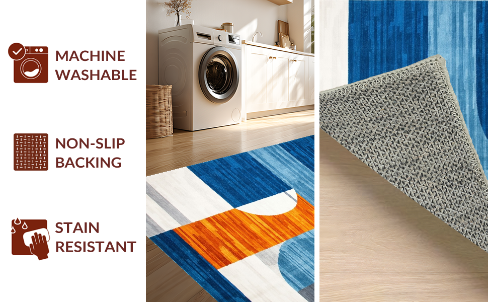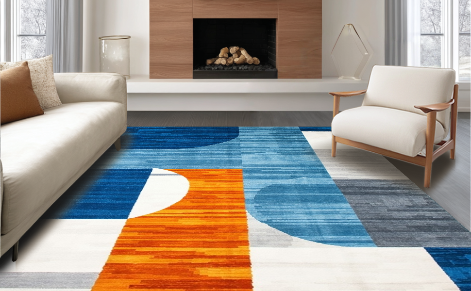 Ultra Soft Area Rug, Non Slip, Stain Resistant, Washable Area Rugs for Living Room, Bedroom, Contemporary Blue Geometric Aesthetic(Blue) Overview: