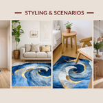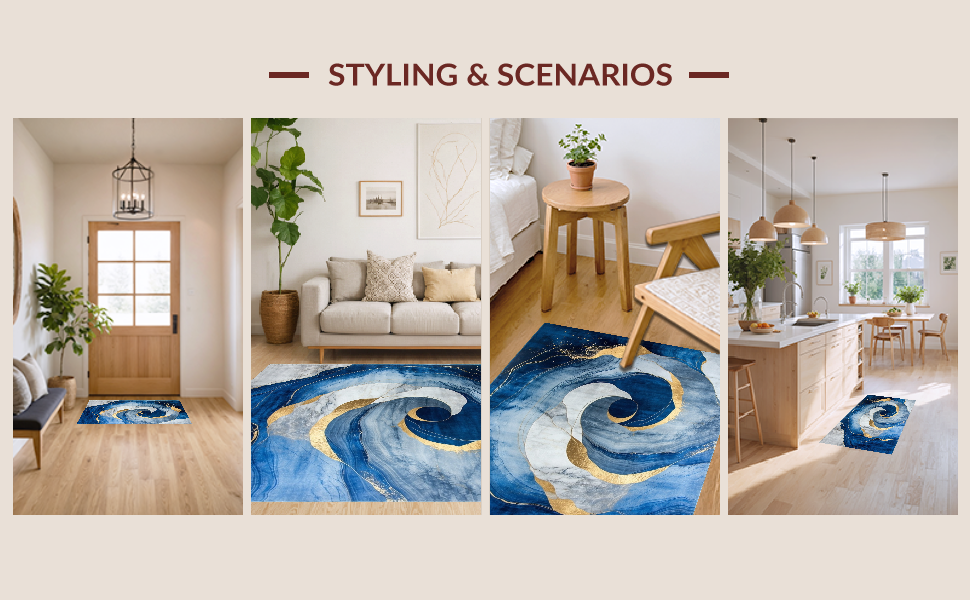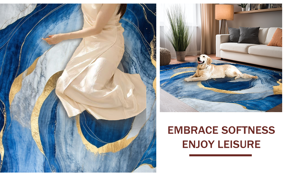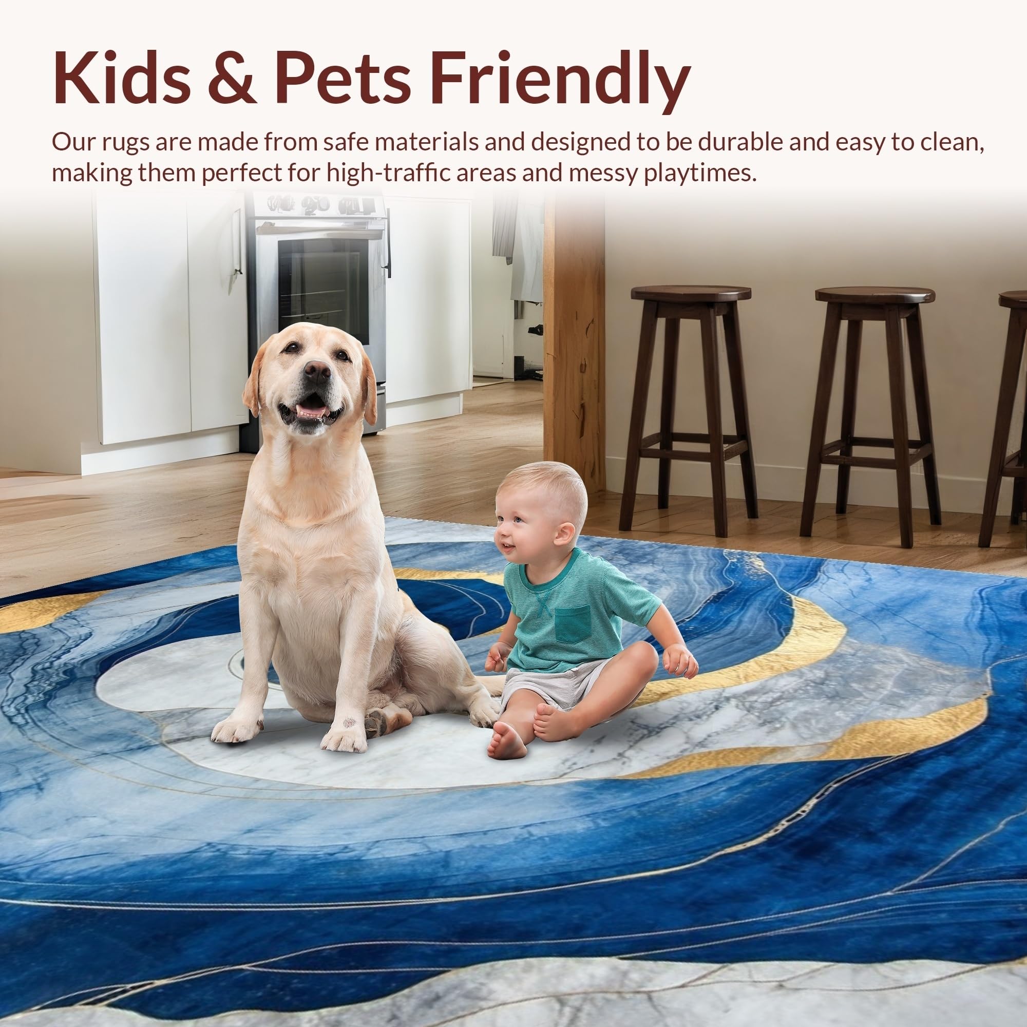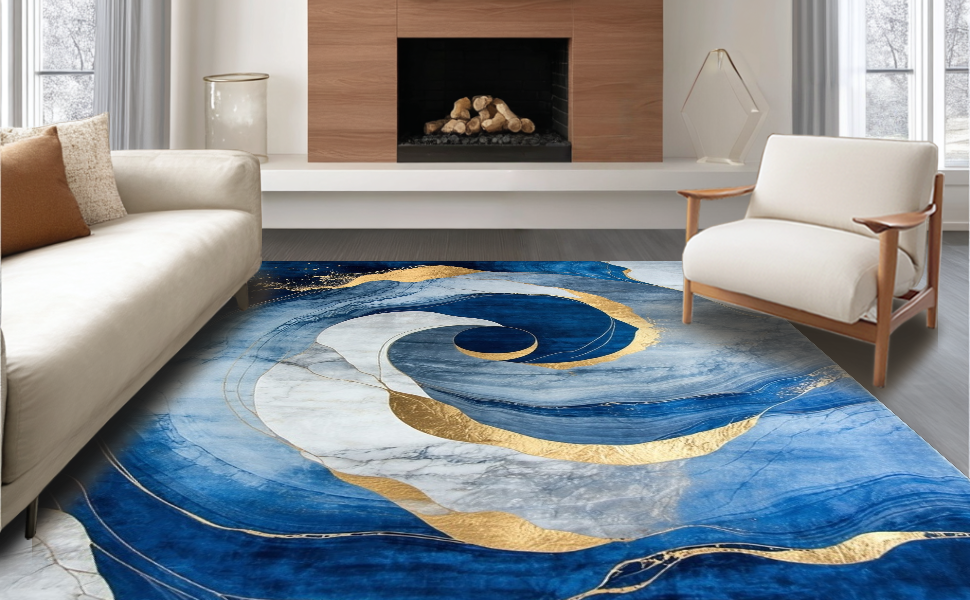 Ultra Soft Area Rug, Non Slip, Stain Resistant, Washable Area Rugs for Living Room, Bedroom, Contemporary Blue Gradient Motif(Blue) Overview: