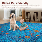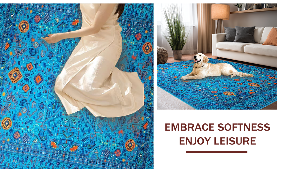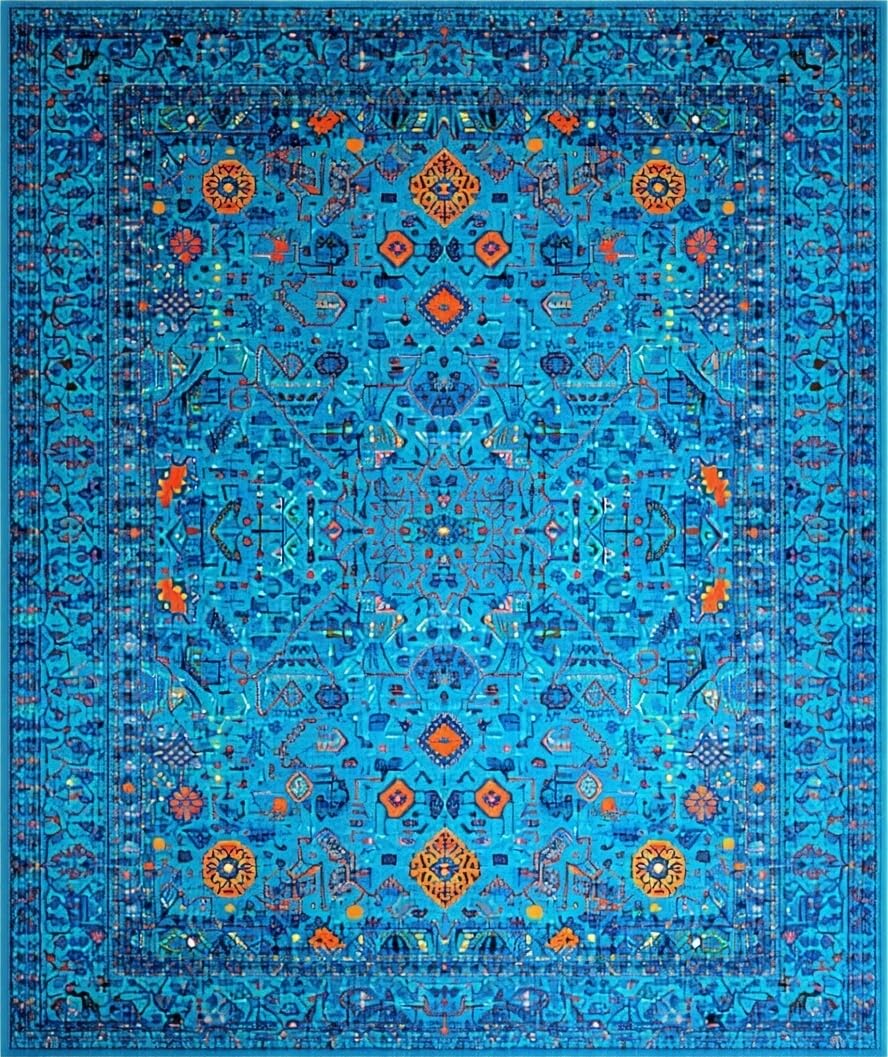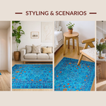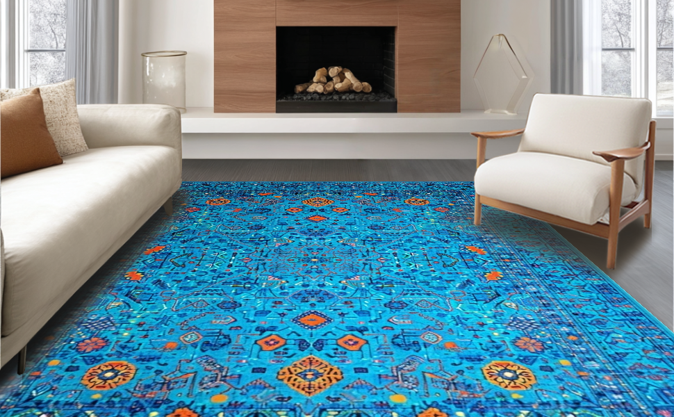 Ultra Soft Area Rug, Non Slip, Stain Resistant, Washable Area Rugs for Living Room, Bedroom, Contemporary Blue-Orange Tiled Elegance(Blue) Overview: