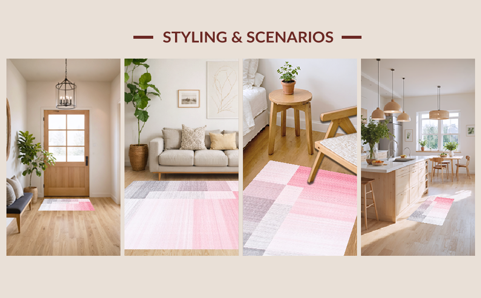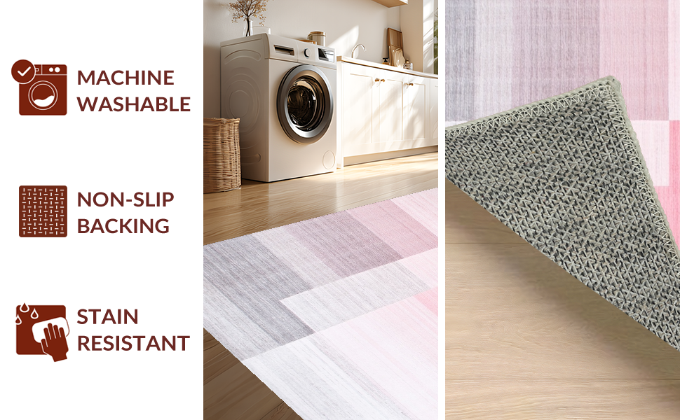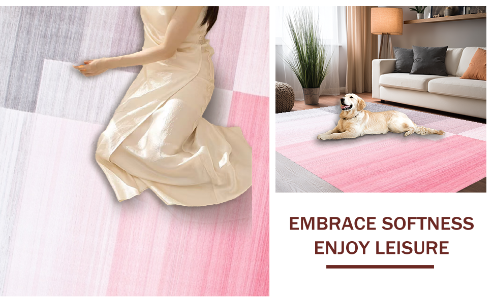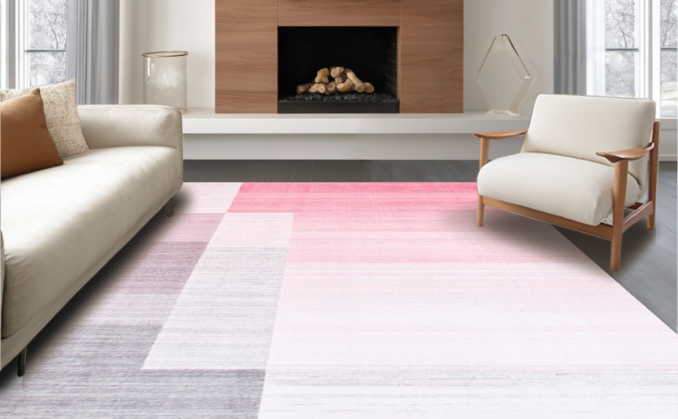 Ultra Soft Area Rug, Non Slip, Stain Resistant, Washable Area Rugs for Living Room, Bedroom, Contemporary Blush Watercolor Design(Pink) Overview: