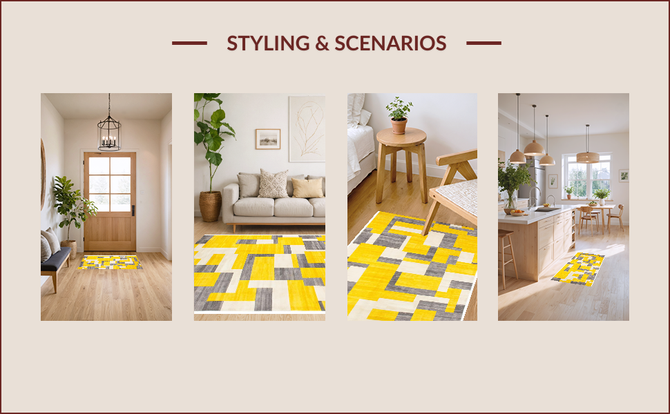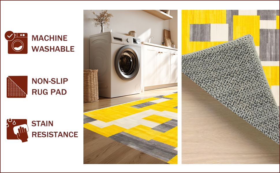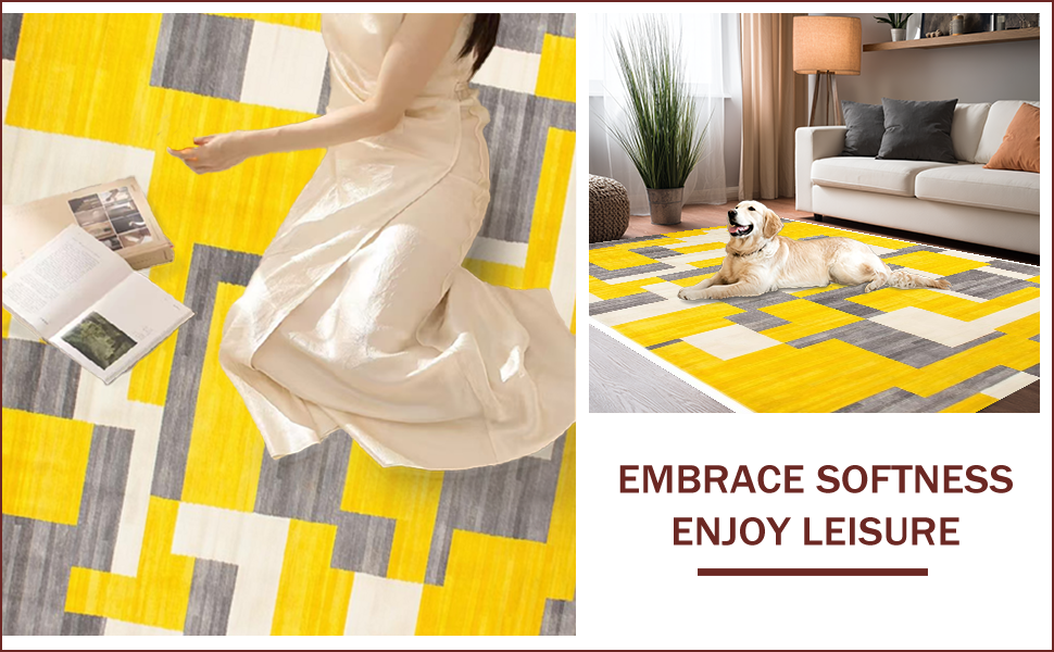 Ultra Soft Area Rug, Non Slip, Stain Resistant, Washable Area Rugs for Living Room, Bedroom, Contemporary Bold Color Fusion(Yellow) Overview: