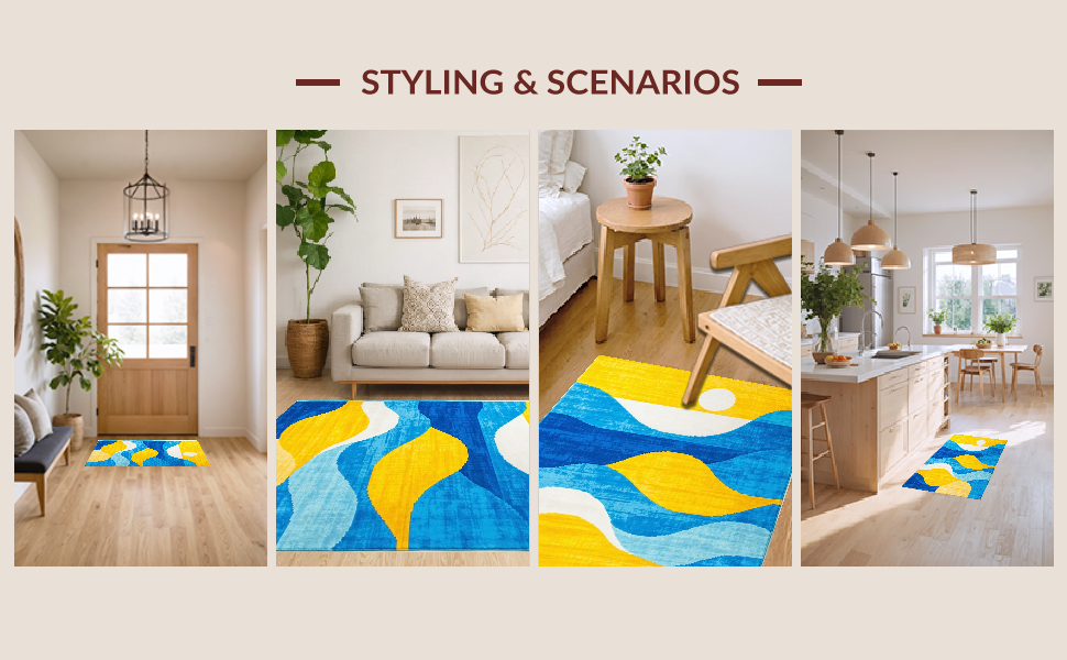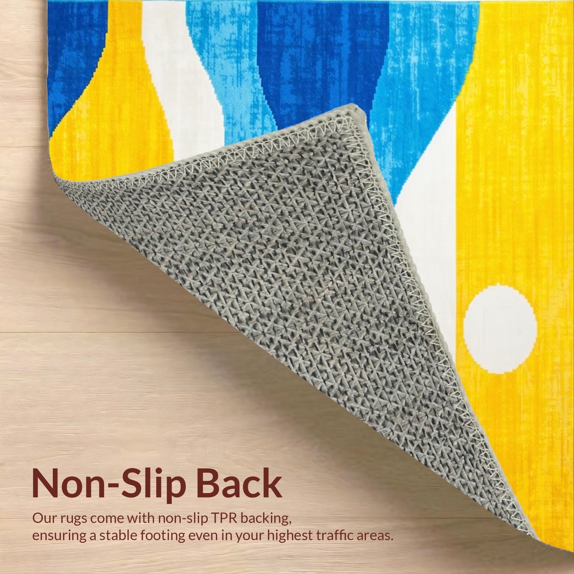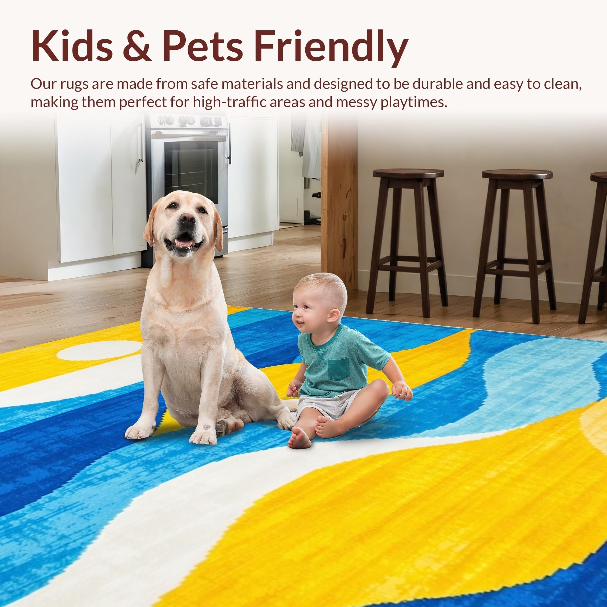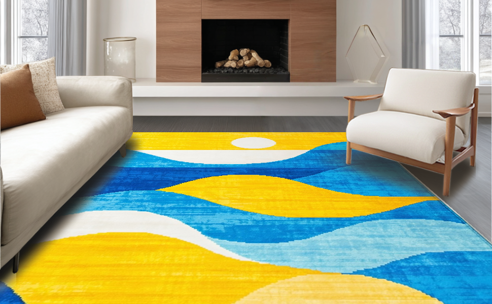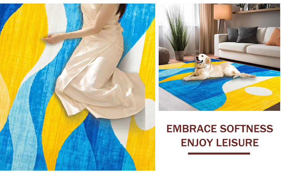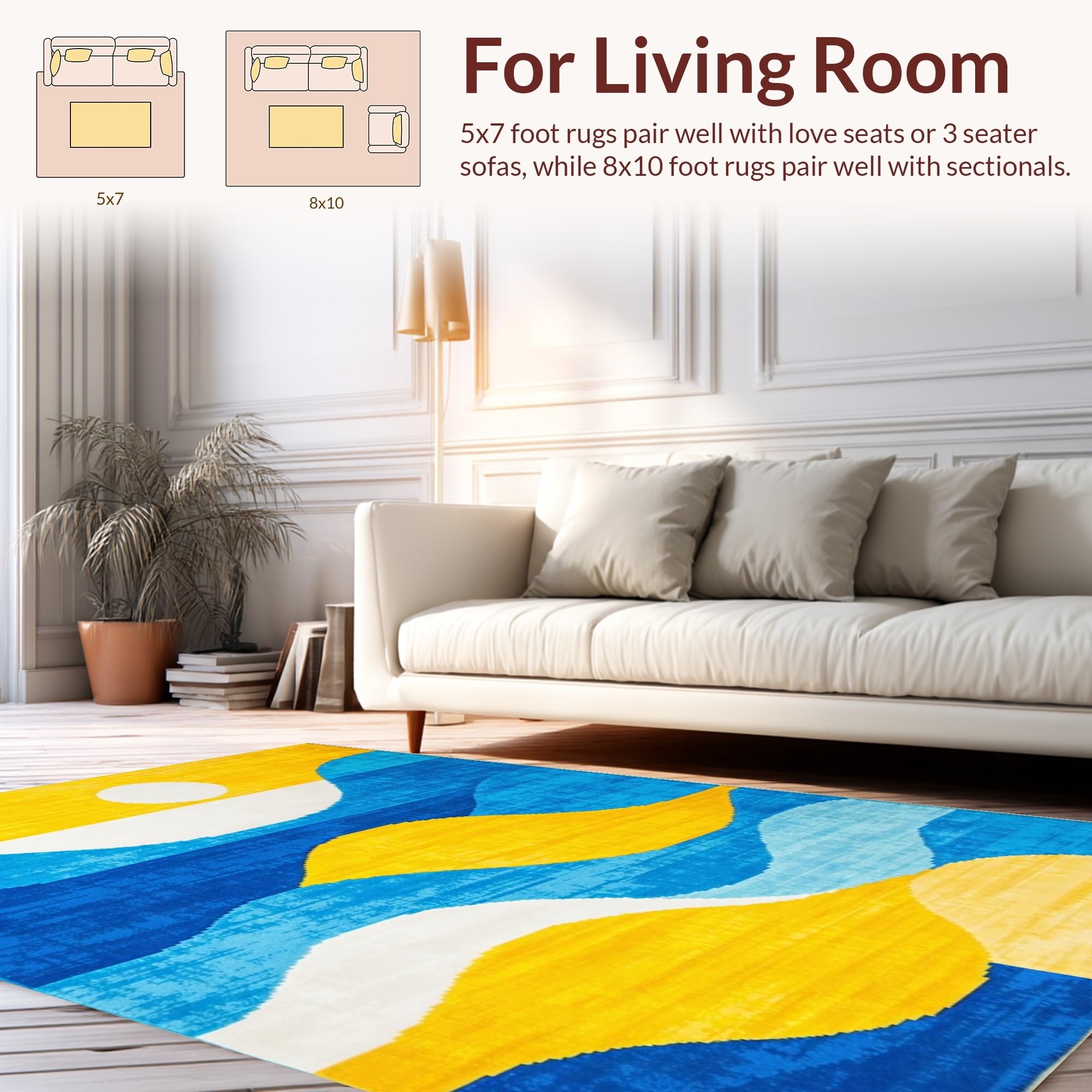 Ultra Soft Area Rug, Non Slip, Stain Resistant, Washable Area Rugs for Living Room, Bedroom, Contemporary Bold Streaked Aesthetic(Blue) Overview:
