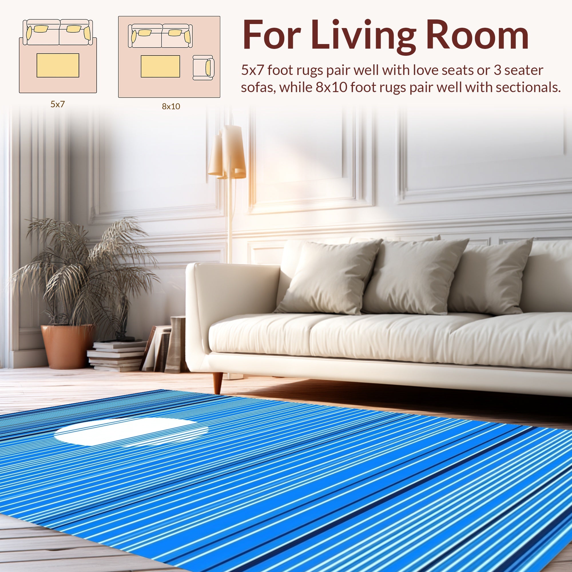 Flatwoven High Traffic Area Rug, Contemporary Bold Striped Arrangement, Non Slip, Stain Resistant, Washable Area Rugs for Living Room, Bedroom (Blue) Overview: