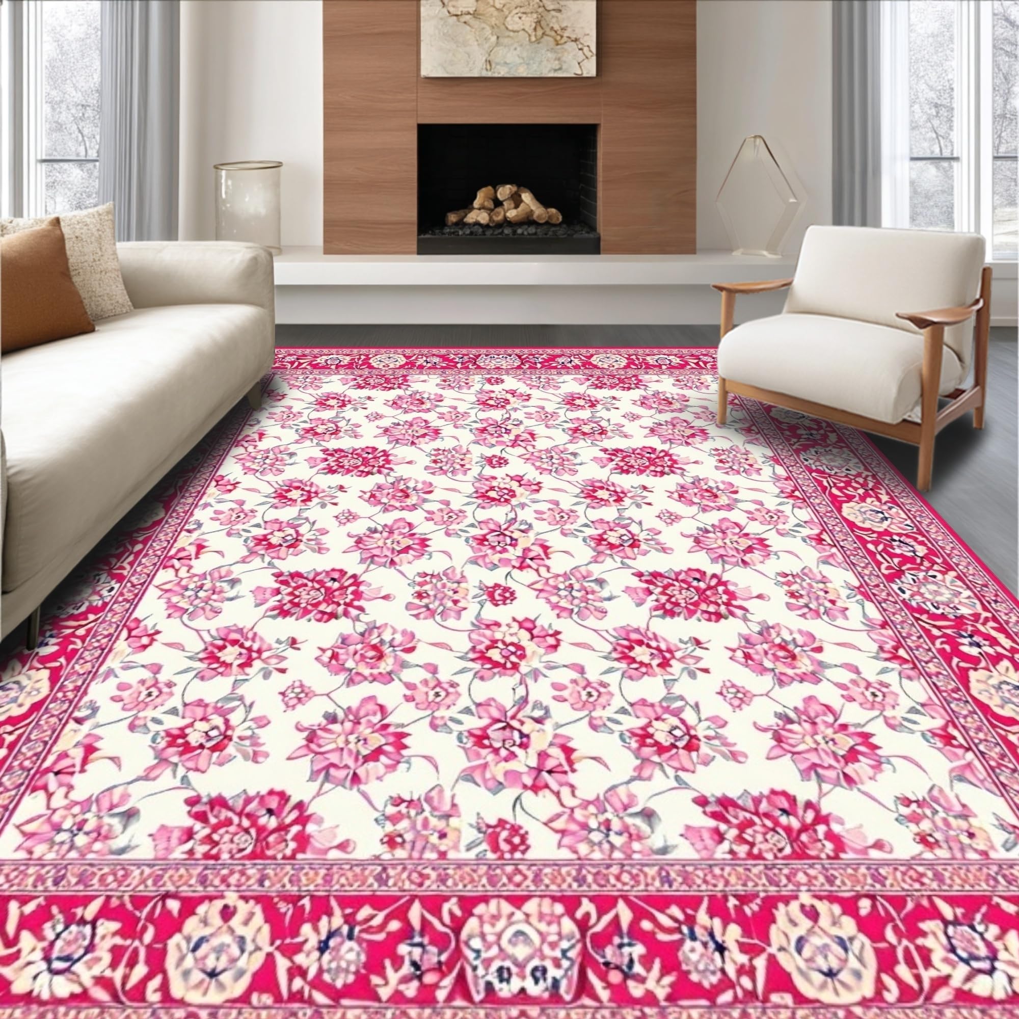 Ultra Soft Area Rug, Non Slip, Stain Resistant, Washable Area Rugs for Living Room, Bedroom, Contemporary Cheerful Blossom Palette(Red) Overview: