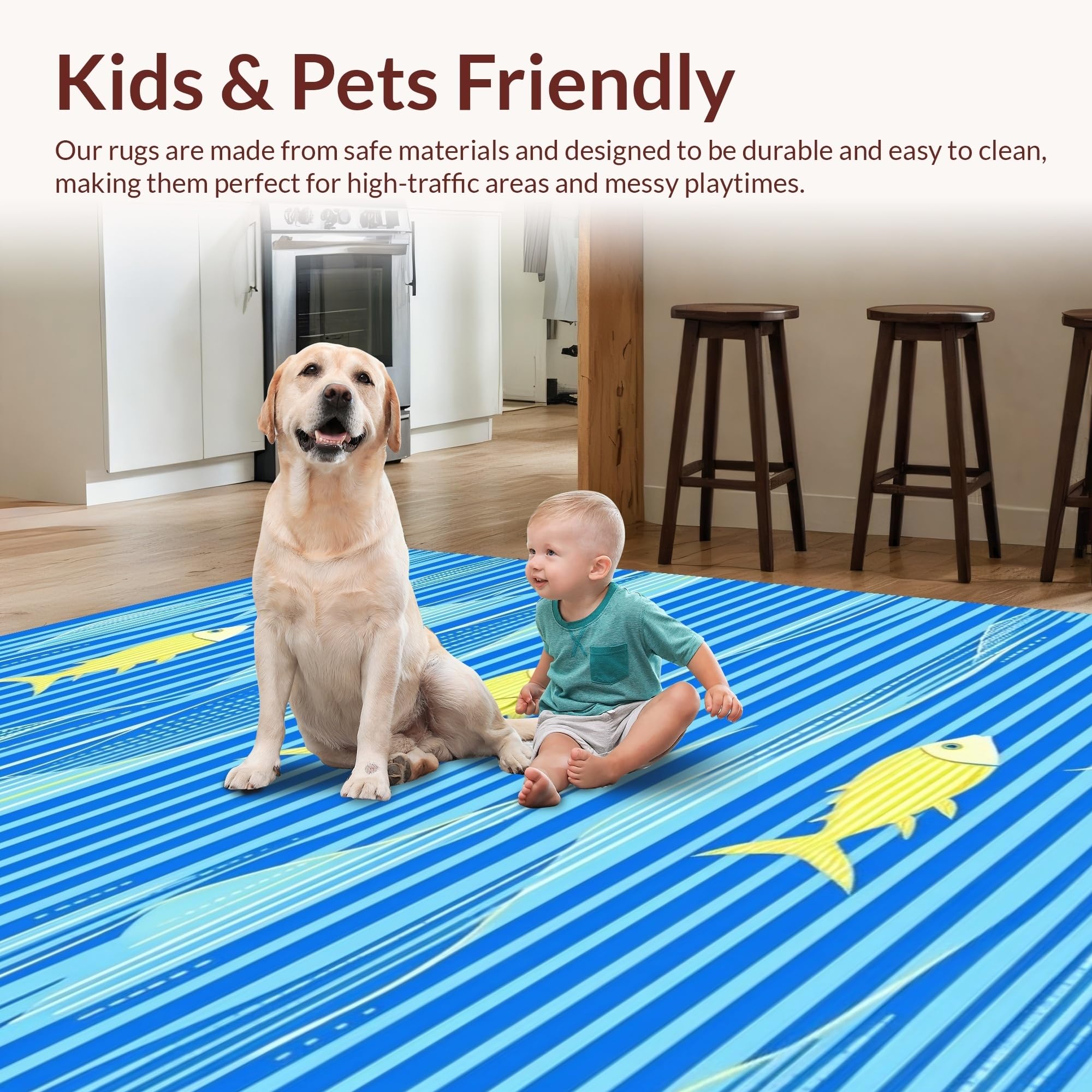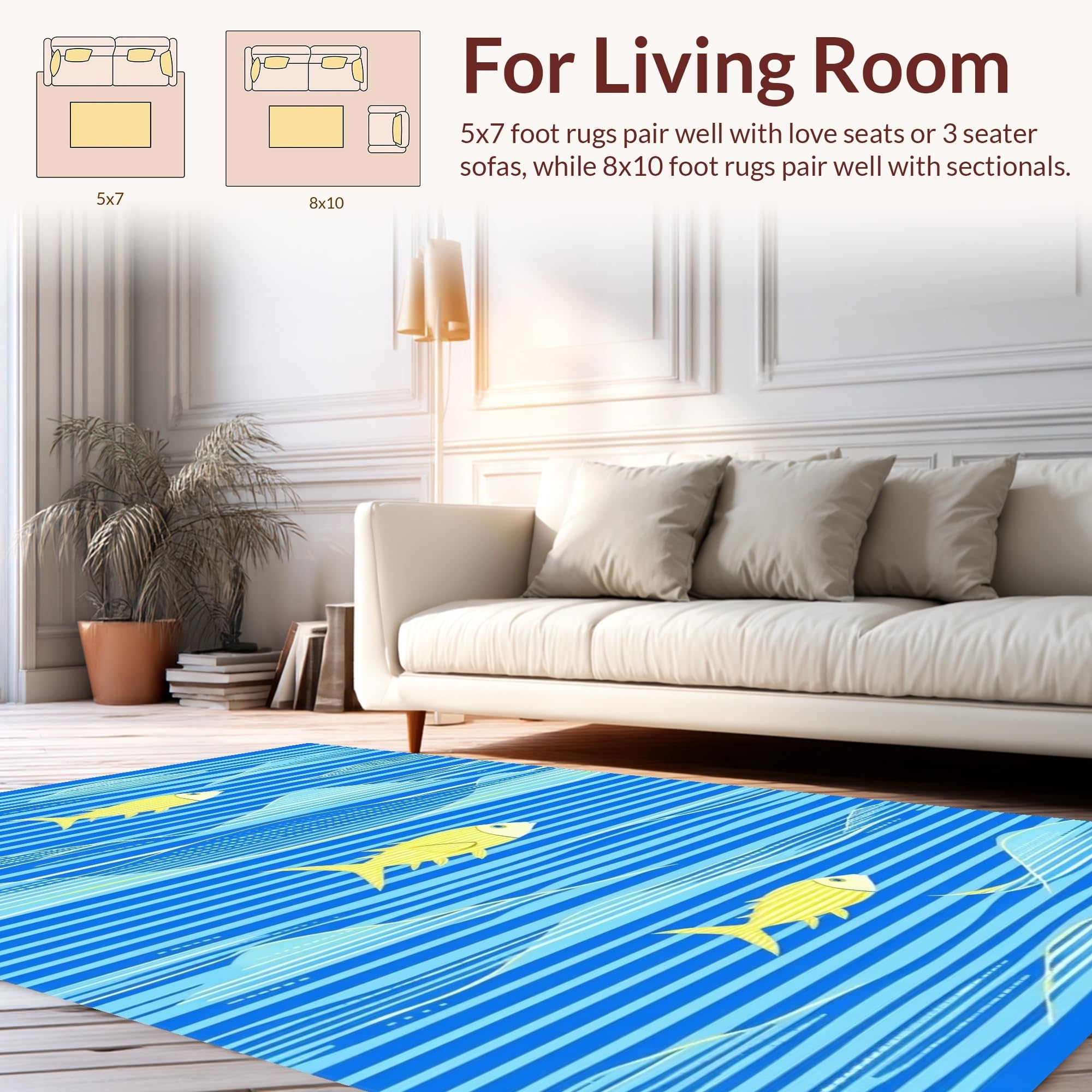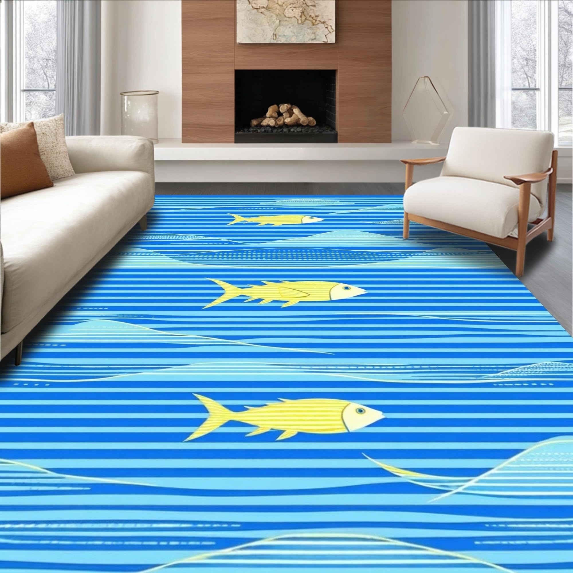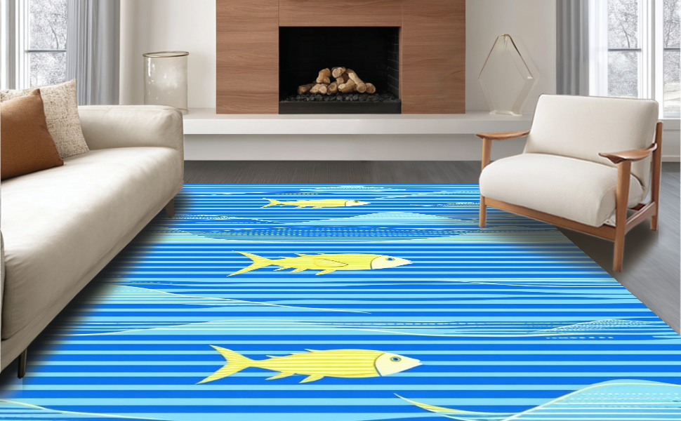 Ultra Soft Area Rug, Non Slip, Stain Resistant, Washable Area Rugs for Living Room, Bedroom, Contemporary Coastal Animal Illustration(Blue) Overview: