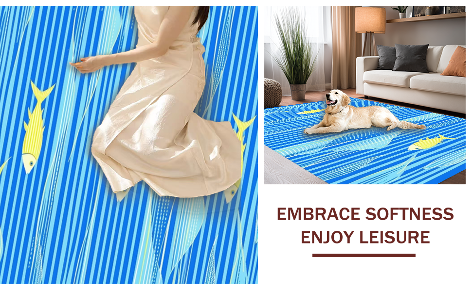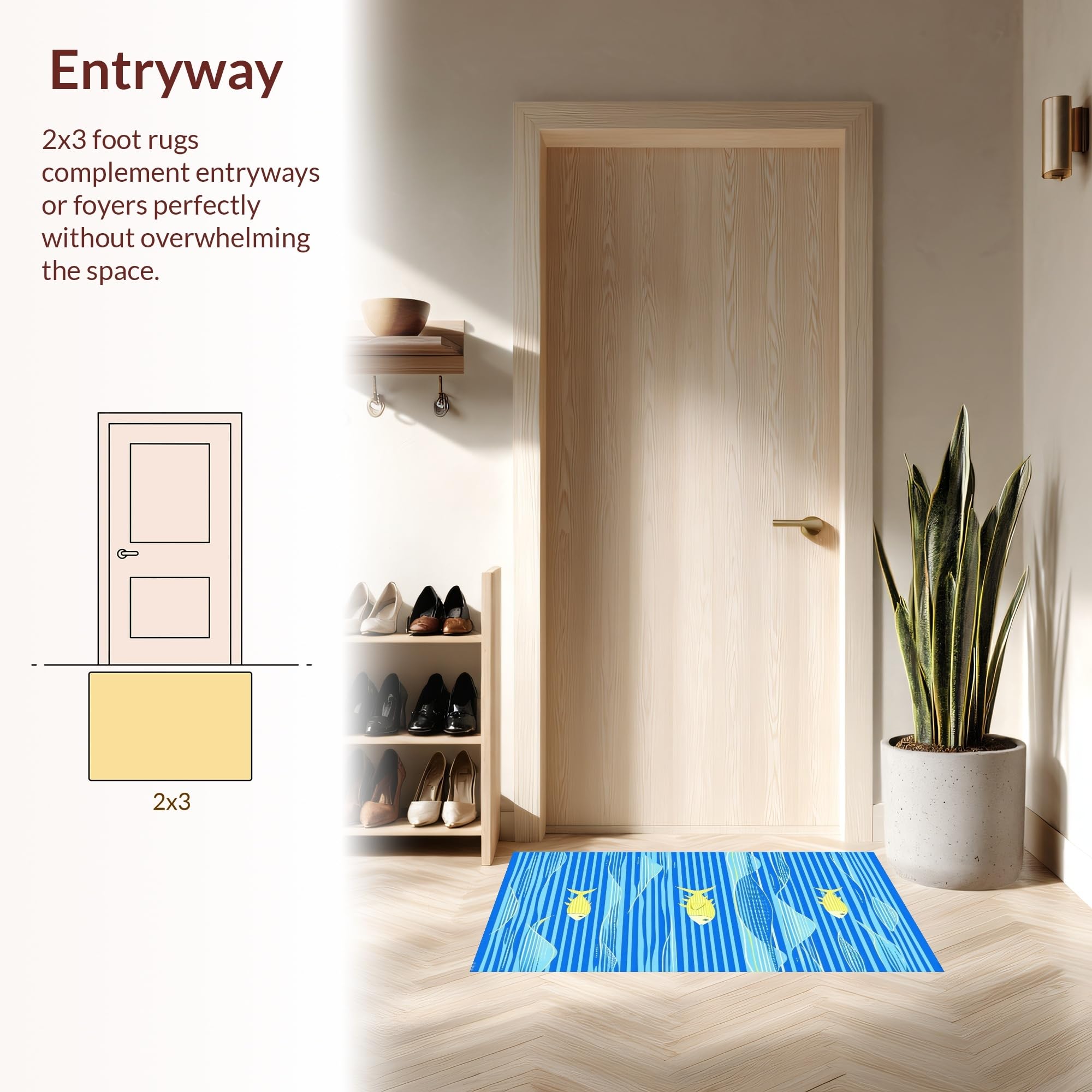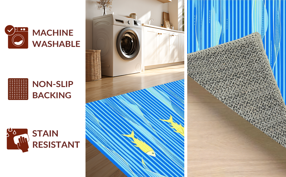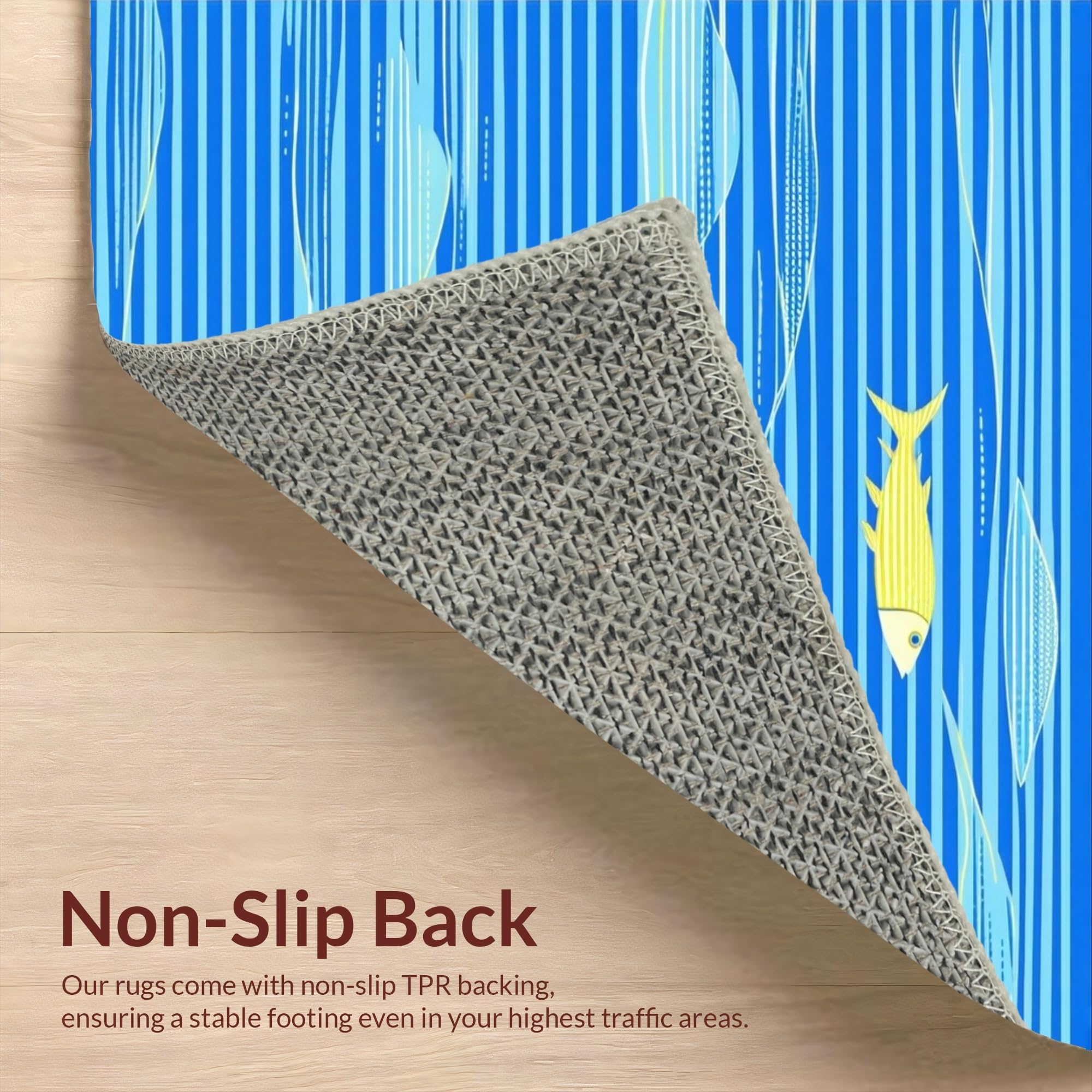Ultra Soft Area Rug, Non Slip, Stain Resistant, Washable Area Rugs for Living Room, Bedroom, Contemporary Coastal Animal Illustration(Blue) Overview:
