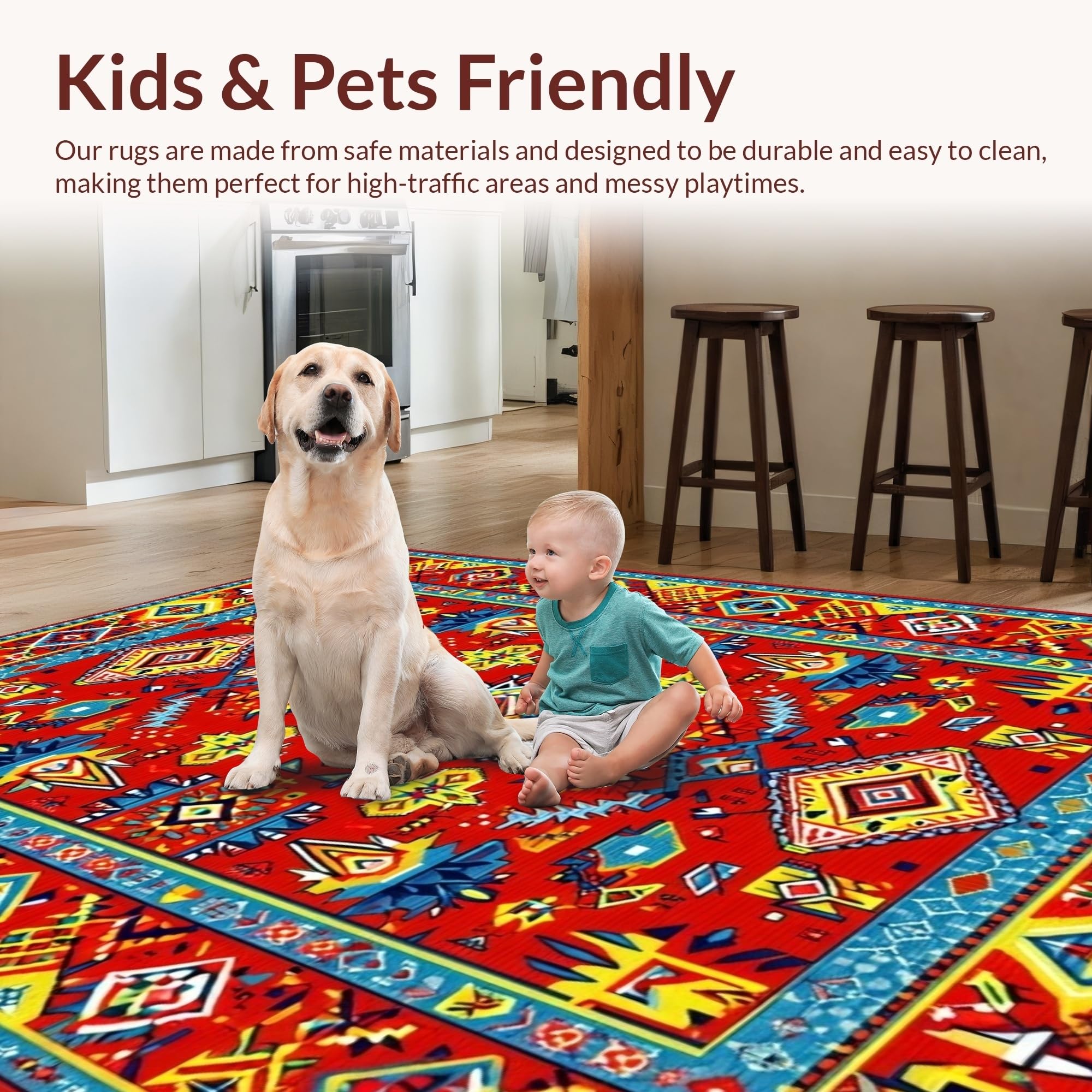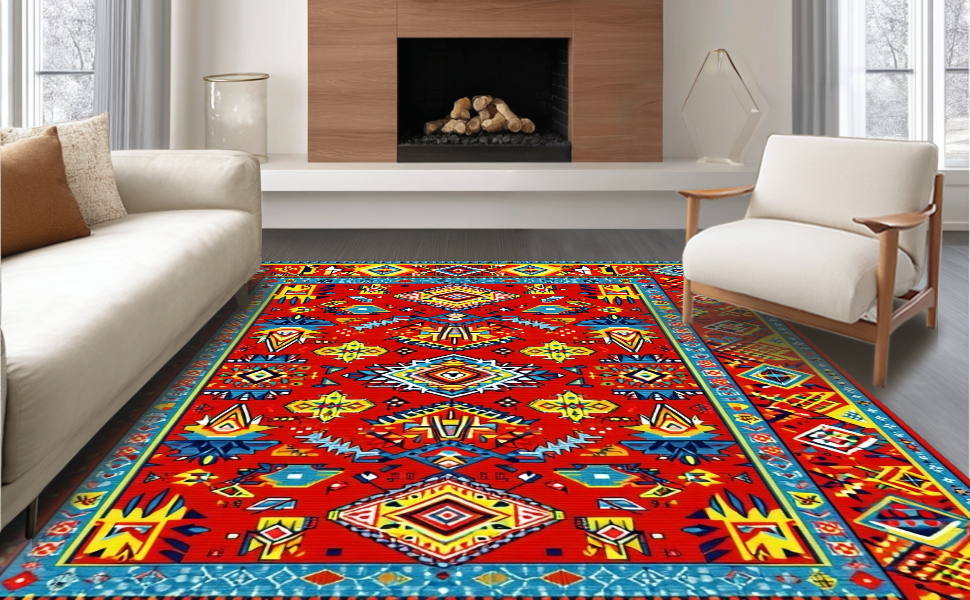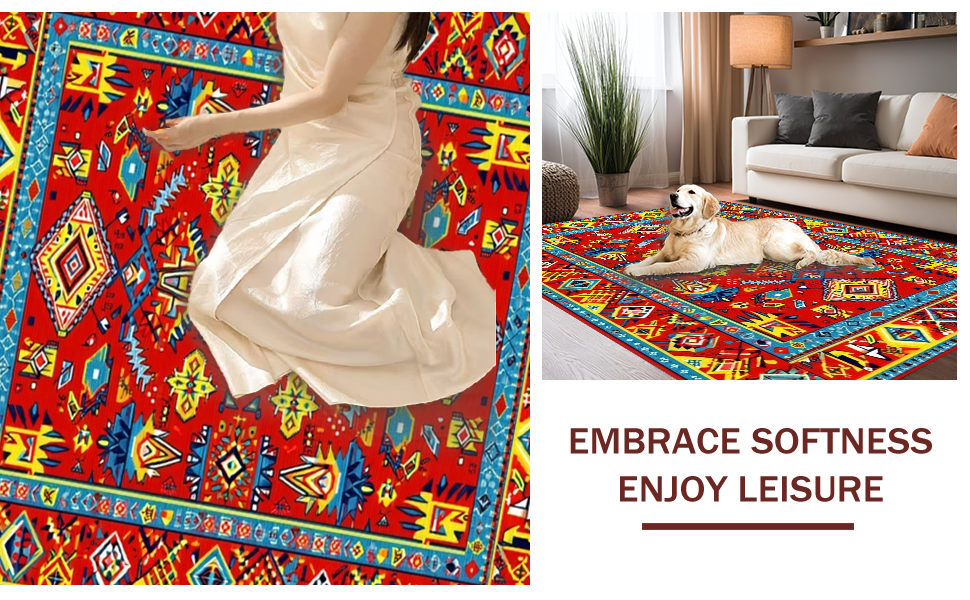 Ultra Soft Area Rug, Non Slip, Stain Resistant, Washable Area Rugs for Living Room, Bedroom, Contemporary Colorful Braided Style(Red) Overview: