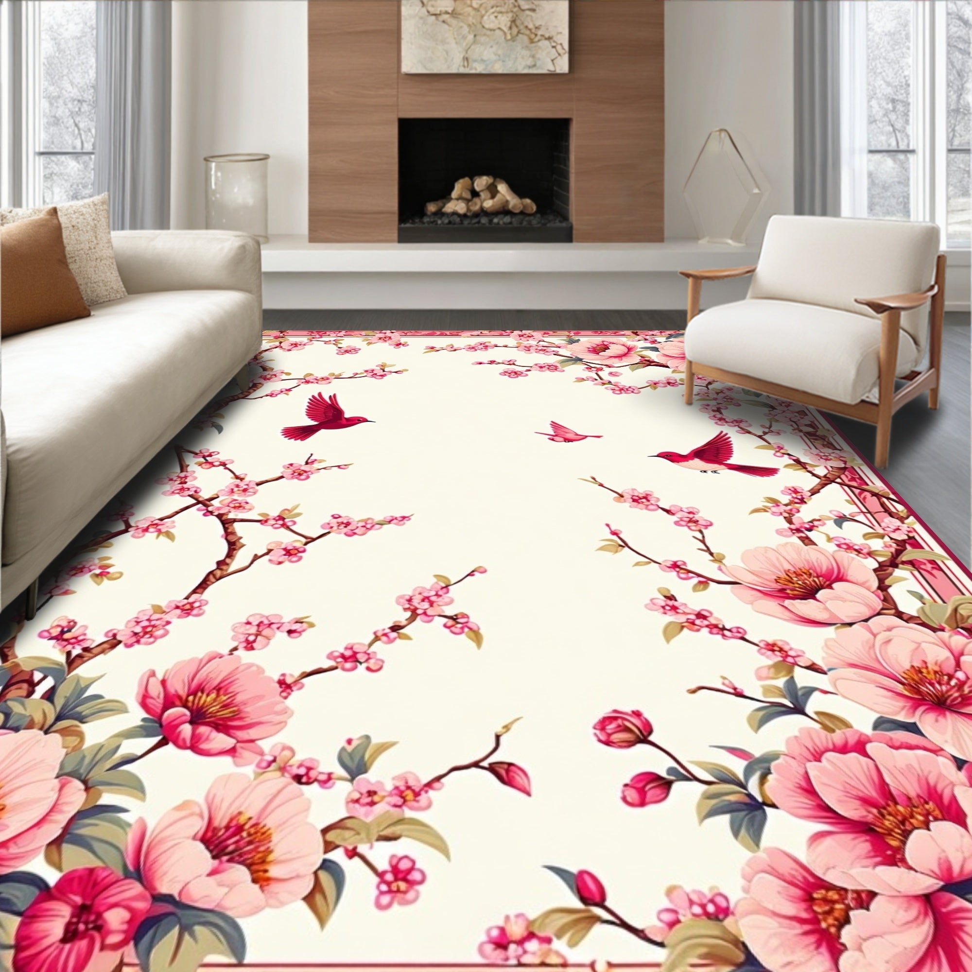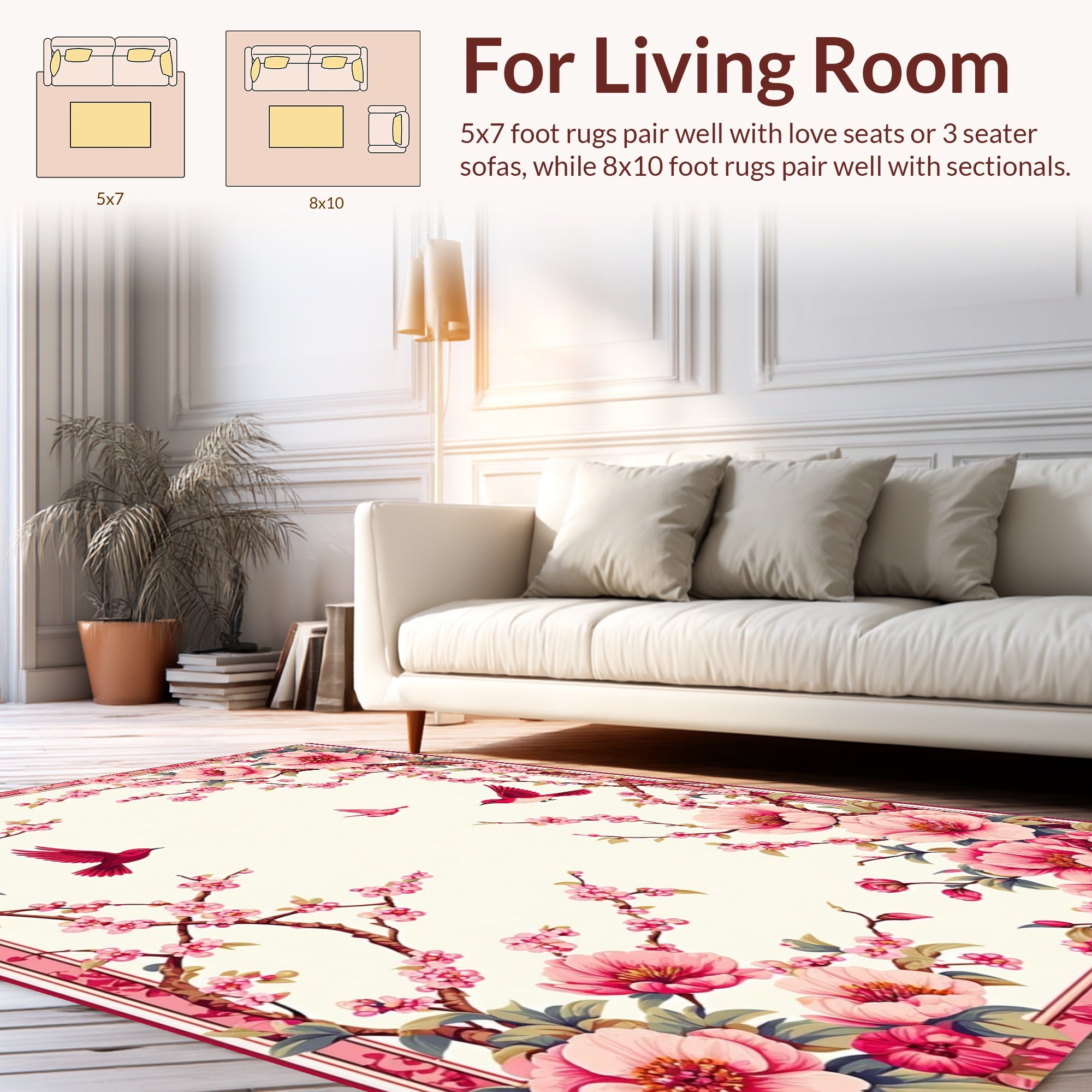 Flatwoven High Traffic Area Rug, Contemporary Colorful Flower Arrangement, Non Slip, Stain Resistant, Washable Area Rugs for Living Room, Bedroom (Pink) Overview: