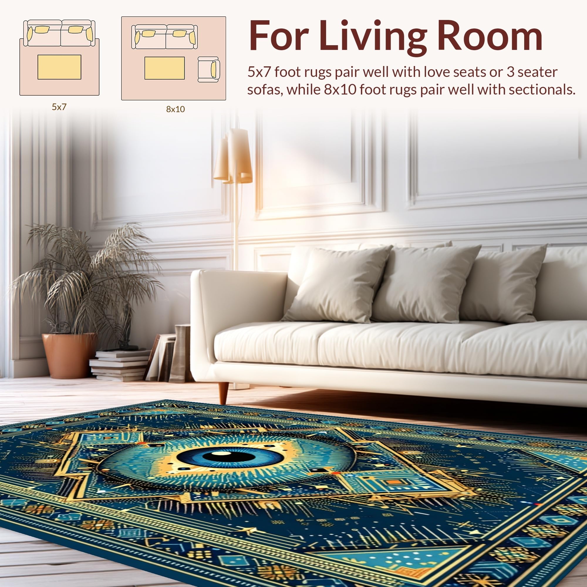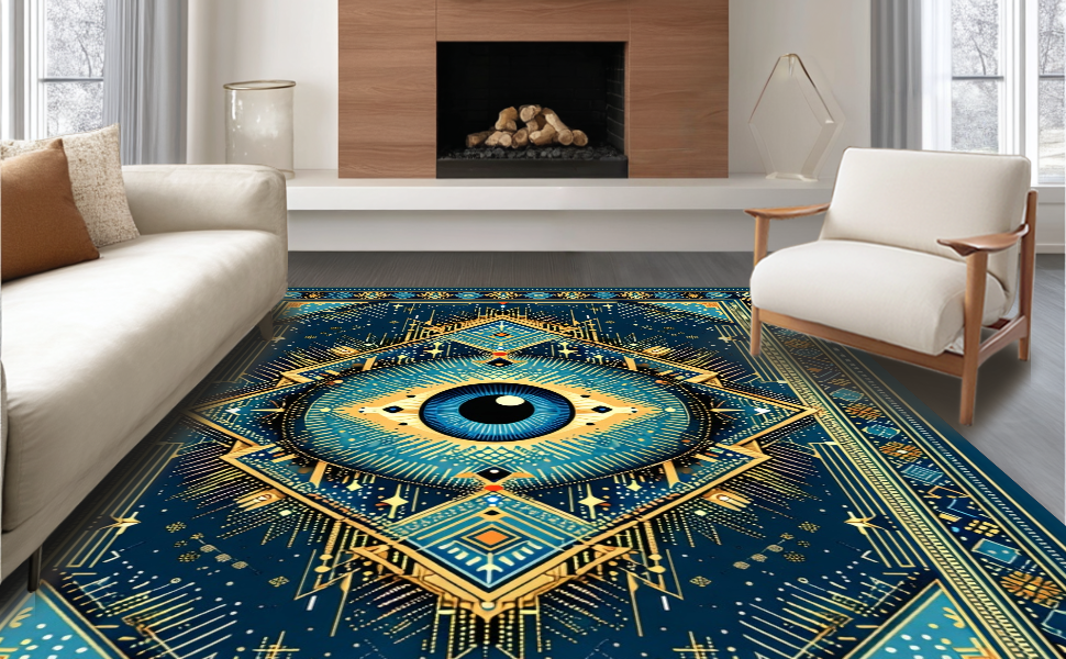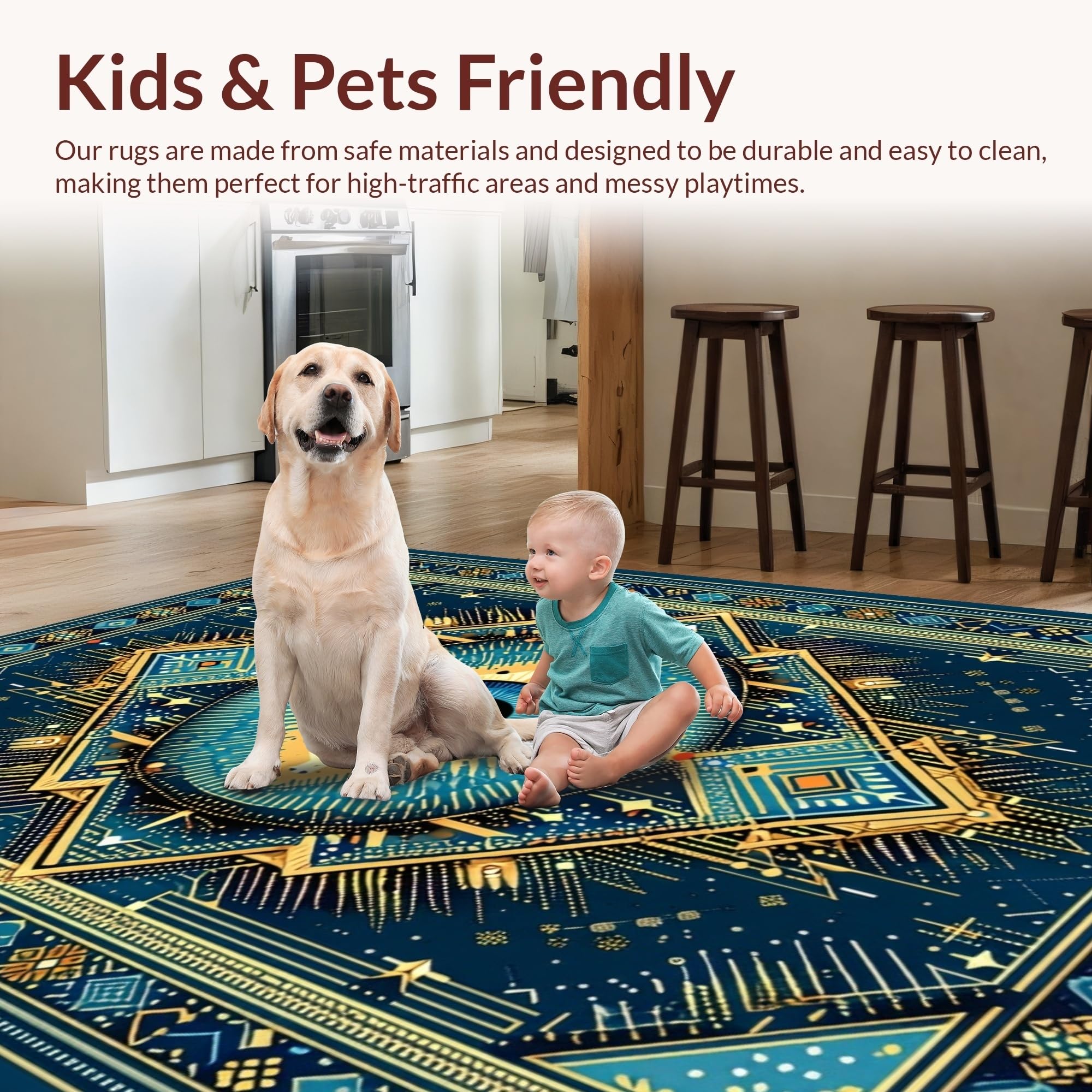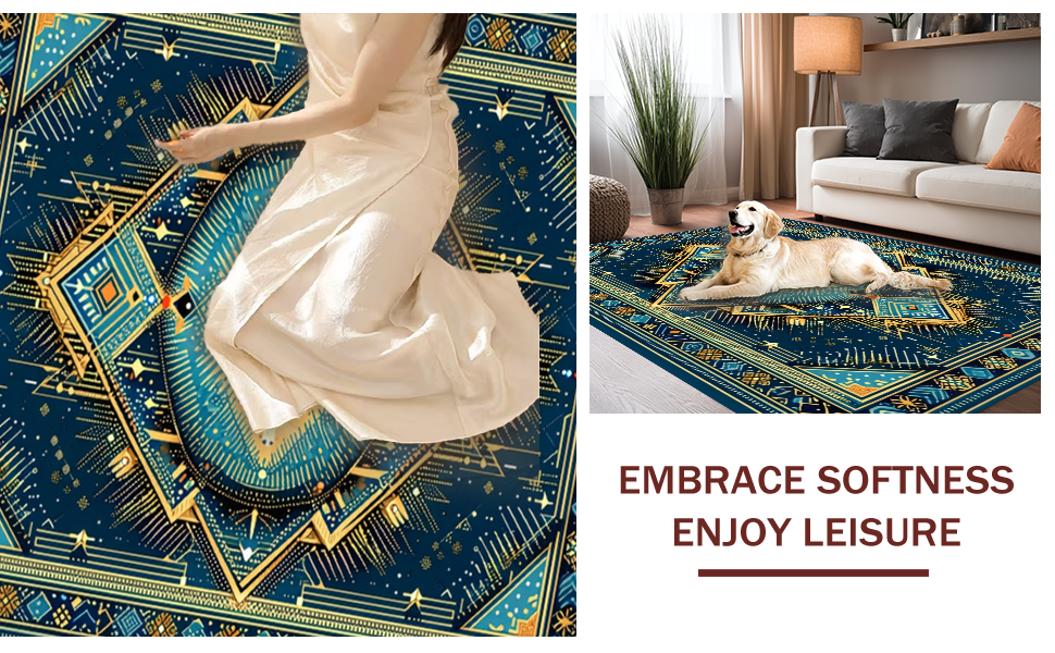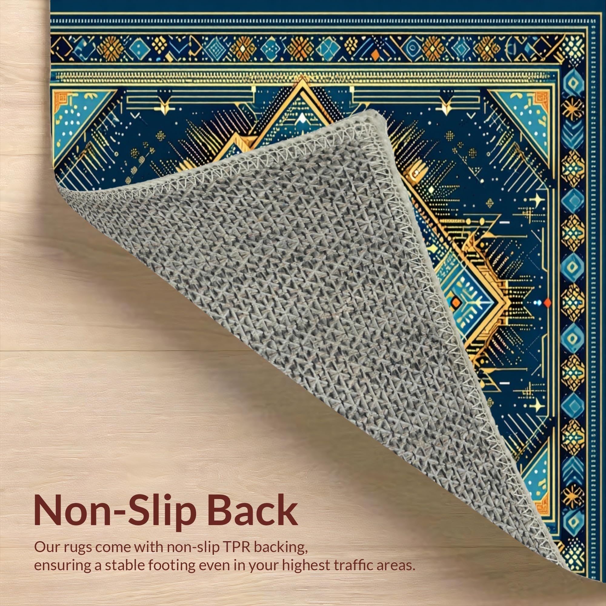 Ultra Soft Area Rug, Non Slip, Stain Resistant, Washable Area Rugs for Living Room, Bedroom, Contemporary Colorful Medallion Style(Blue) Overview: