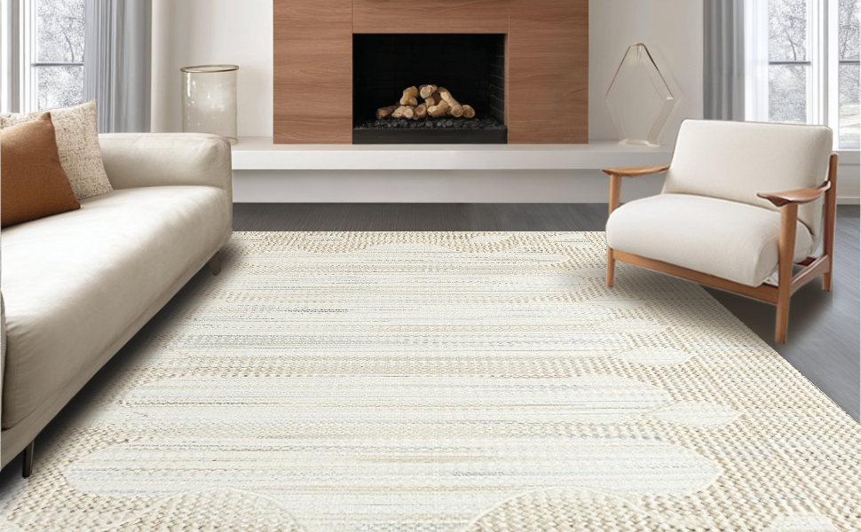 Ultra Soft Area Rug, Non Slip, Stain Resistant, Washable Area Rugs for Living Room, Bedroom, Contemporary Cream Trellis Elements(Beige) Overview: