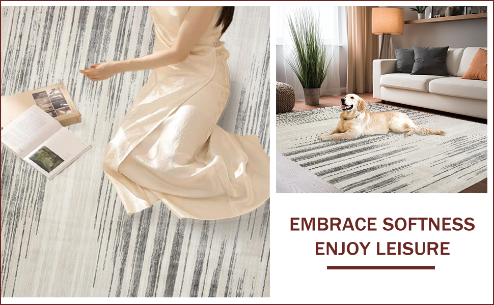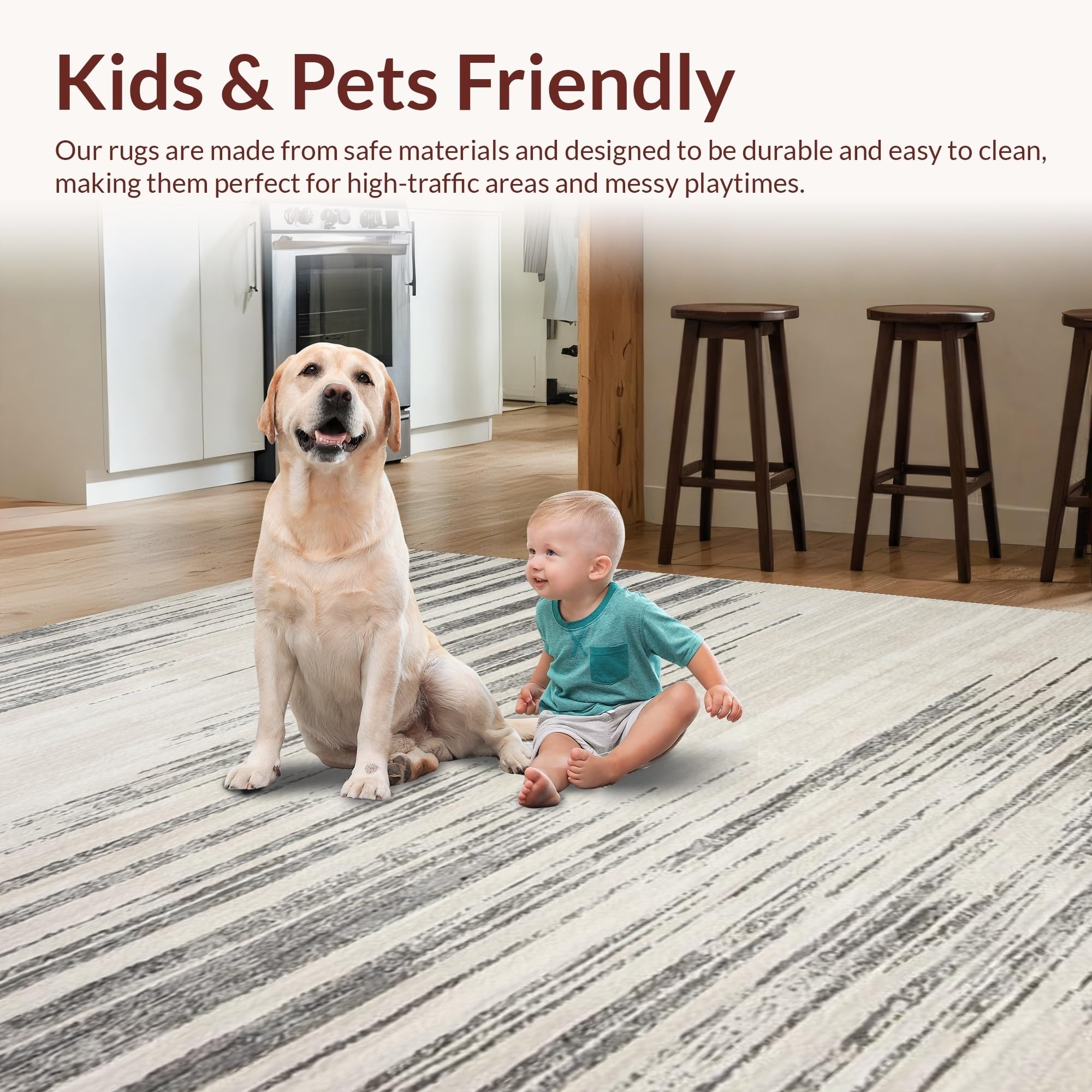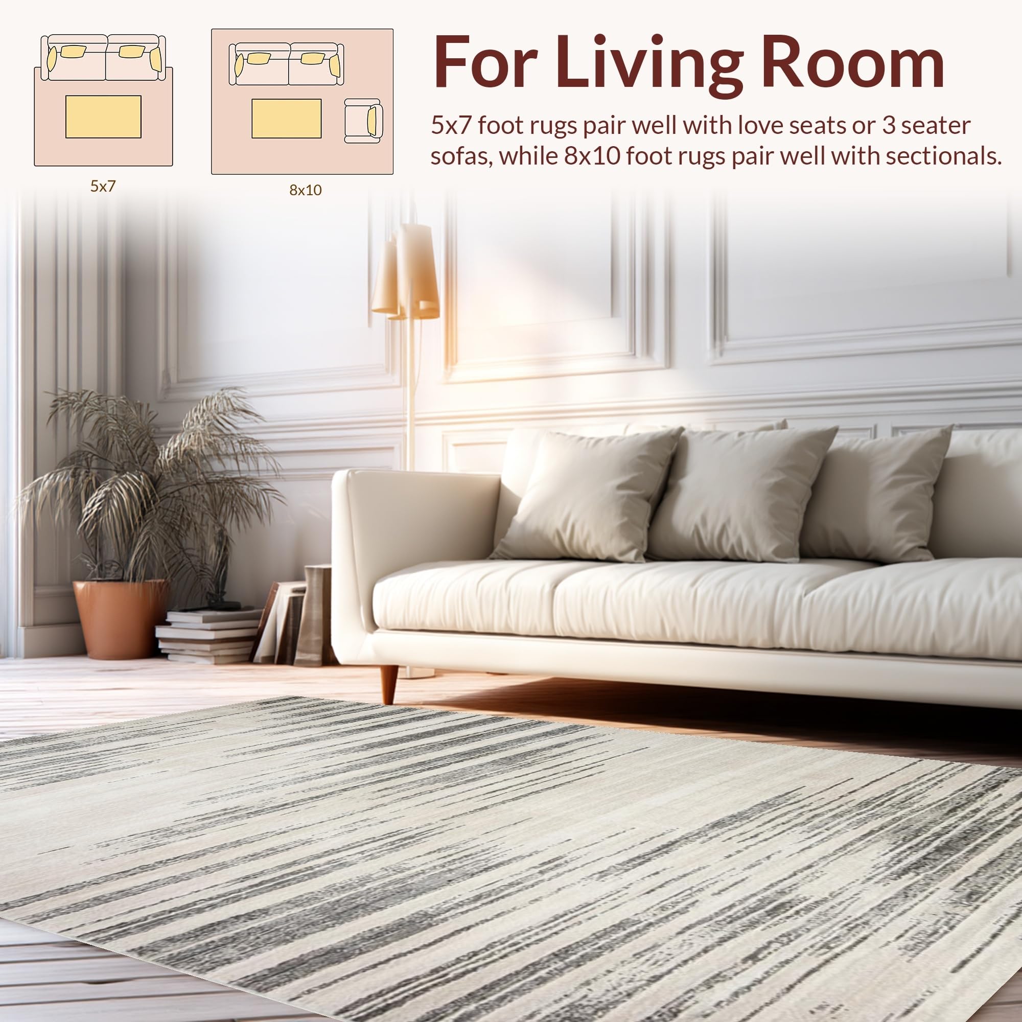 Ultra Soft Area Rug, Non Slip, Stain Resistant, Washable Area Rugs for Living Room, Bedroom, Contemporary Cream Zebra Aesthetic(Gray) Overview: