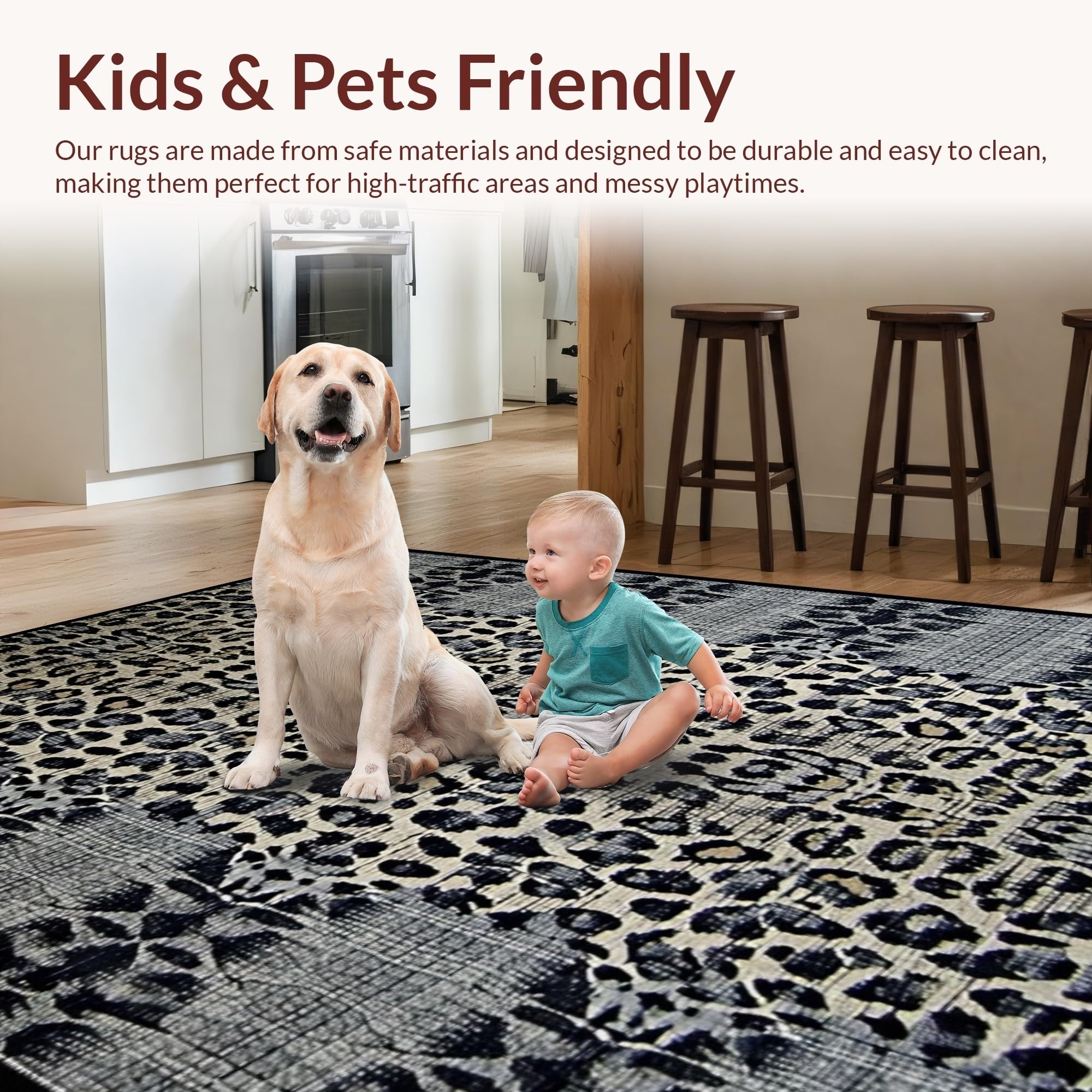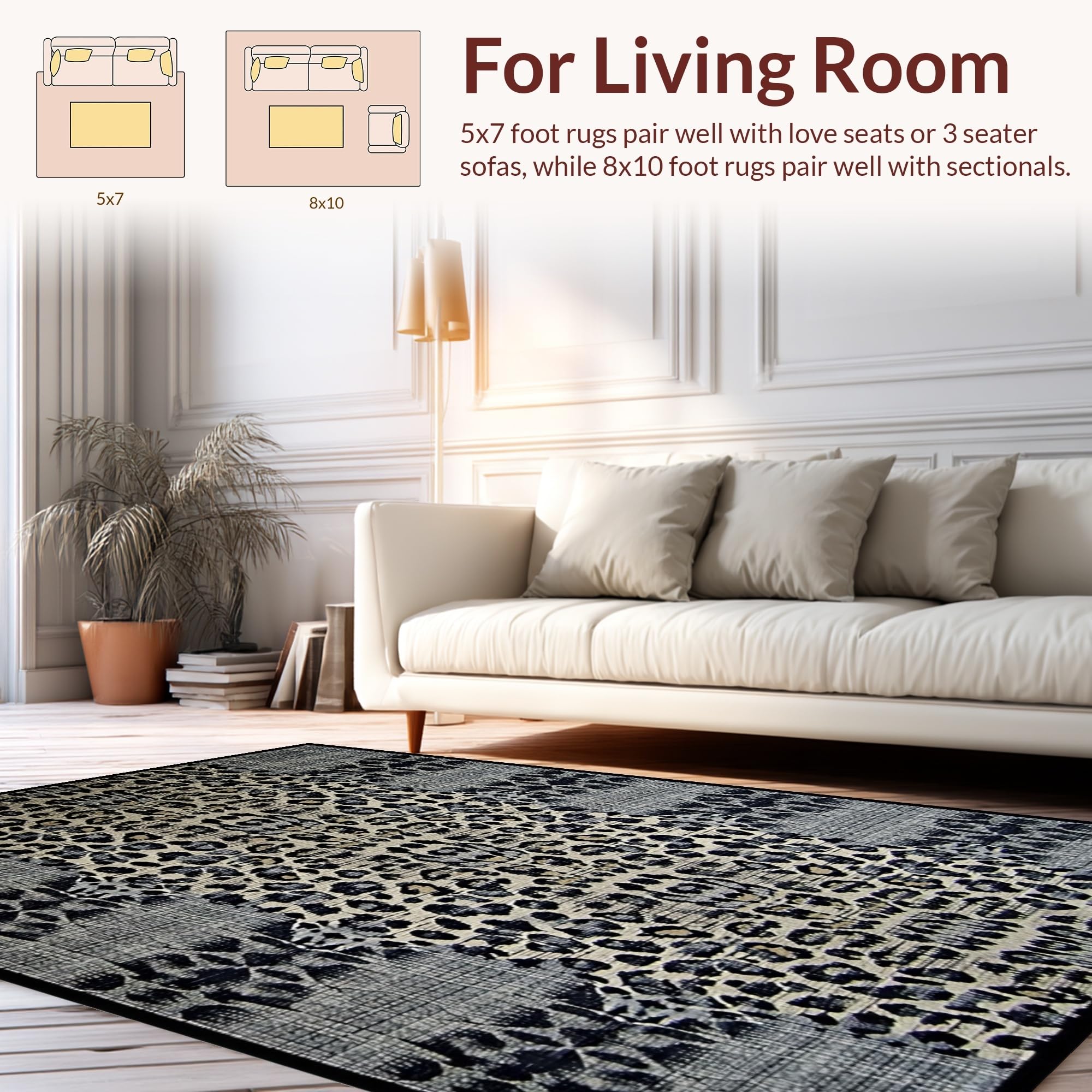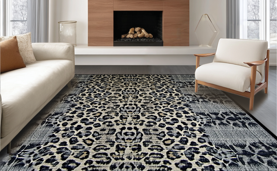 Ultra Soft Area Rug, Non Slip, Stain Resistant, Washable Area Rugs for Living Room, Bedroom, Contemporary Dark Grey Leopard Aesthetic(Gray) Overview: