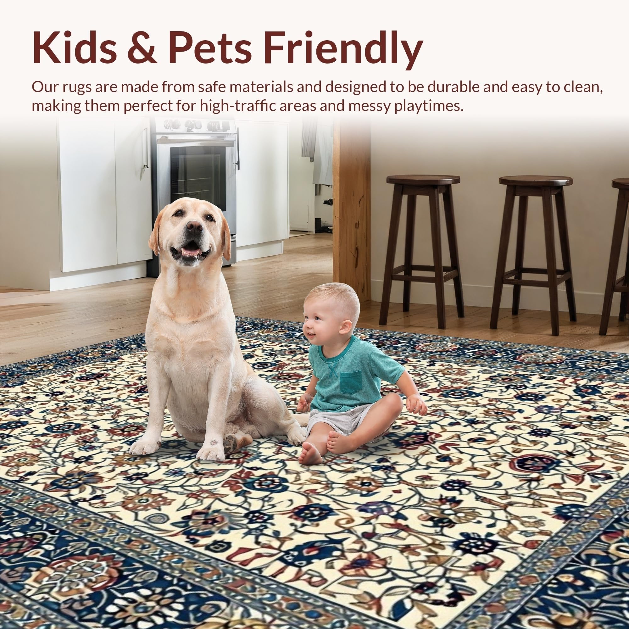 Ultra Soft Area Rug, Non Slip, Stain Resistant, Washable Area Rugs for Living Room, Bedroom, Contemporary Distressed Geometric Fusion(Beige) Overview:
