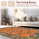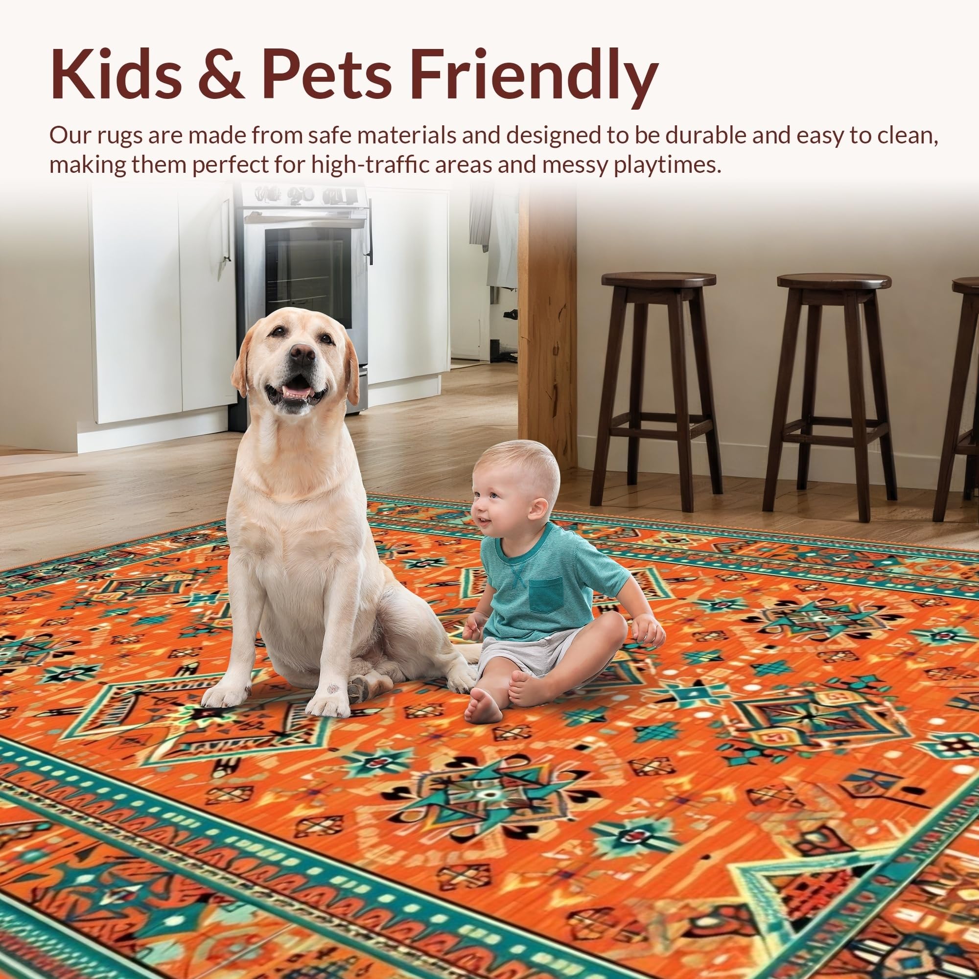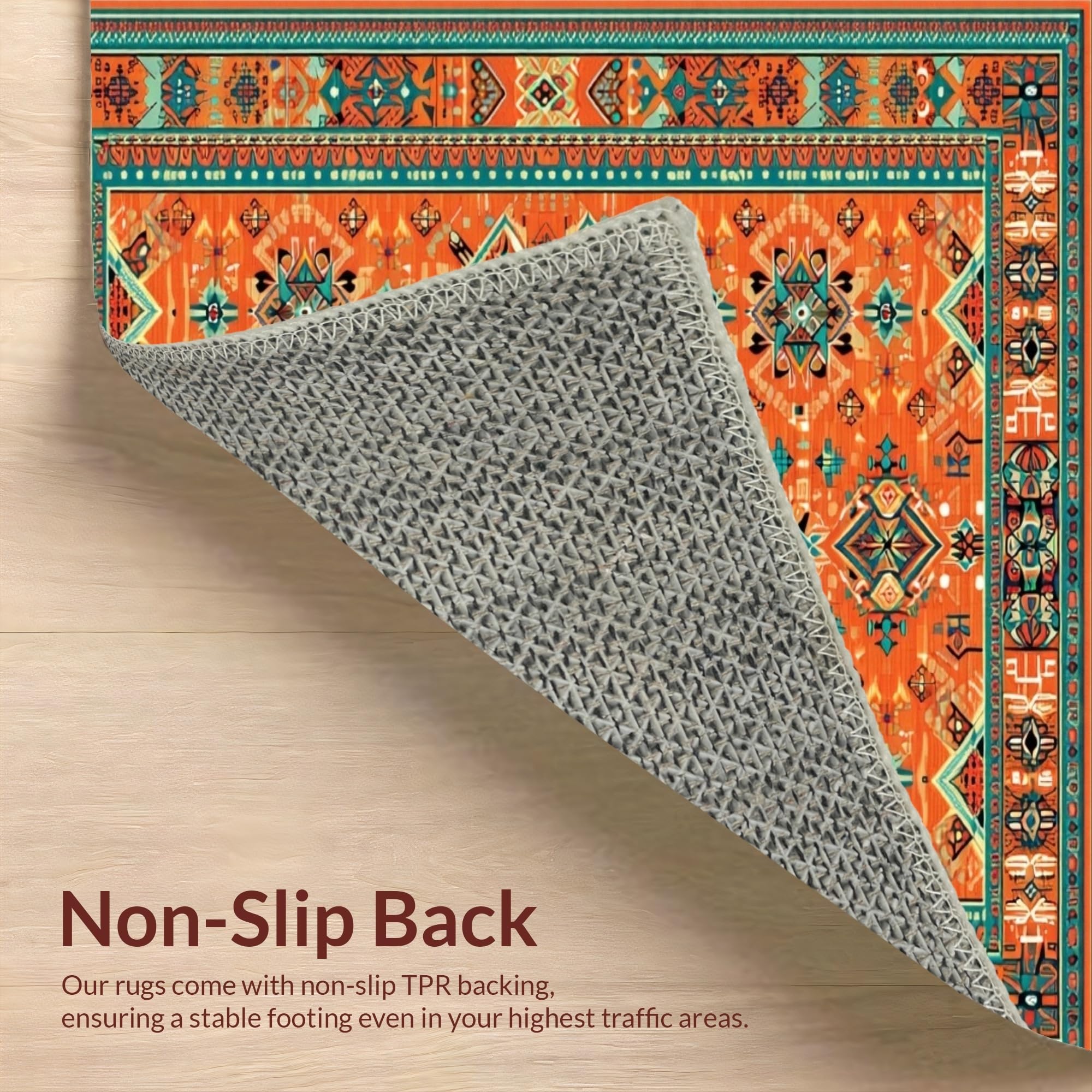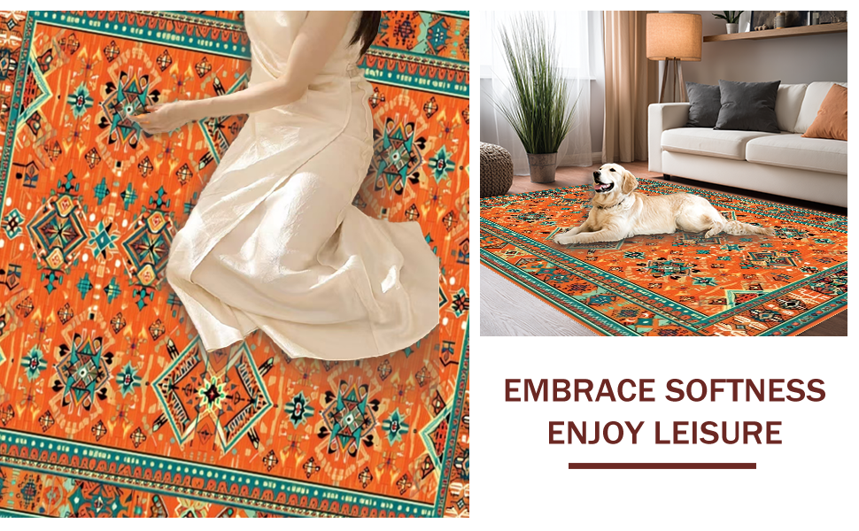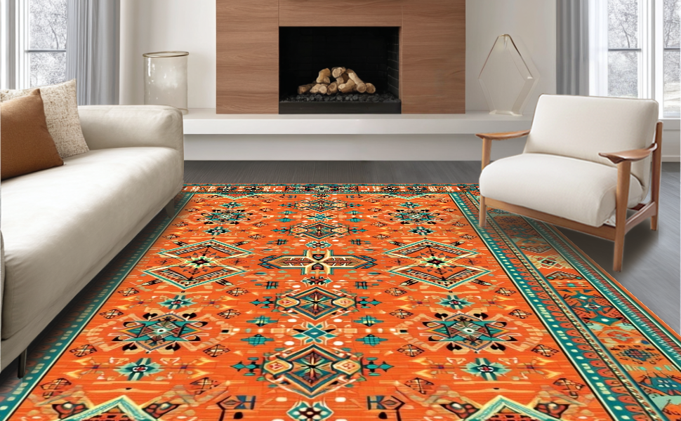 Ultra Soft Area Rug, Non Slip, Stain Resistant, Washable Area Rugs for Living Room, Bedroom, Contemporary Distressed Linear Art(Orange) Overview: