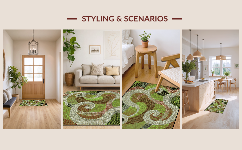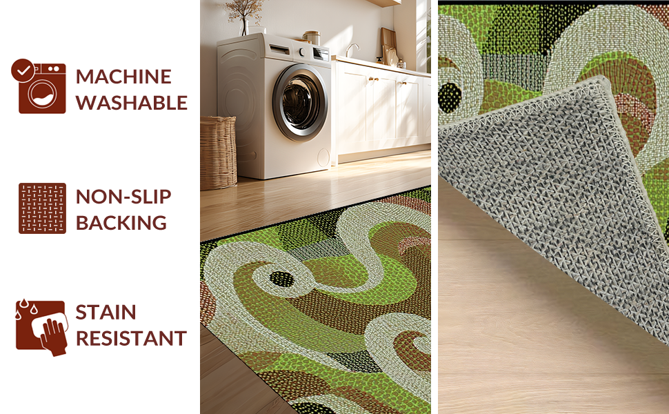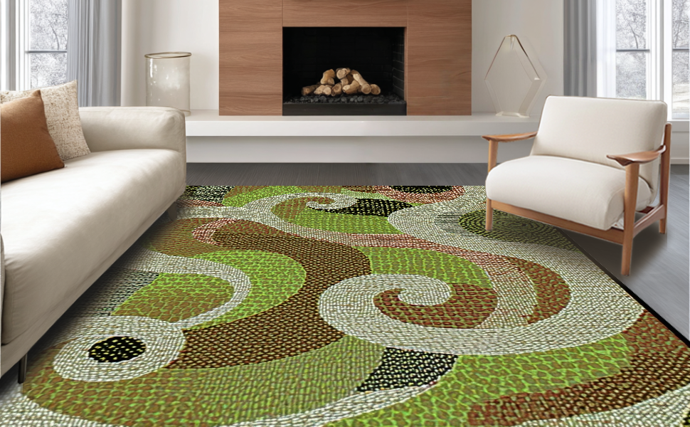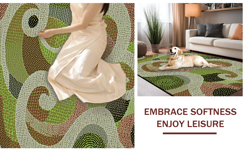 Ultra Soft Area Rug, Non Slip, Stain Resistant, Washable Area Rugs for Living Room, Bedroom, Contemporary Earth Tone Design(Green) Overview: