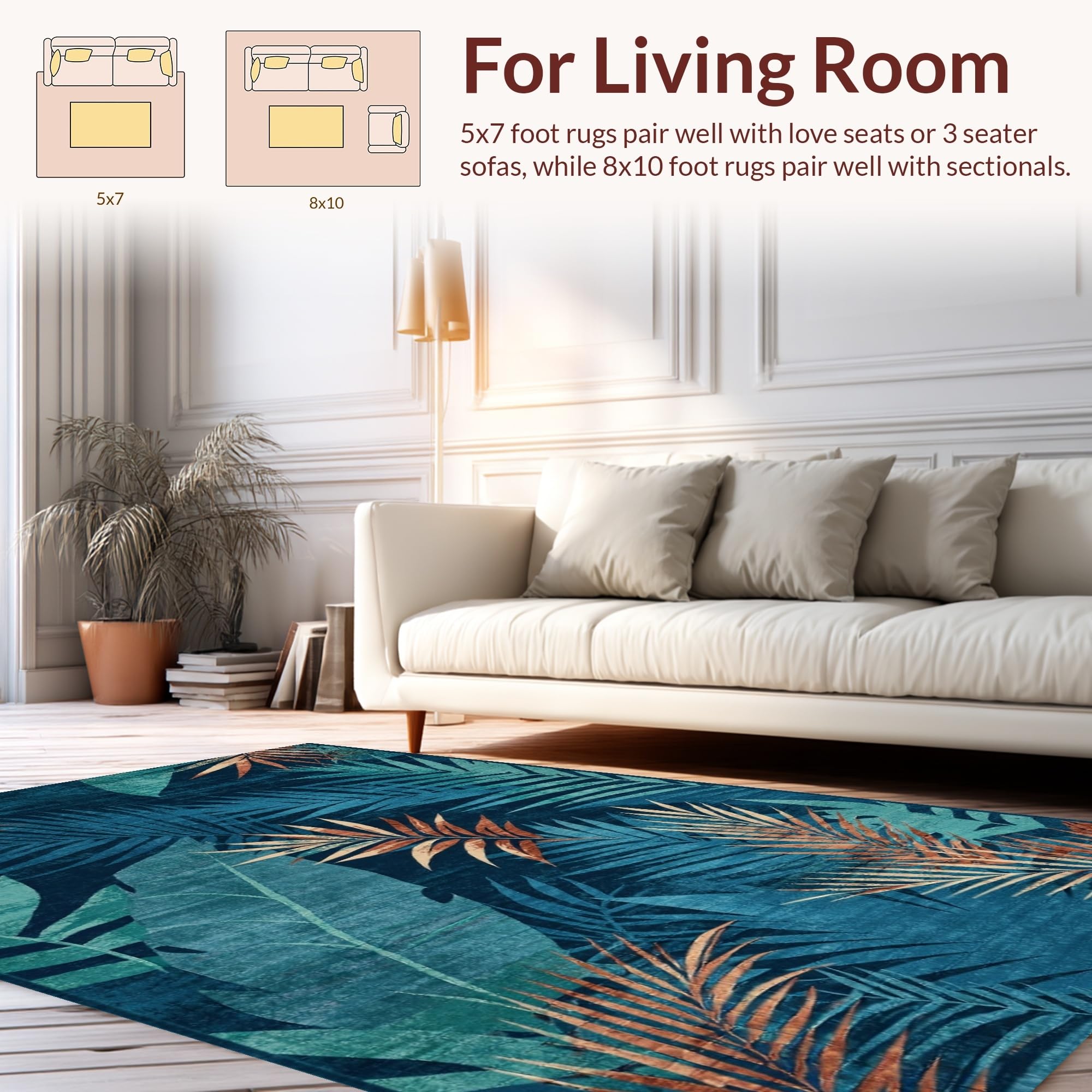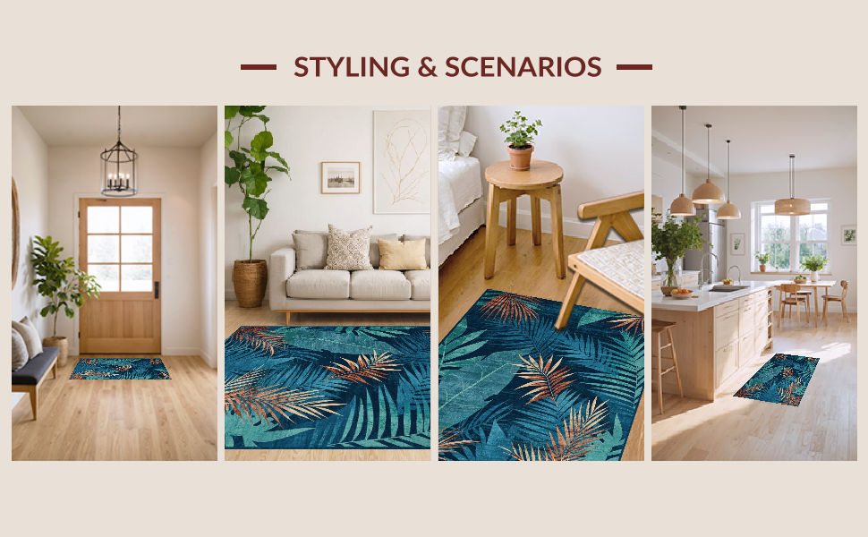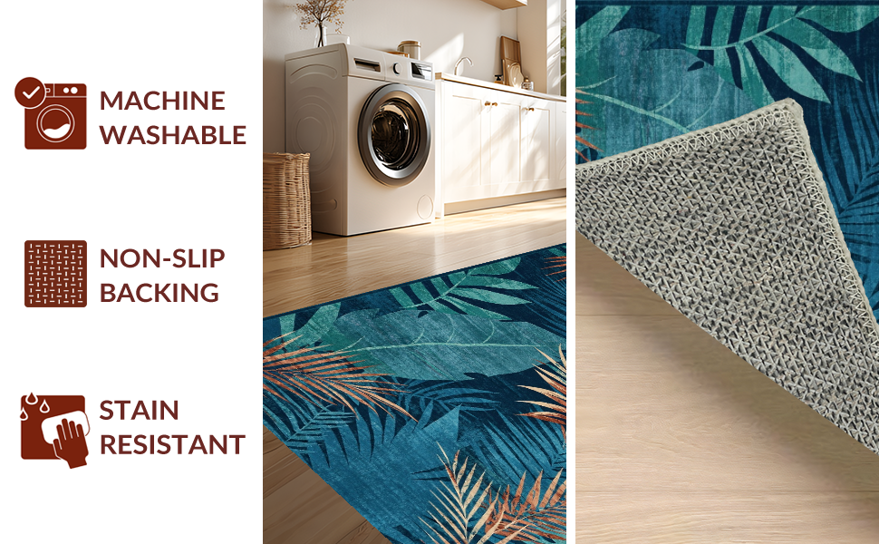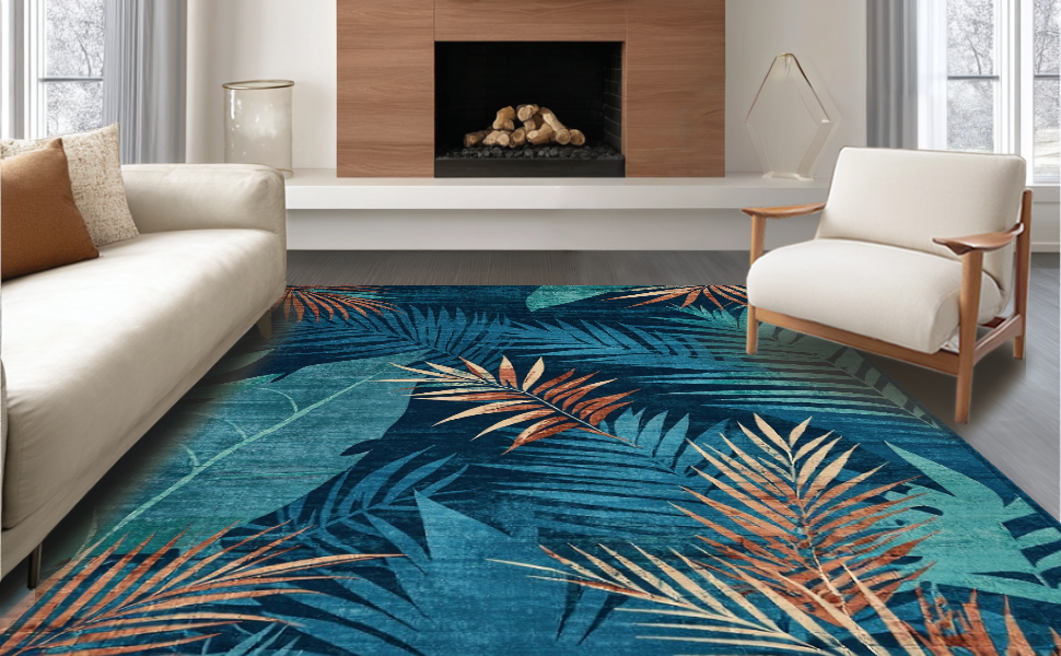 Ultra Soft Area Rug, Non Slip, Stain Resistant, Washable Area Rugs for Living Room, Bedroom, Contemporary Earthy Tones Blend(Blue) Overview: