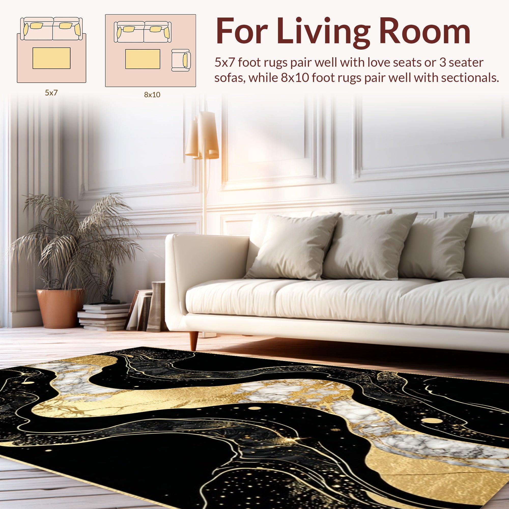 Flatwoven High Traffic Area Rug, Contemporary Elegant Fluid, Non Slip, Stain Resistant, Washable Area Rugs for Living Room, Bedroom (Black) Overview: