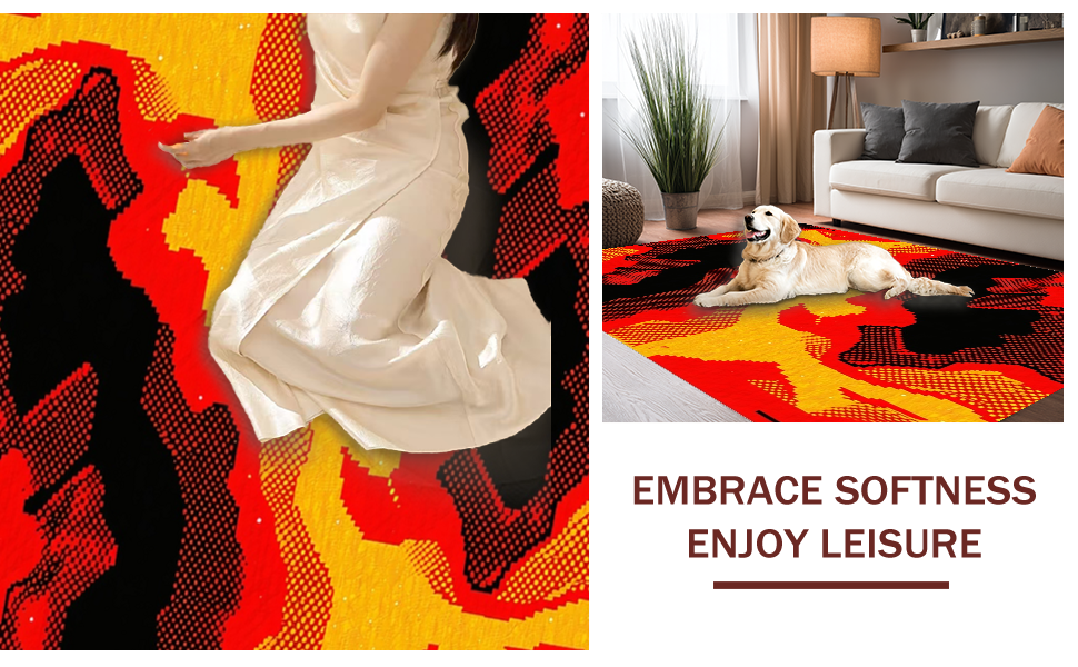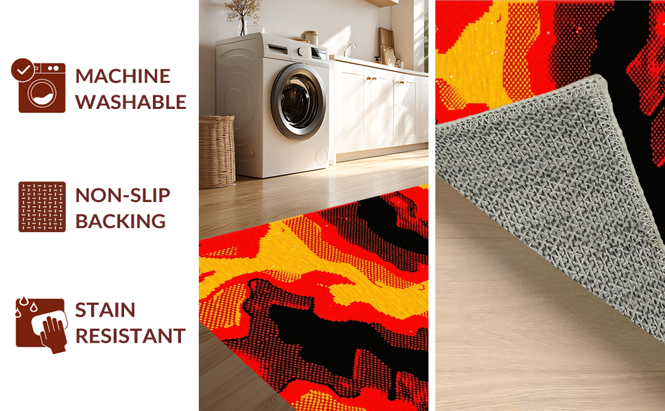 Ultra Soft Area Rug, Non Slip, Stain Resistant, Washable Area Rugs for Living Room, Bedroom, Contemporary Eruption Style Element(Red) Overview: