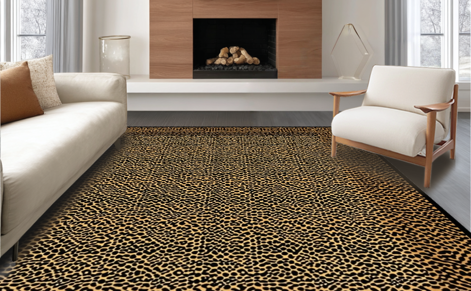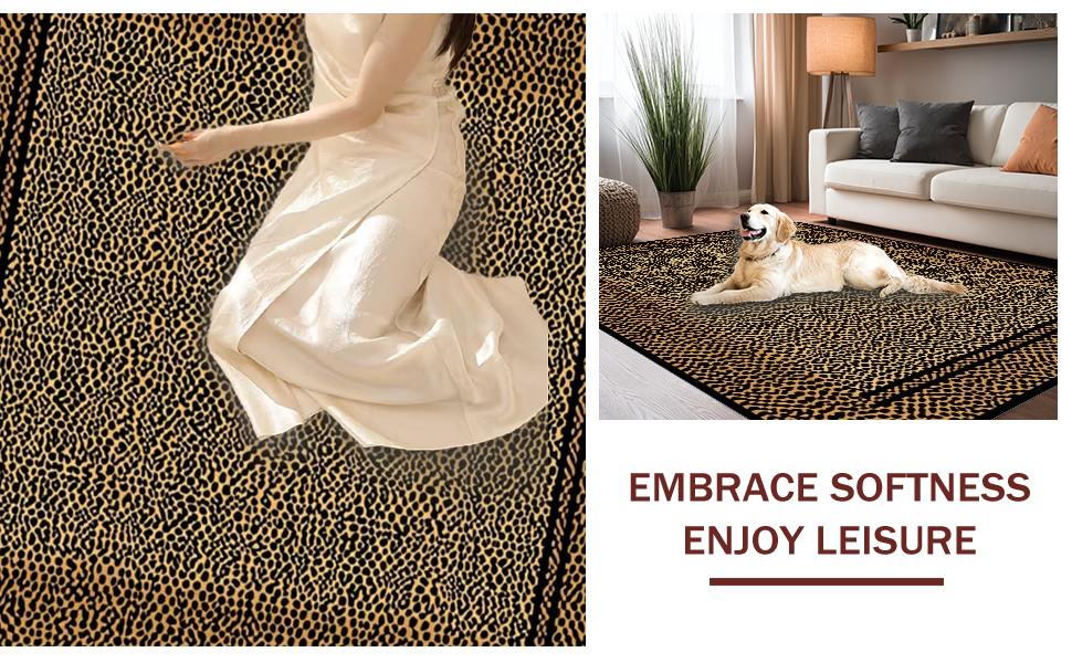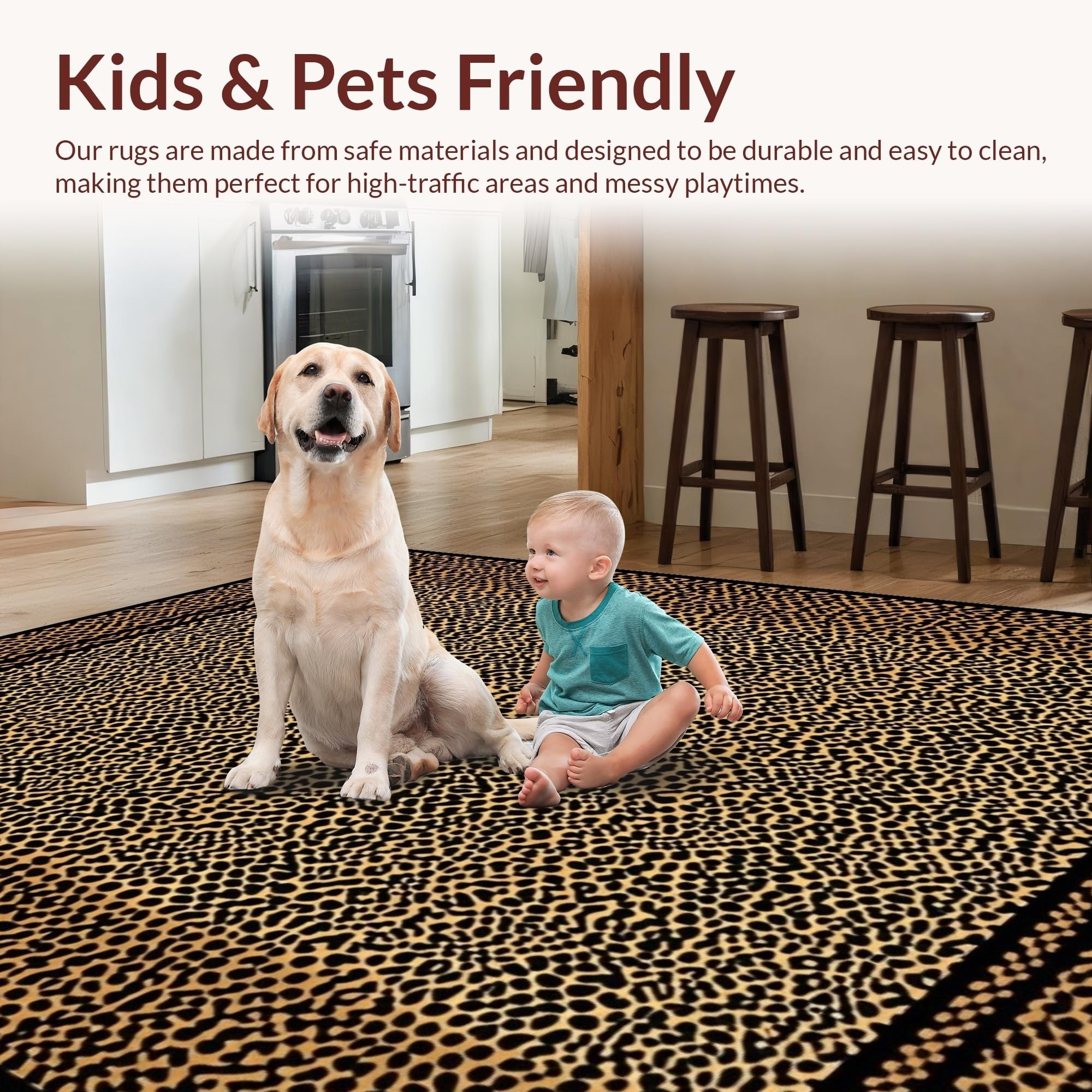 Ultra Soft Area Rug, Non Slip, Stain Resistant, Washable Area Rugs for Living Room, Bedroom, Contemporary Exotic Wildlife Theme(Beige) Overview: