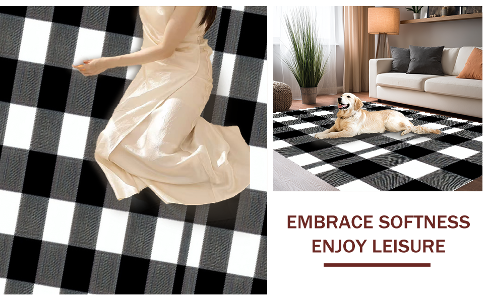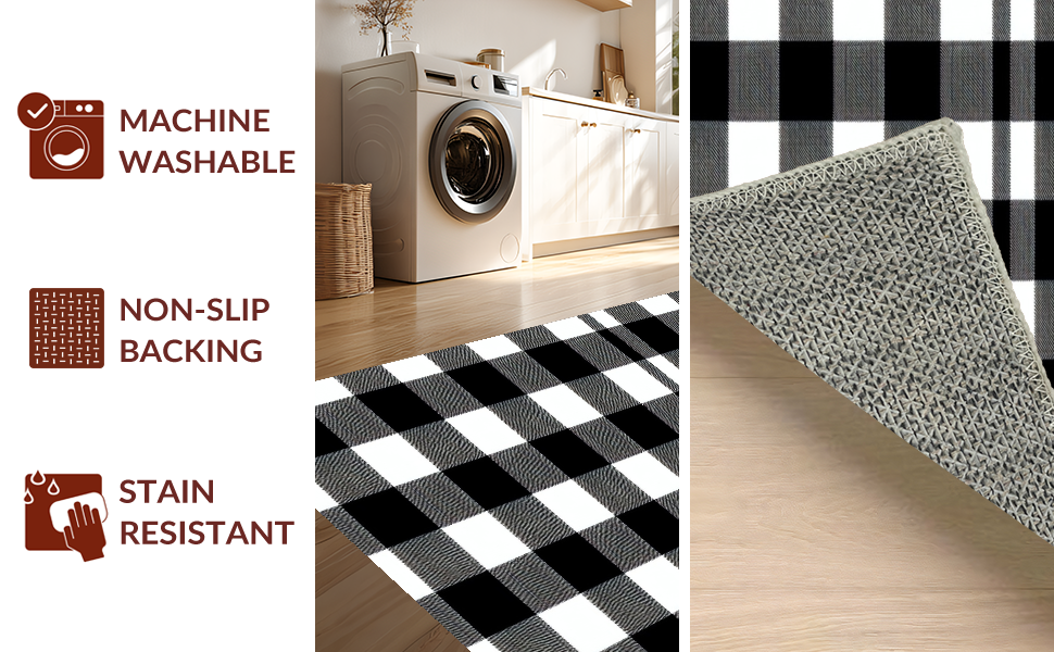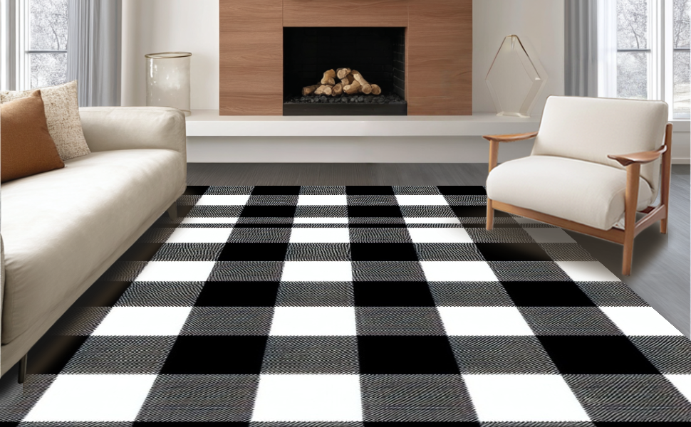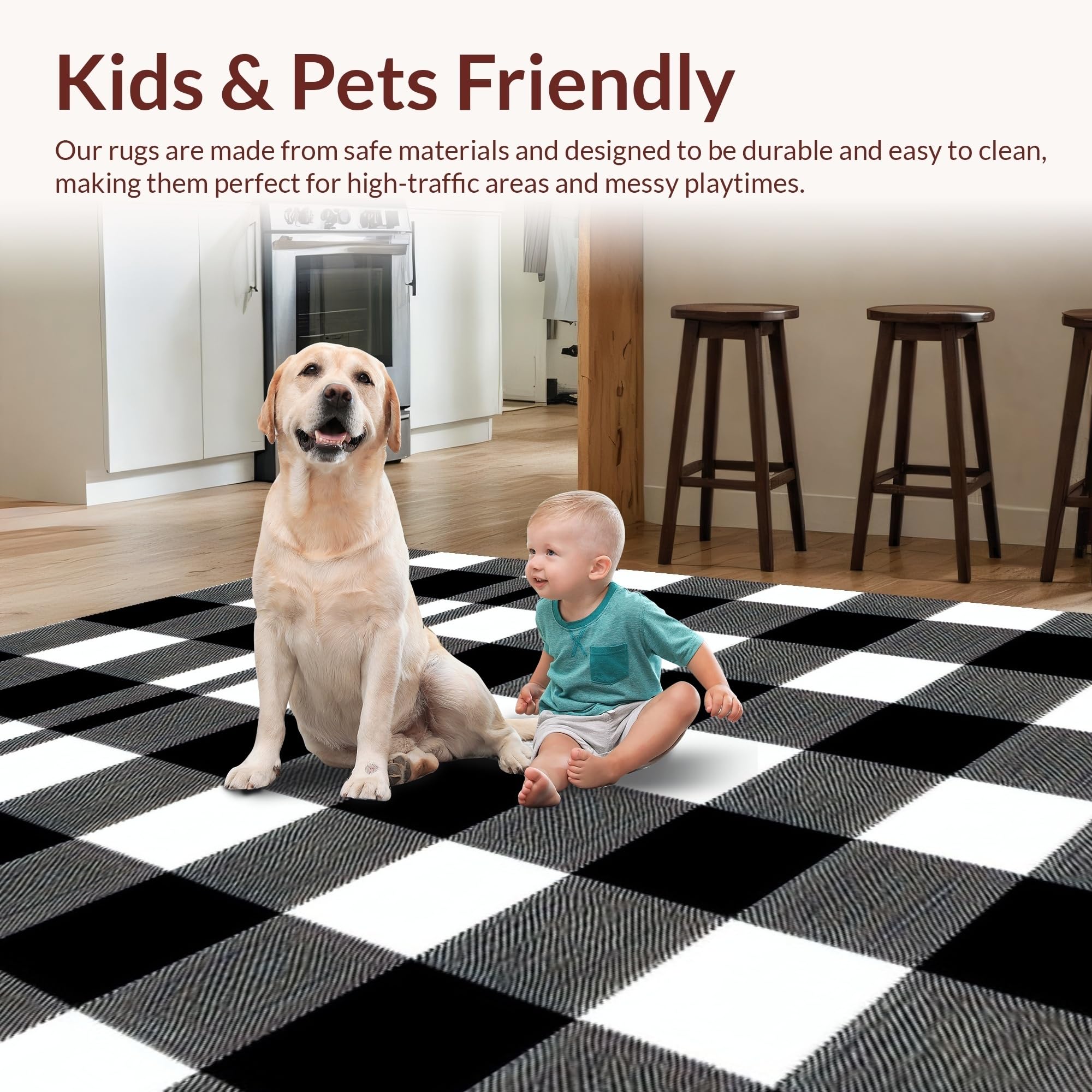 Ultra Soft Area Rug, Non Slip, Stain Resistant, Washable Area Rugs for Living Room, Bedroom, Contemporary Farmhouse Plaid Style(Black) Overview: